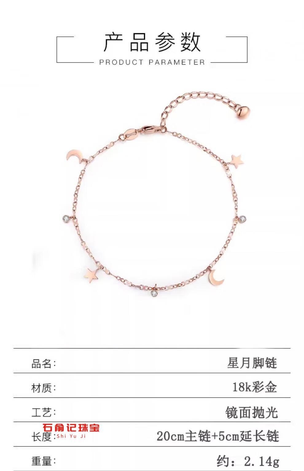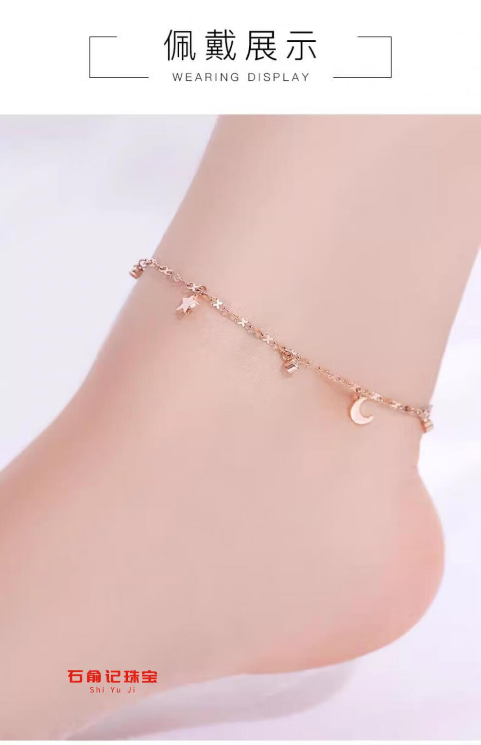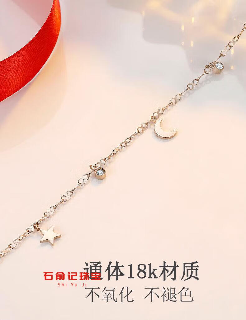 Fat Donglai's same 18k rose gold anklet 18K gold star and moon anklet for women AU750 gold inlaid with diamonds gold chain feeling light K yellow l gold star and moon anklet