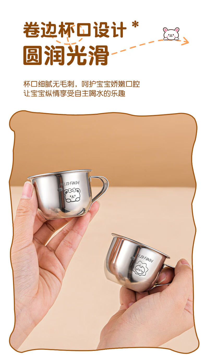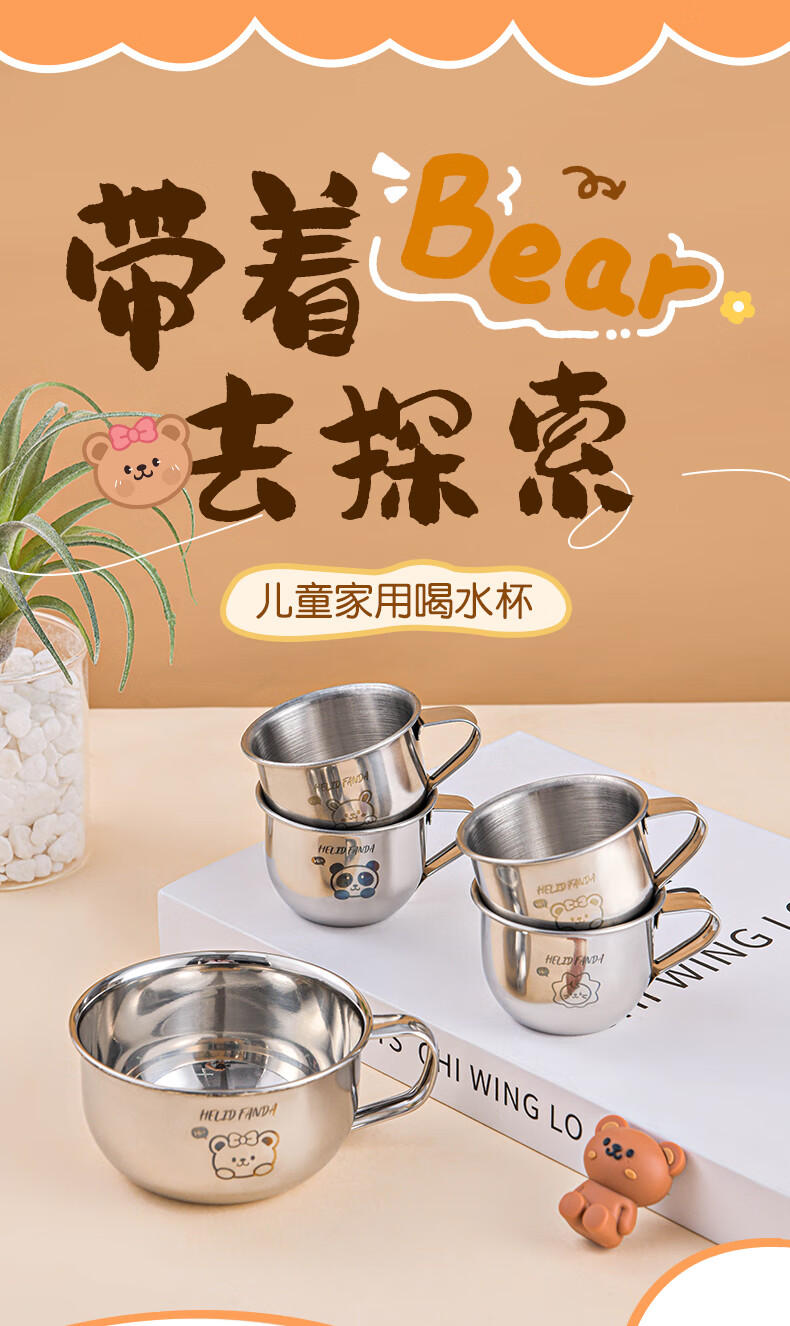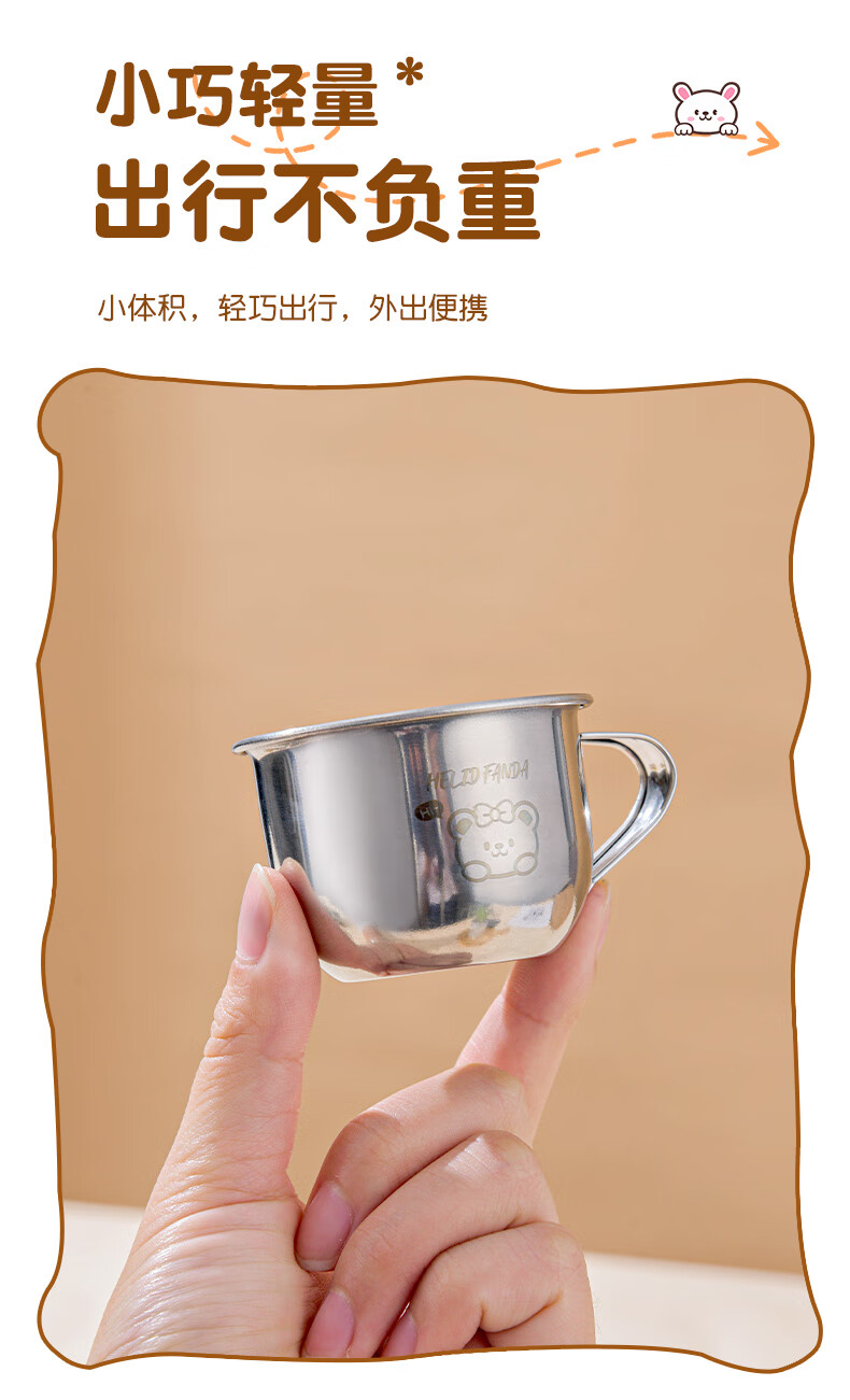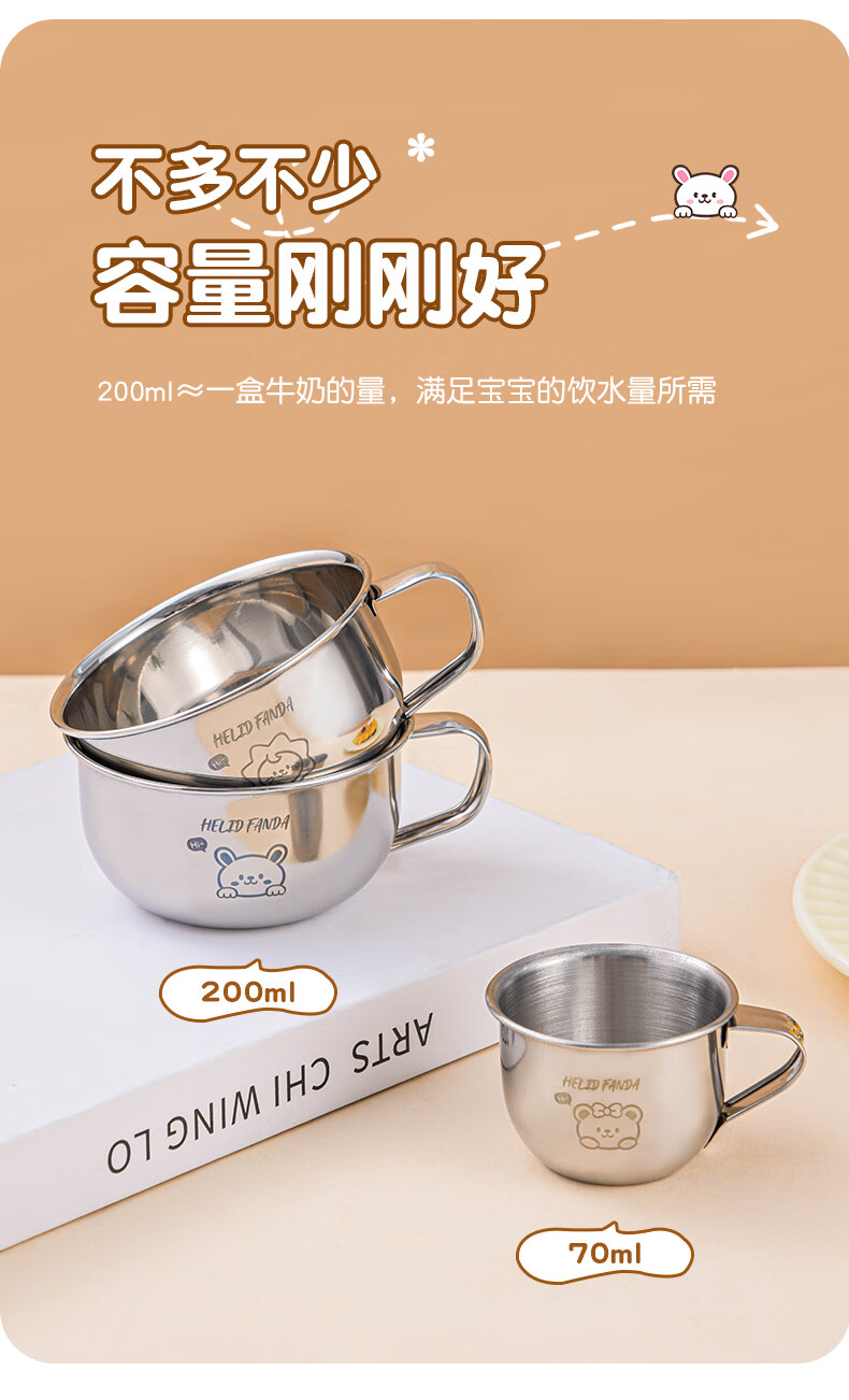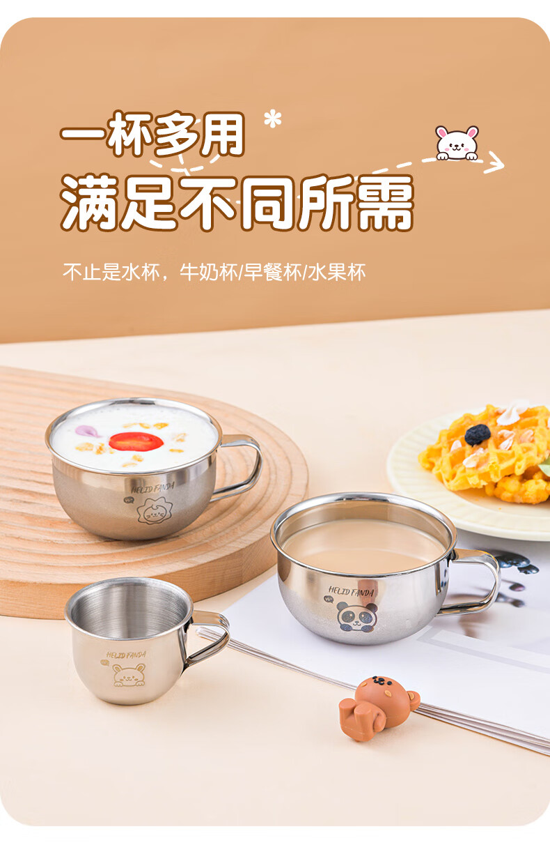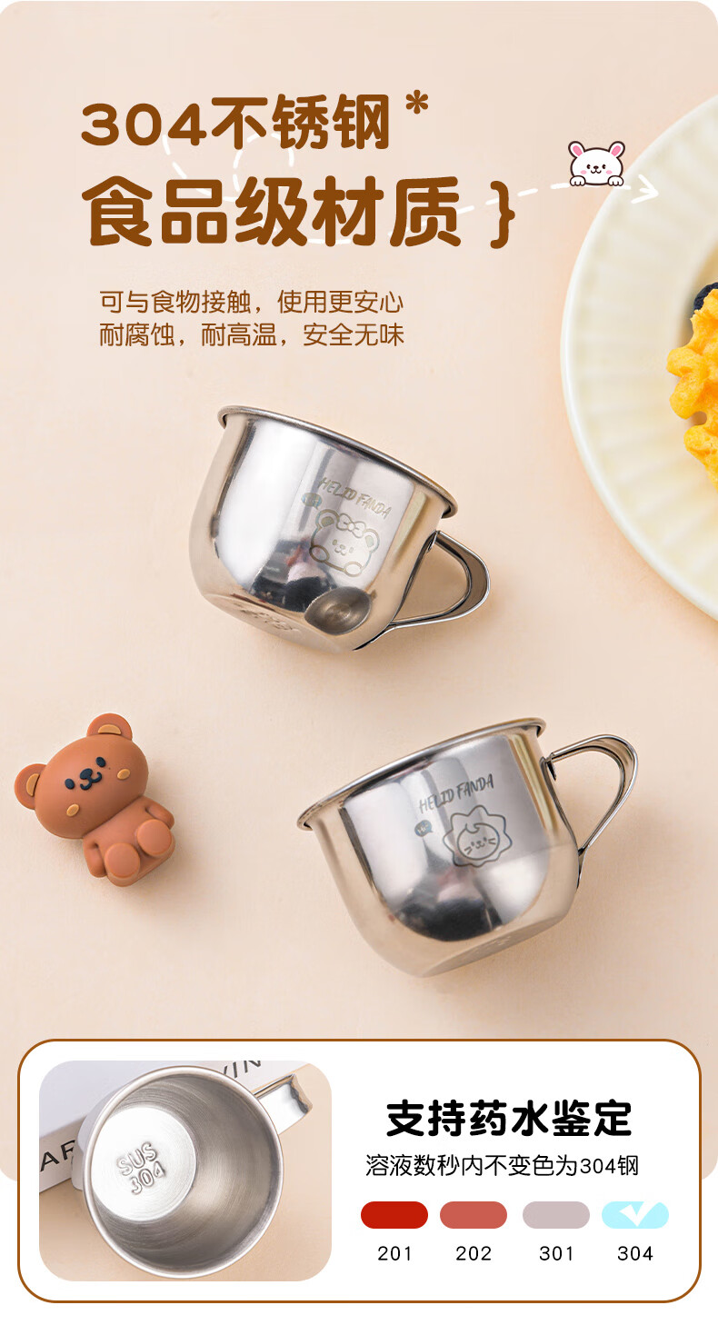 WORTHBUY Toddler Water Cup Baby Milk Cup Stainless Steel Food Grade Anti-fall Learning Drink Baby Rice Cereal Cup Small Size - Doudou Bear 70ml 1 piece