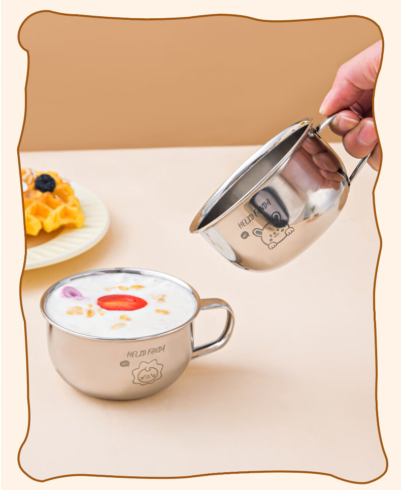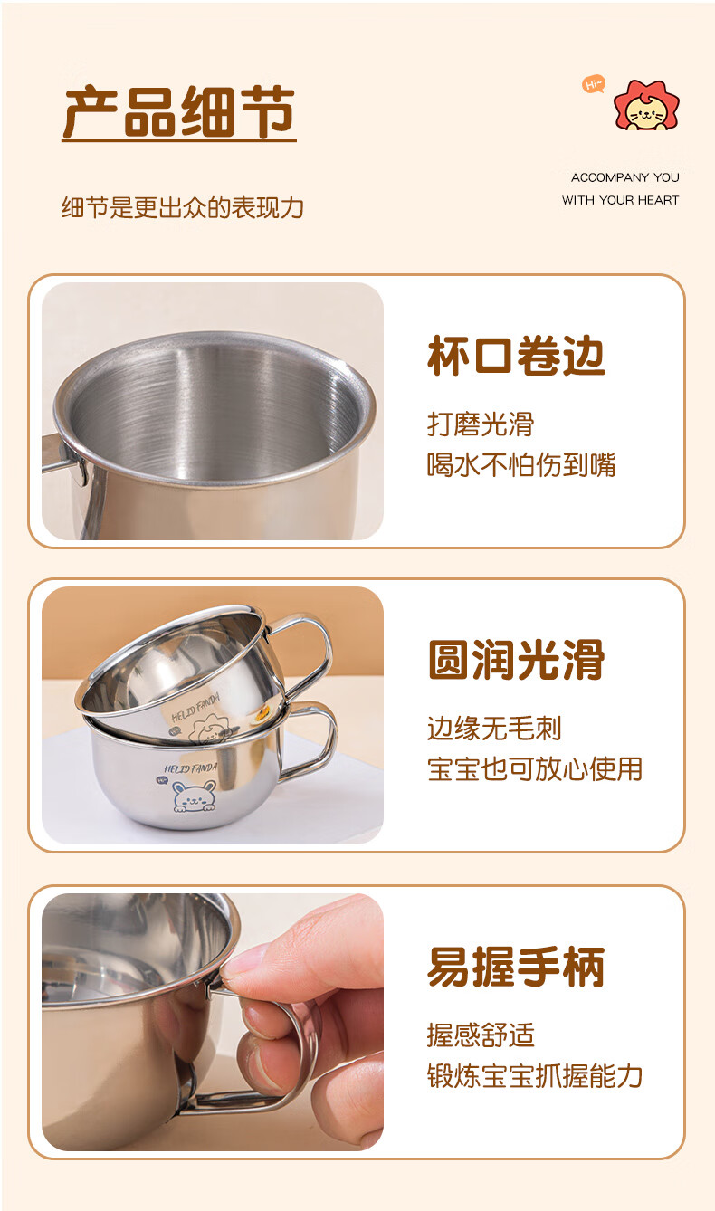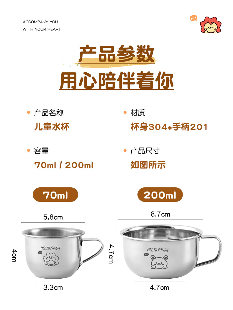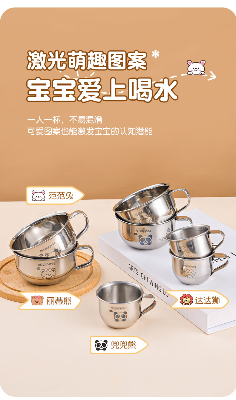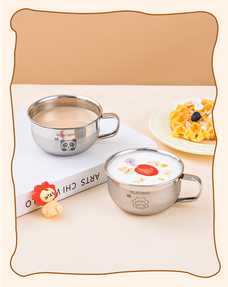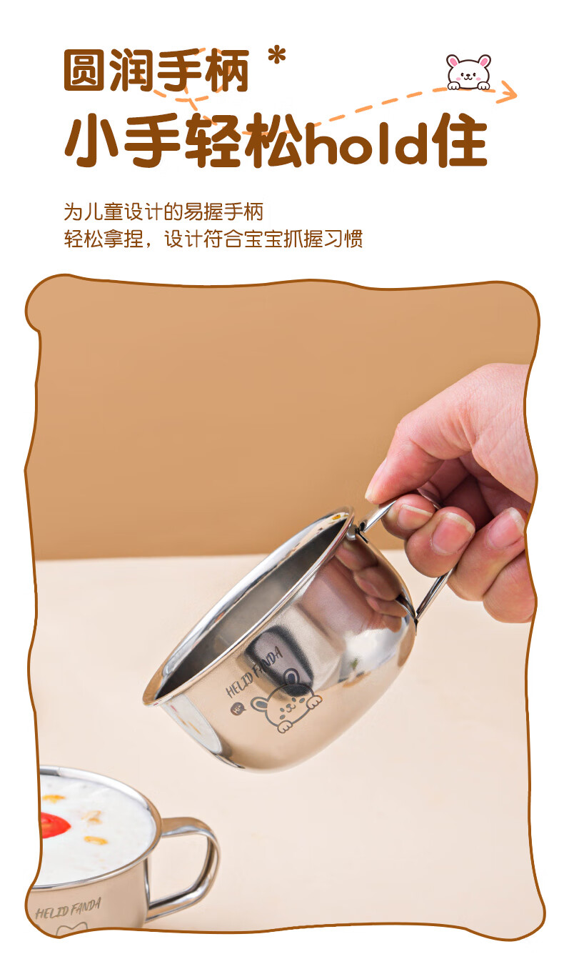 WORTHBUY Toddler Water Cup Baby Milk Cup Stainless Steel Food Grade Anti-fall Learning Drink Baby Rice Cereal Cup Small Size - Doudou Bear 70ml 1 piece