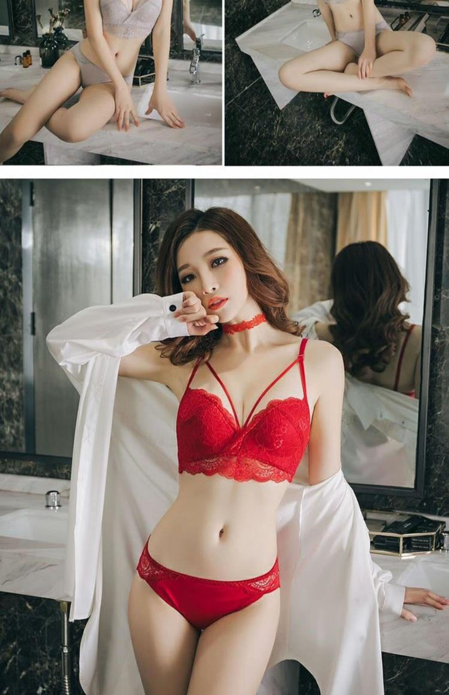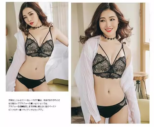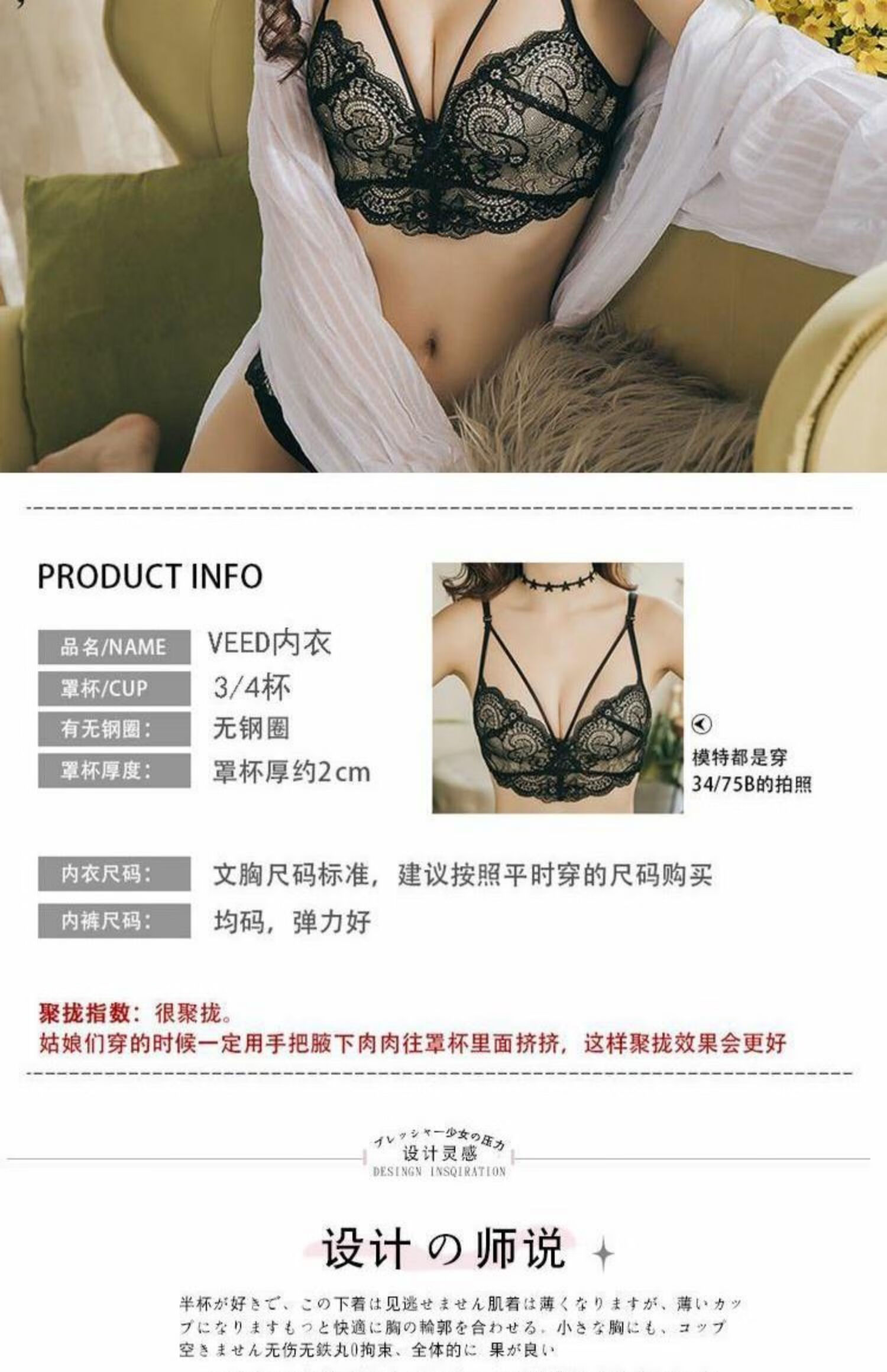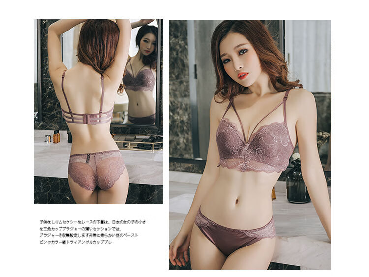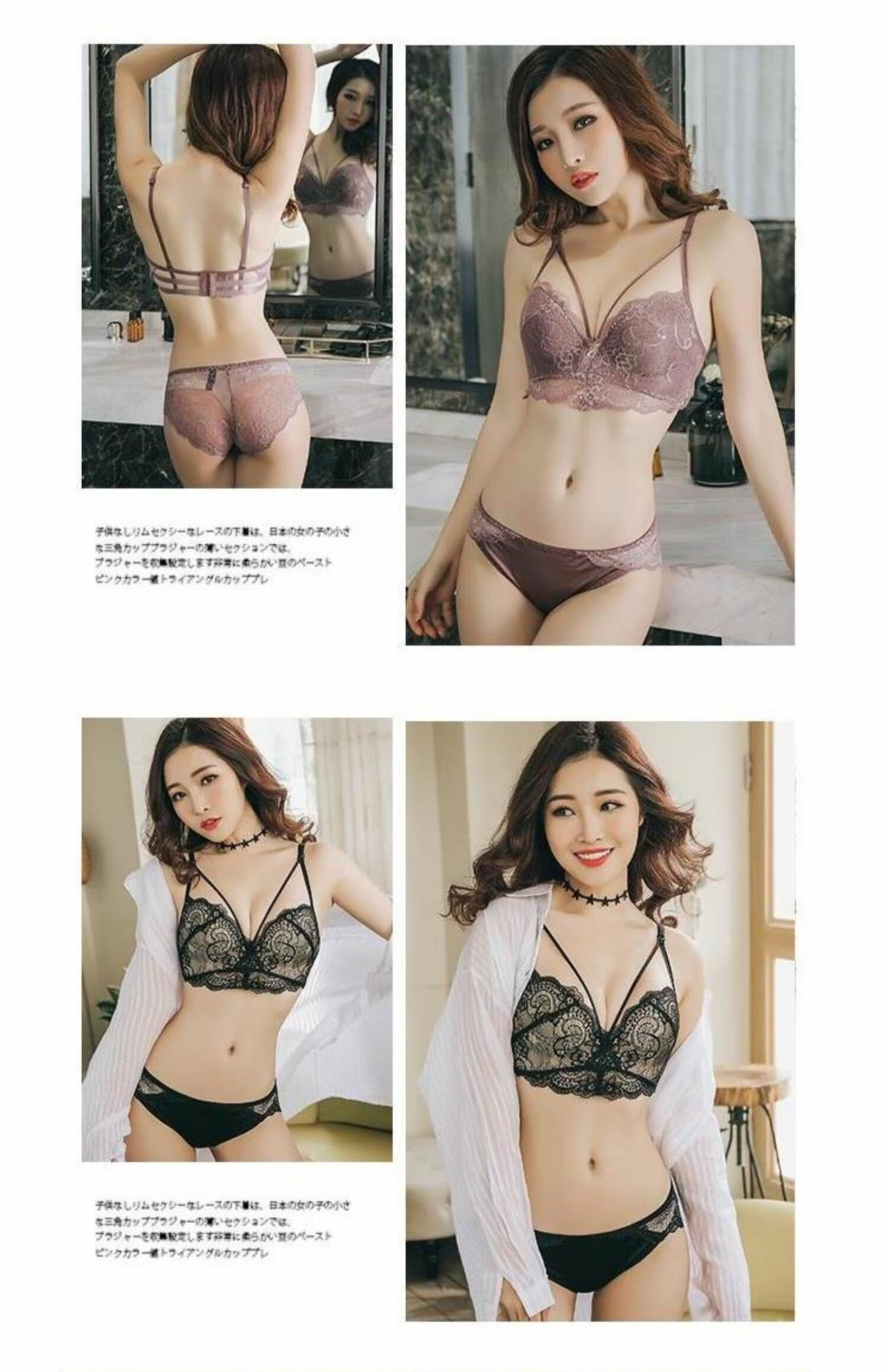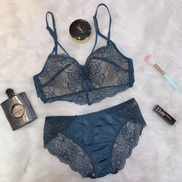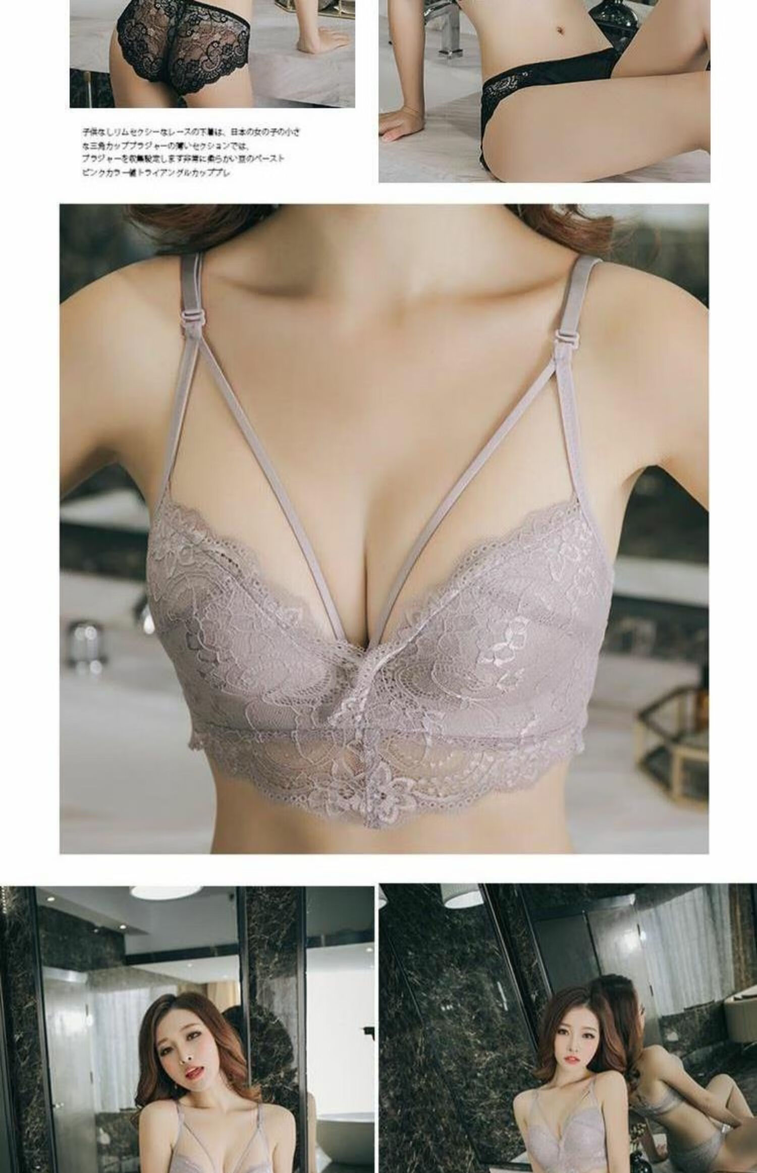 Aimu Autumn and Summer brand underwear for women without steel rings, small breasts, large push-up cup, thin sexy strappy lace bra set, green set 36/80B (thick version about 2CM)