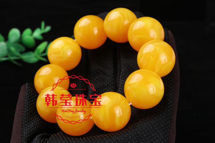 DL 1998 Fat Donglai quality beeswax bracelet chicken fat yellow amber men's single circle bracelet female old honey round beads 12mm 16 pieces