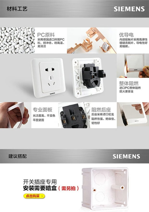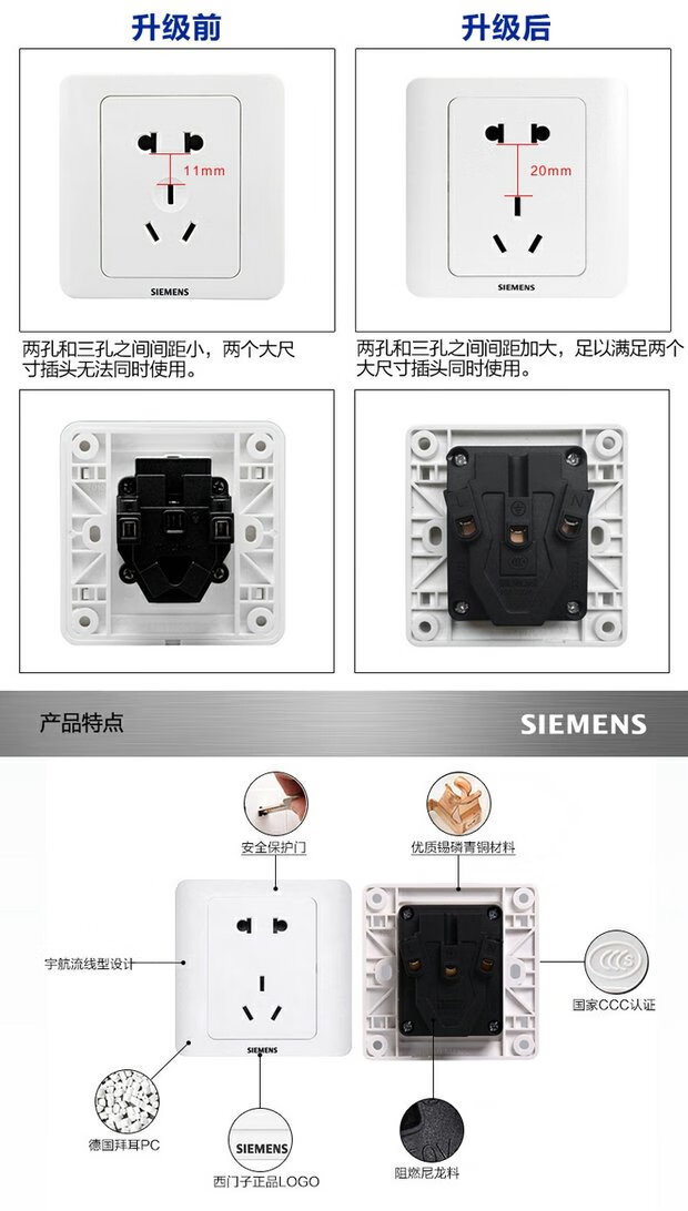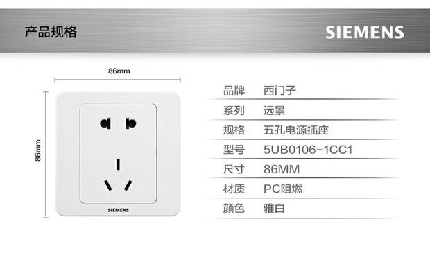 Siemens switch socket Yuanjing Yabai five-hole USB power socket with switch 16A air conditioner single opening panel 10A five-hole socket