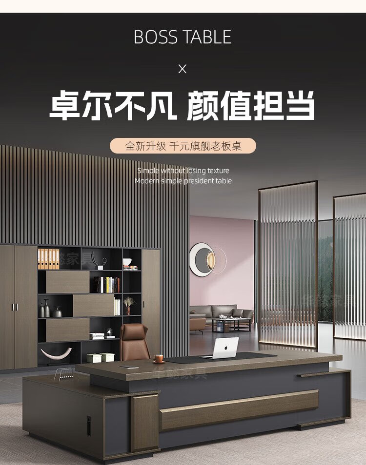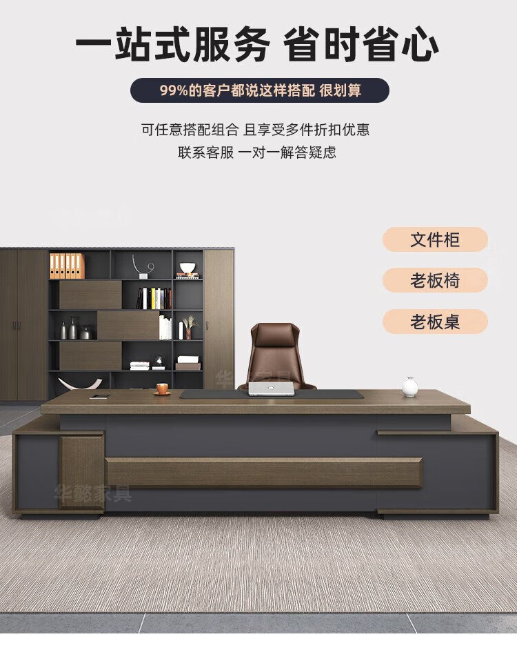 Huayi Executive Desk Boss Desk Simple Modern President Desk Manager Supervisor Desk and Chair Combination Executive Desk Furniture 1.8M Boss Desk + Boss Chair