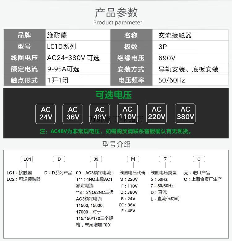 Schneider contactor 220V LC1D09 12 three-phase 380V elevator 110V AC 24V LC1D40 50 LC1D12 12A B7C AC AC24V