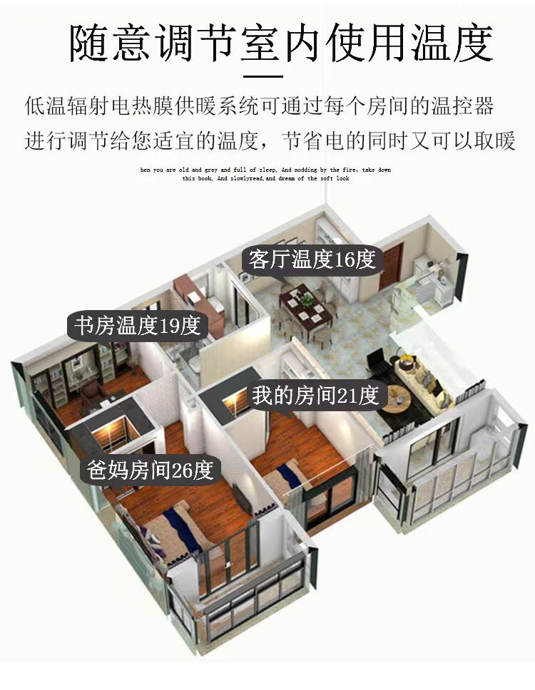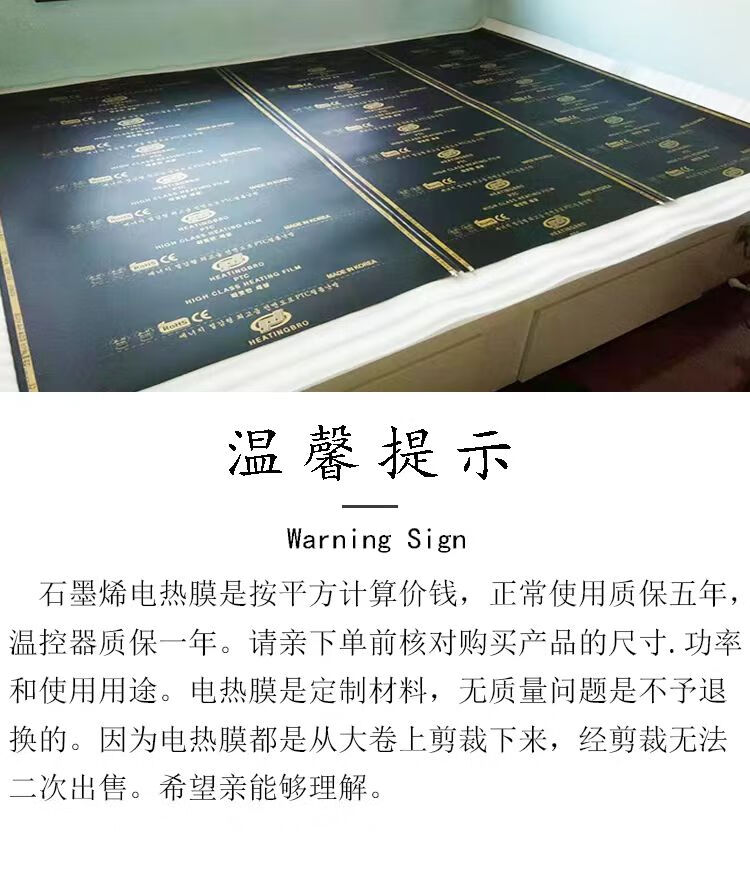 Graphene electric heating film electric heating sheet Korean electric heating Kang electric heating film household carbon fiber board adjustable temperature electric floor heating 0.5*1.75 meters free single thermostat free insulation film