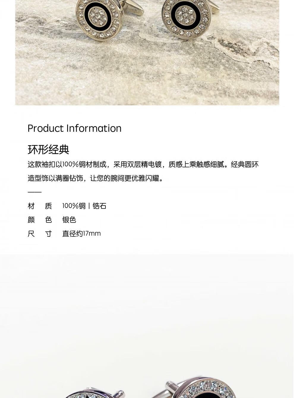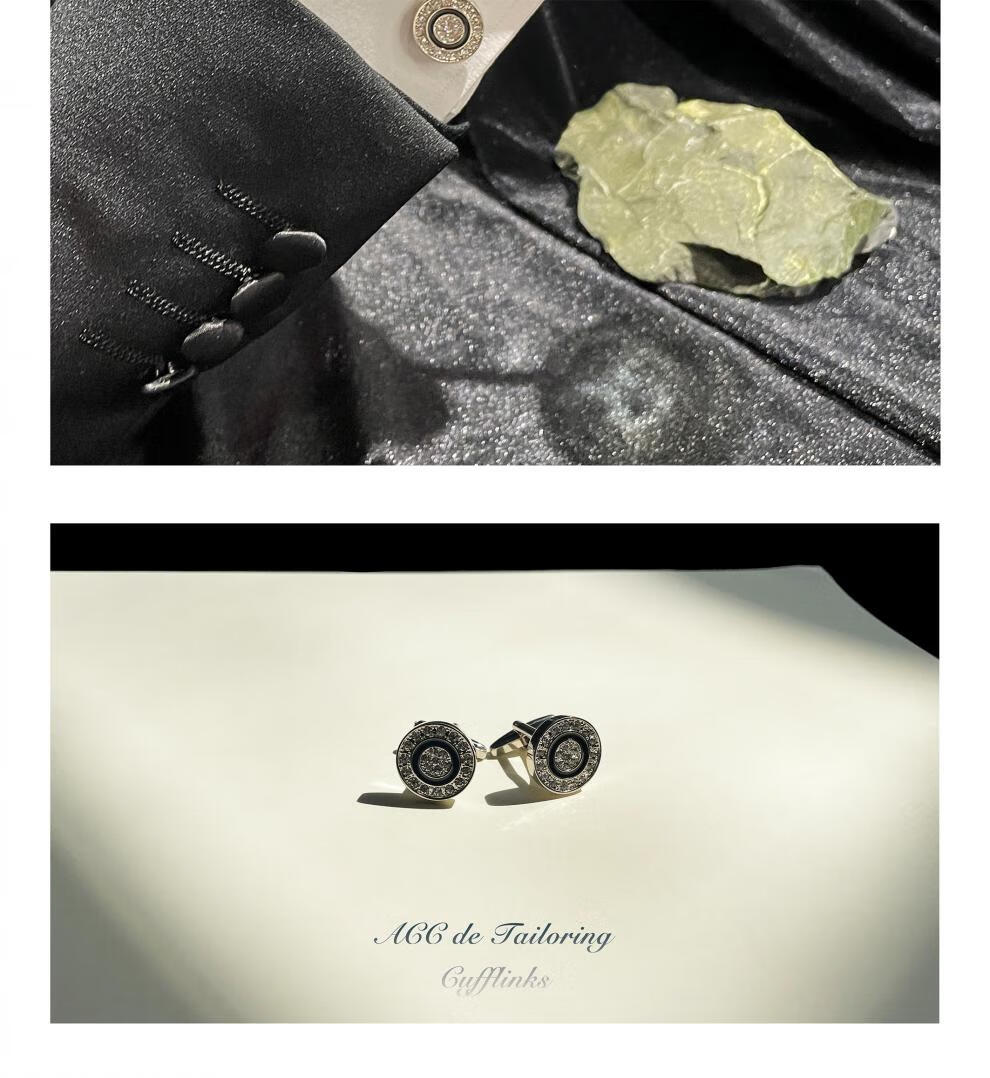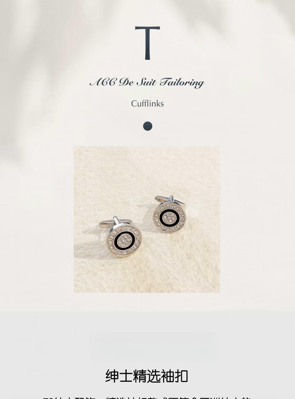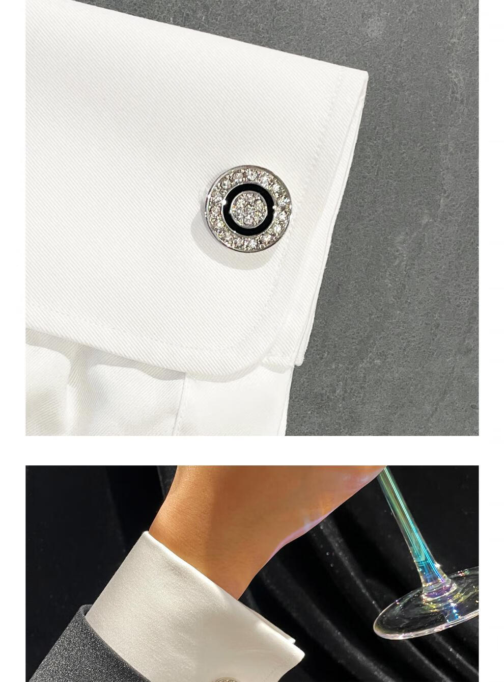 Apatia French round white crystal cufflinks light luxury minimalist men's style gentleman elegant shirt ring classic