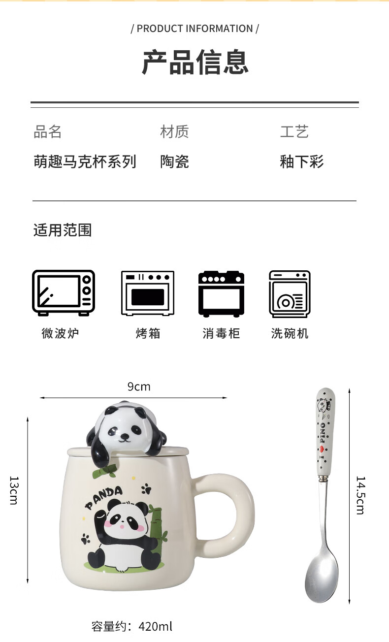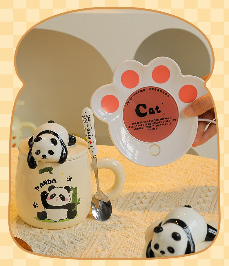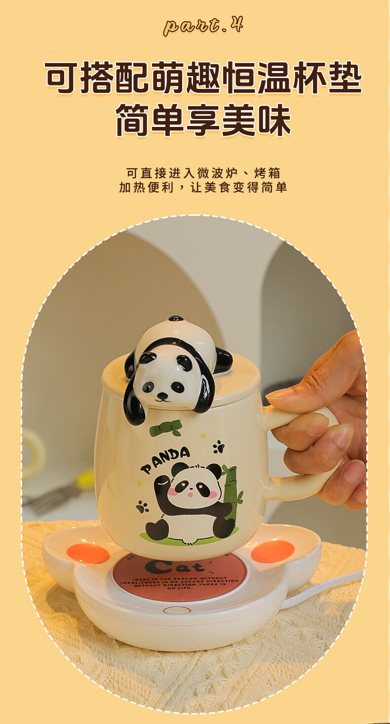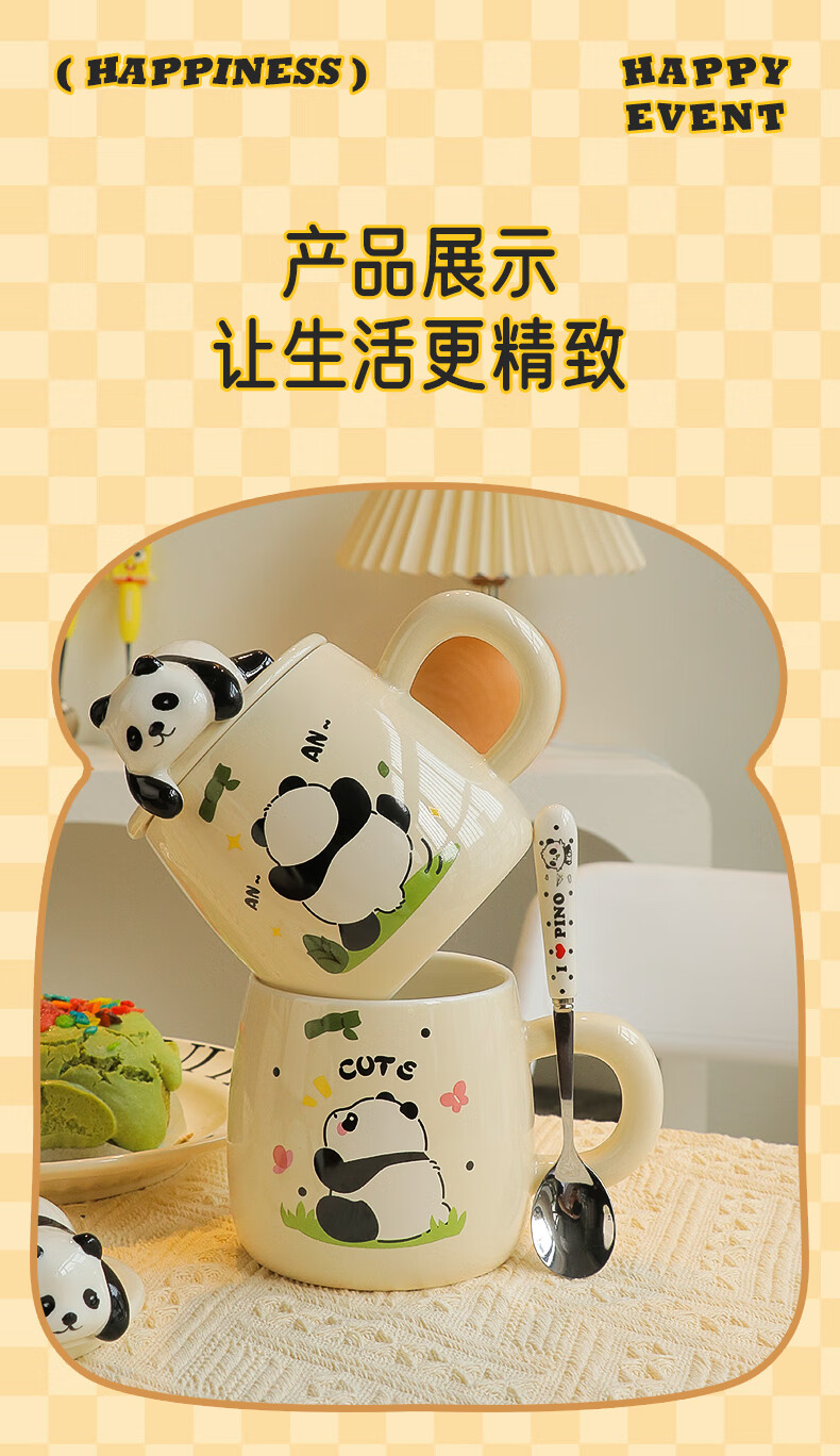 Busy farmer mug for girls, good-looking souvenir, ceramic mug with lid and spoon, panda birthday gift, cute gift box, giant panda (lid + exclusive spoon) sitting