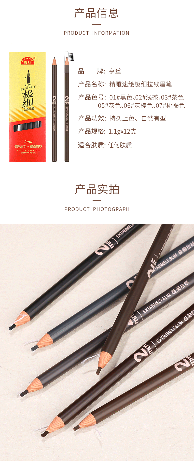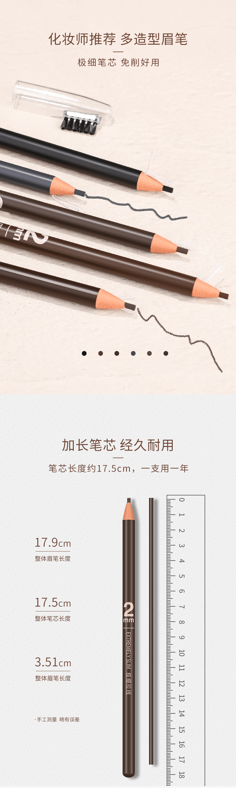 Hensi 1818 Pull-Thread Eyebrow Pencil Tear-off Paper Waterproof and Sweat-proof Eyebrow Makeup Artist Female Tear-Off Can Cut Duckbill Shape Beginner Ordinary Model Brown *2 Count