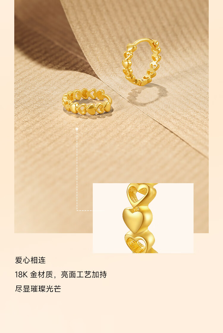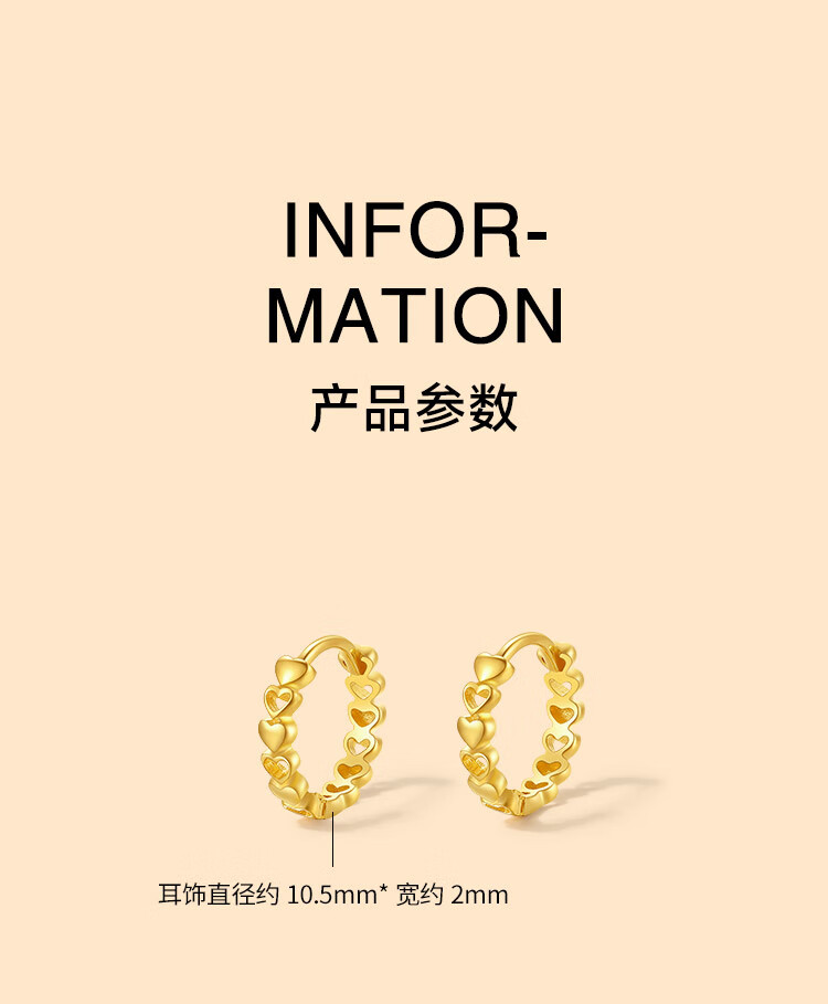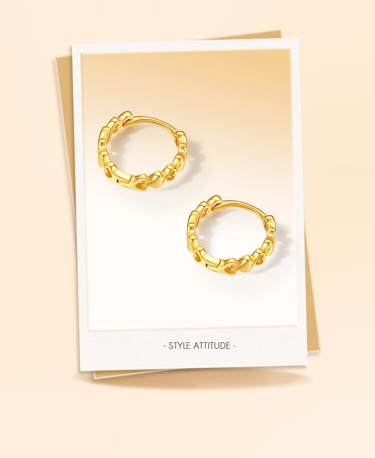 Saturday Fortune (ZLF) yellow 18K gold earrings for women, love earrings, gold simple fashion earrings for girls, a pair of earrings