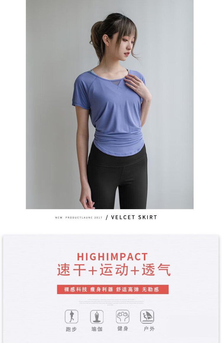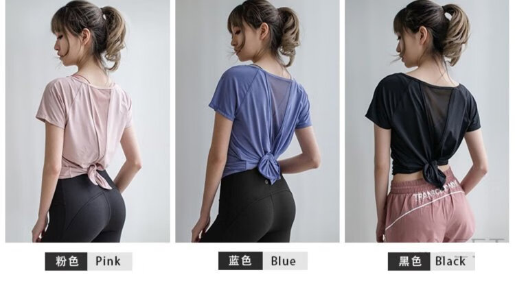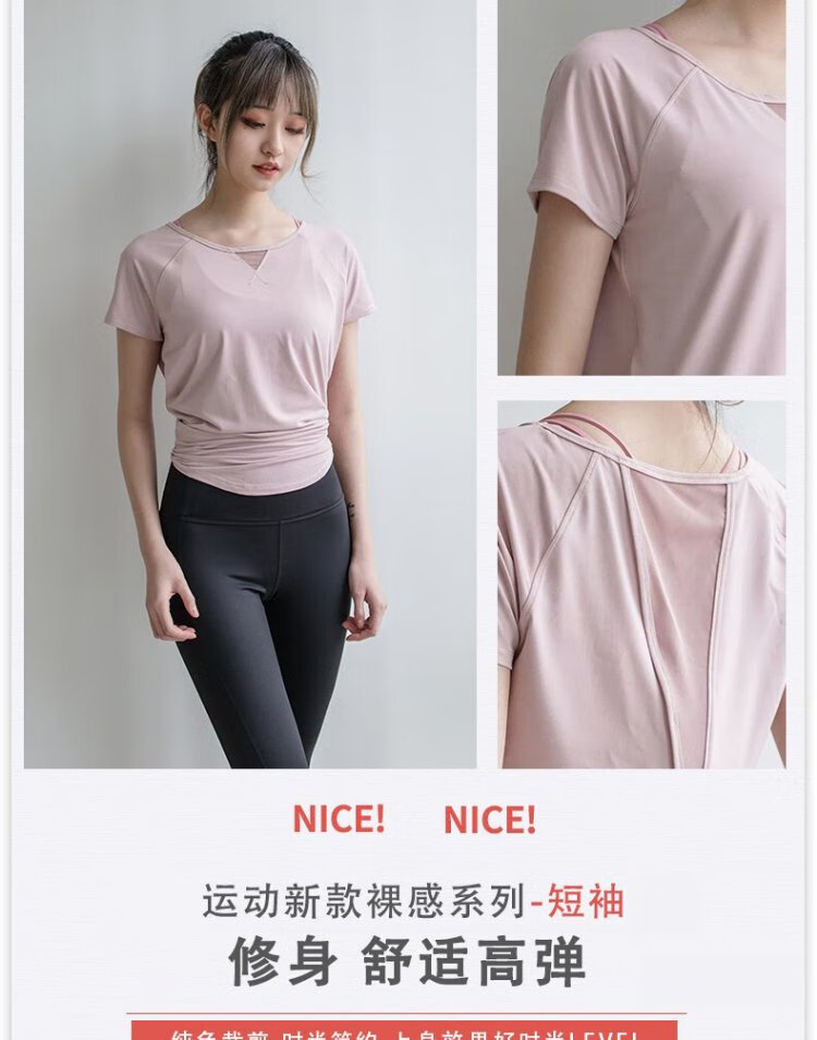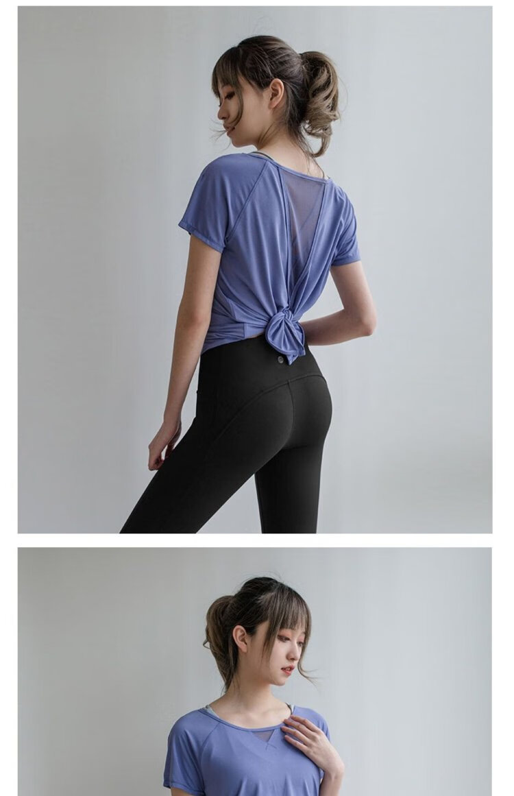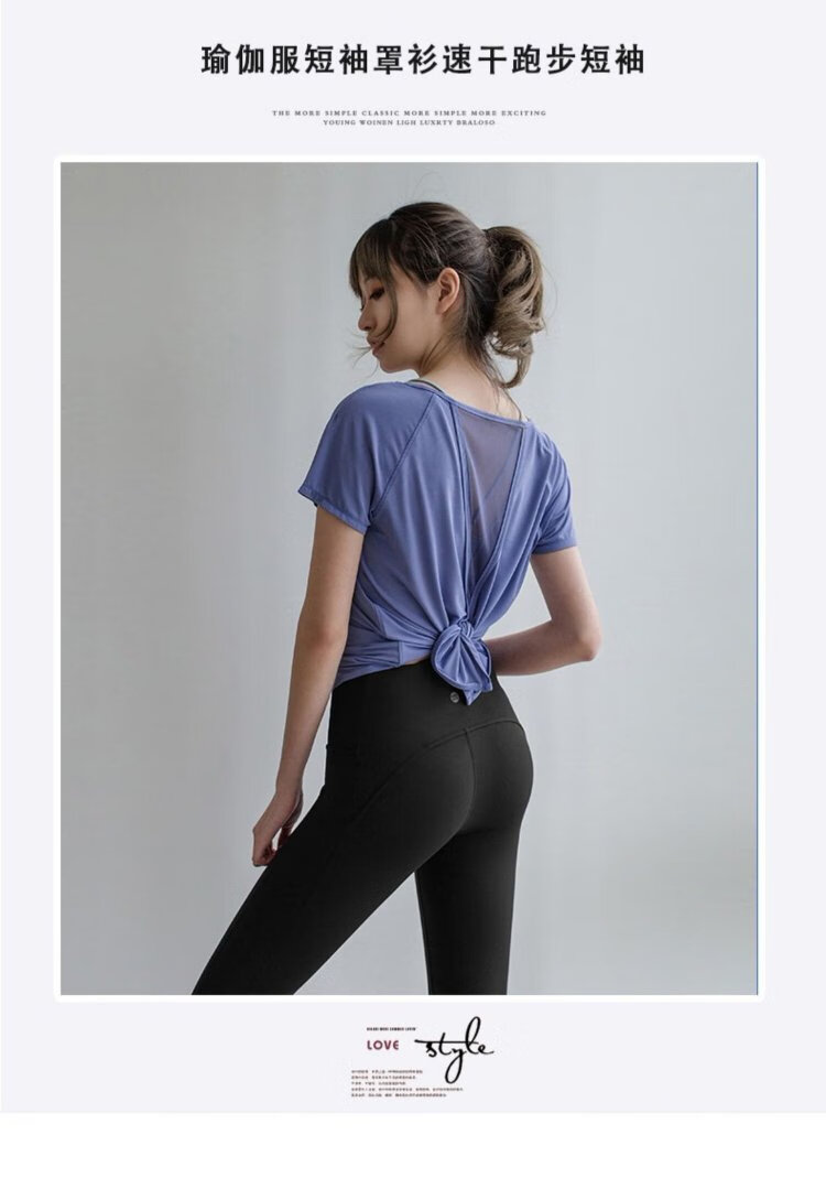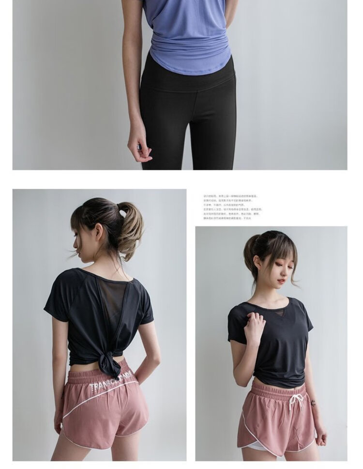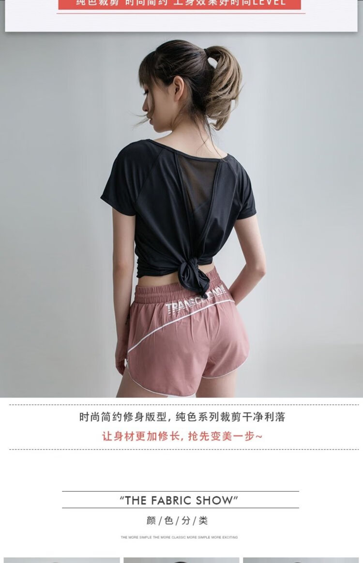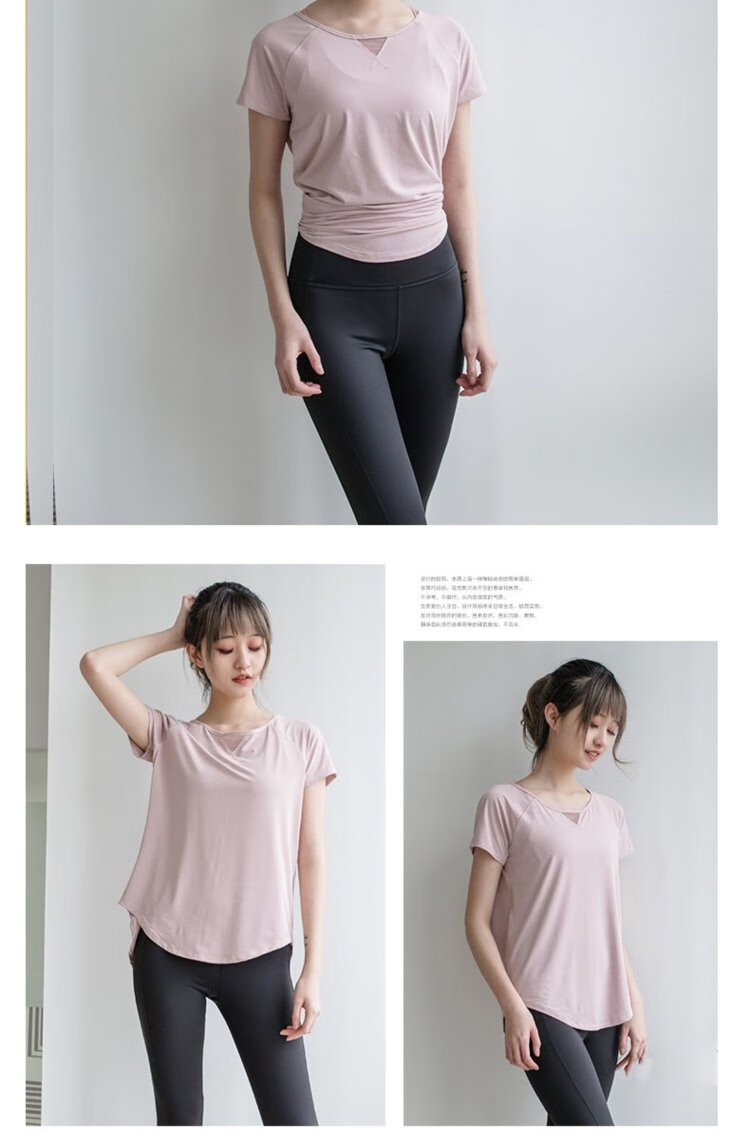 Yoga girl summer yoga wear Pilates mesh short-sleeved loose running blouse quick-drying sports suit pink top + black trousers S (80-95Jin Jin equals 0.5kg)