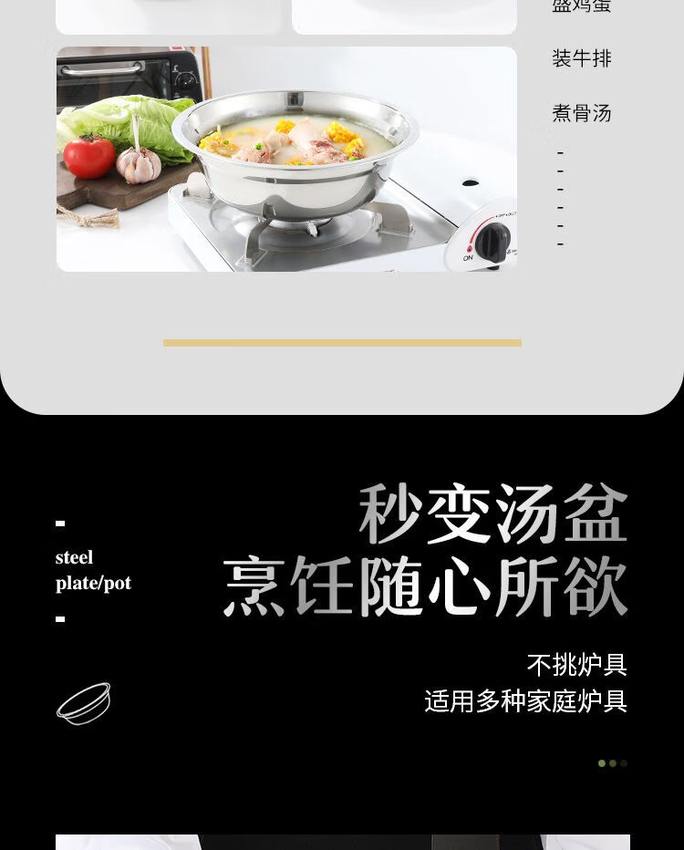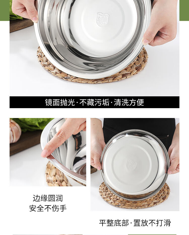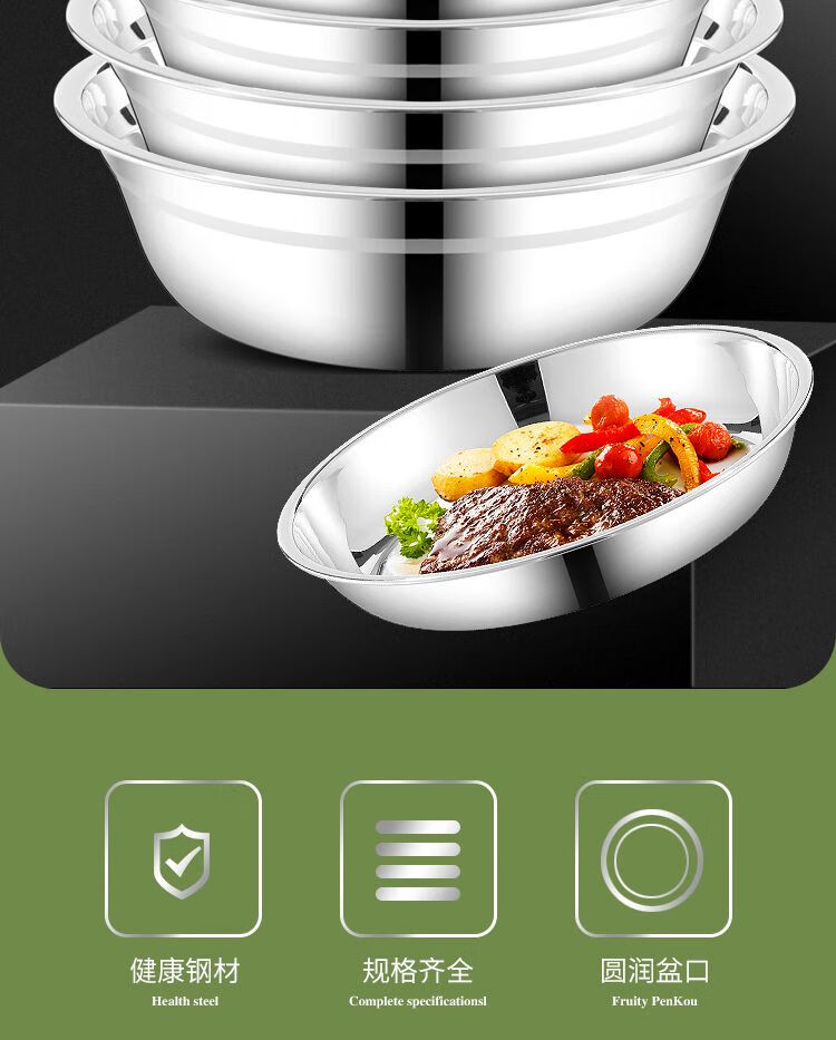 Putel 316L stainless steel basin set vegetable basin household oil basin kitchen egg and noodle soup basin three-piece set 18+20+22cm