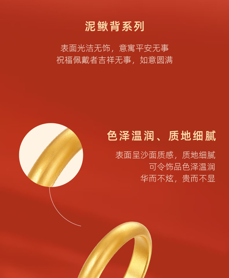 Zhongxin Jewelry loach back ancient gold ring men and women plain ring ring solid gold 999 aperture ring jewelry 5.1g (14 ring size)