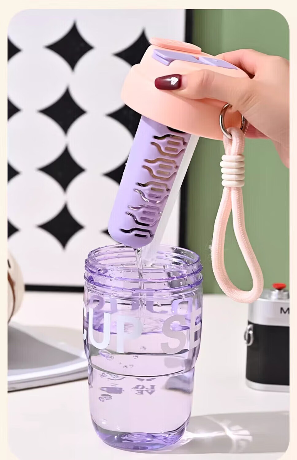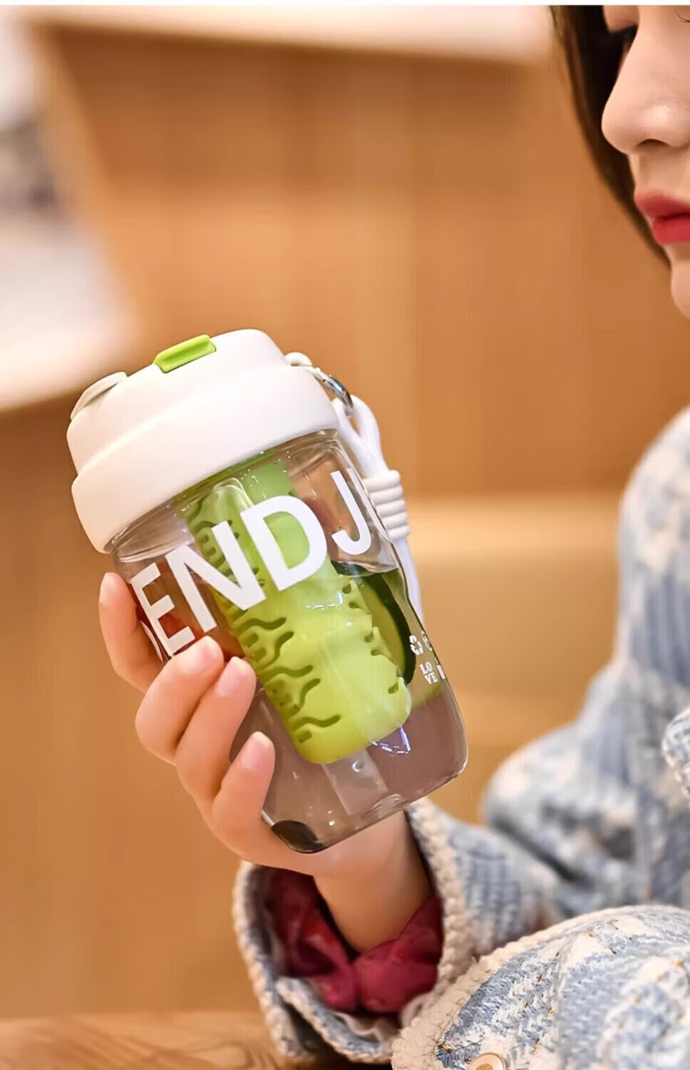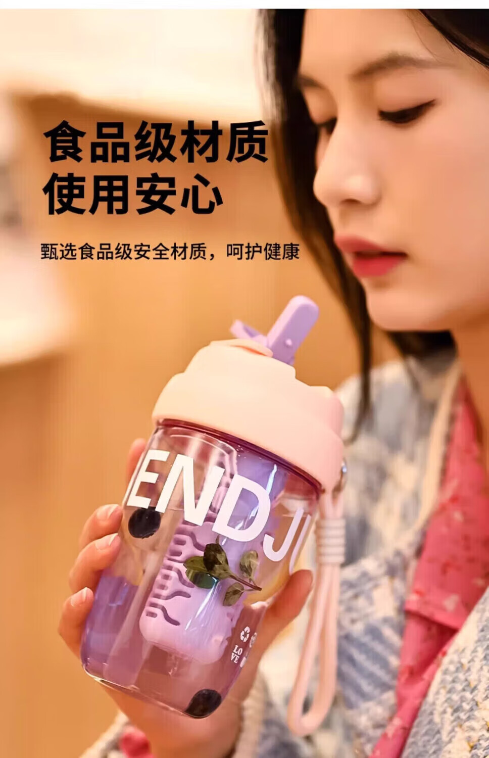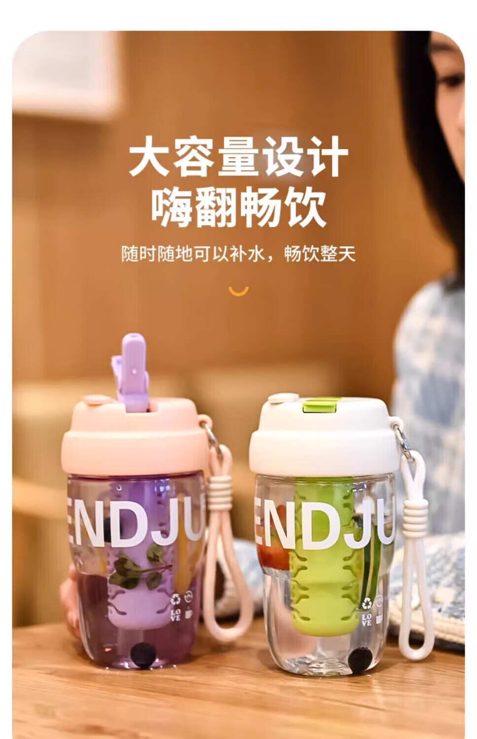 Jingdie Yanzhi Water Cup Women's Large Capacity Tea and Water Separation Tea Cup Double Drinking Cup with Straw Cup Student Cute Cup White Kitten 3D Sticker/Embossed Sticker Includes Cup Brush
