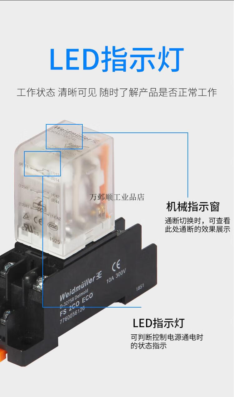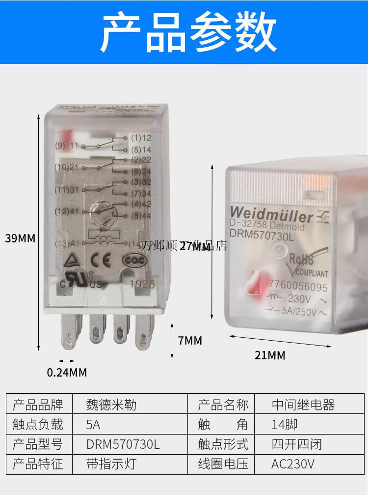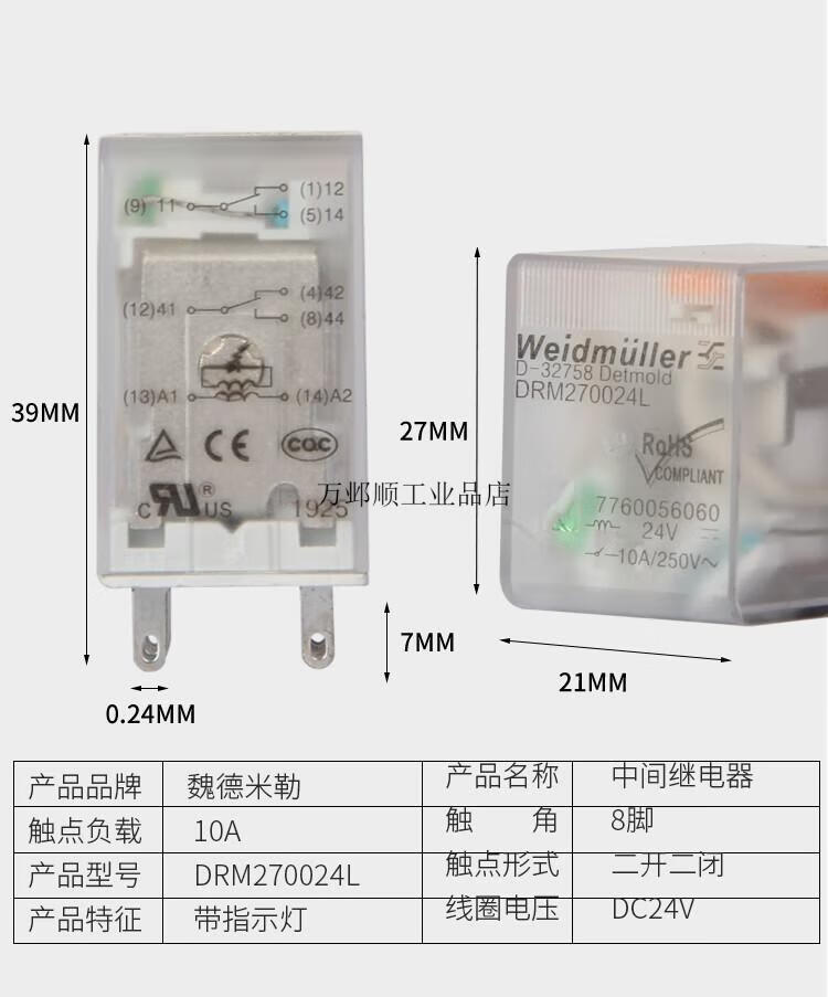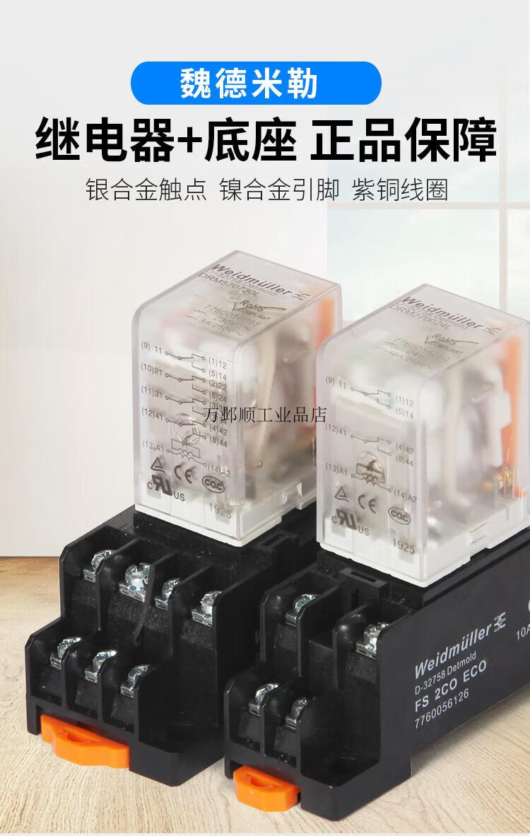 Weidmüller intermediate relay DRM270024L 270730LT AC DRM570024L 570730LT DRM270024L 2 open 2 closed 8 feet DC24V with protected base