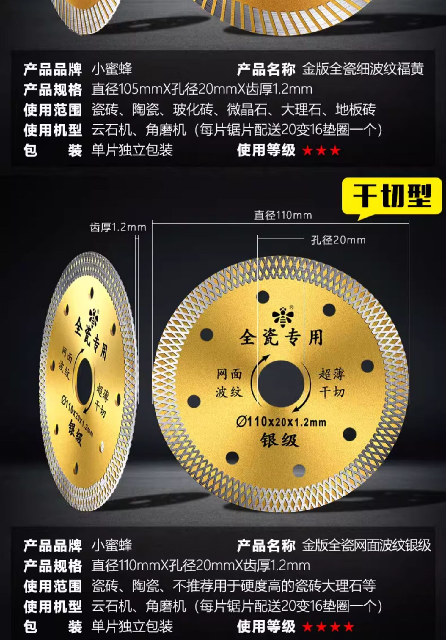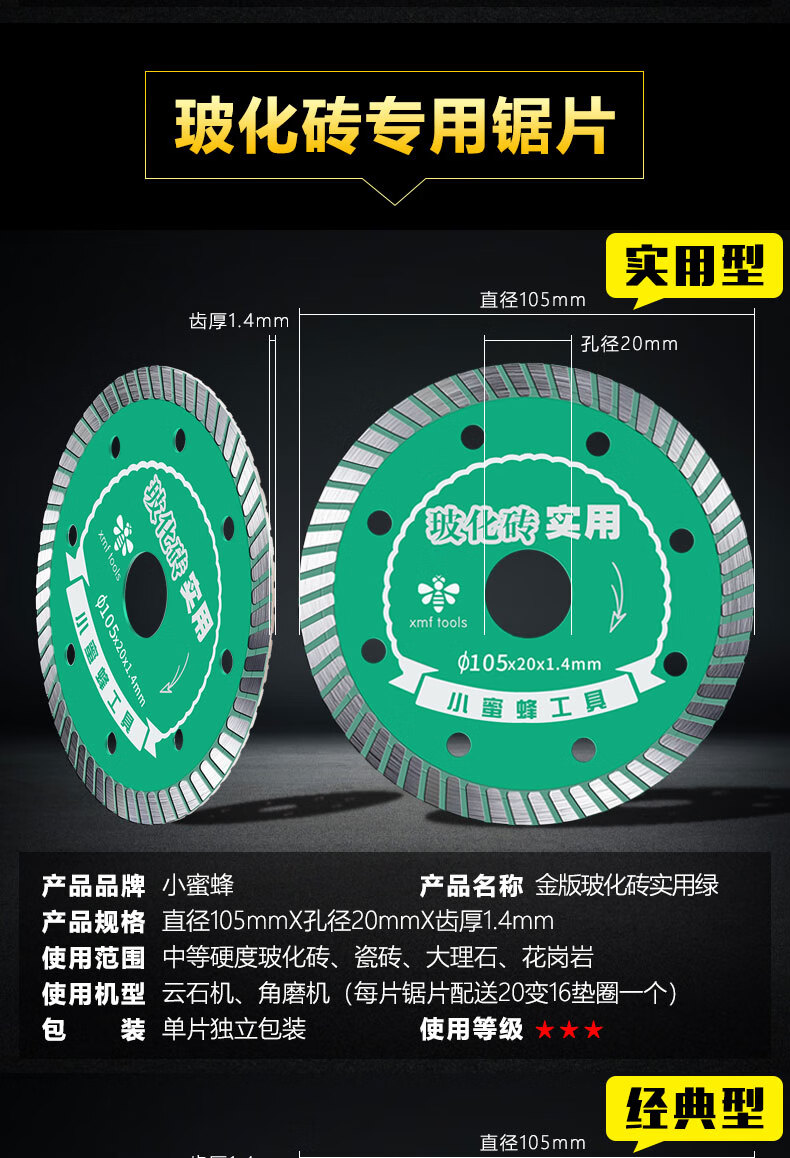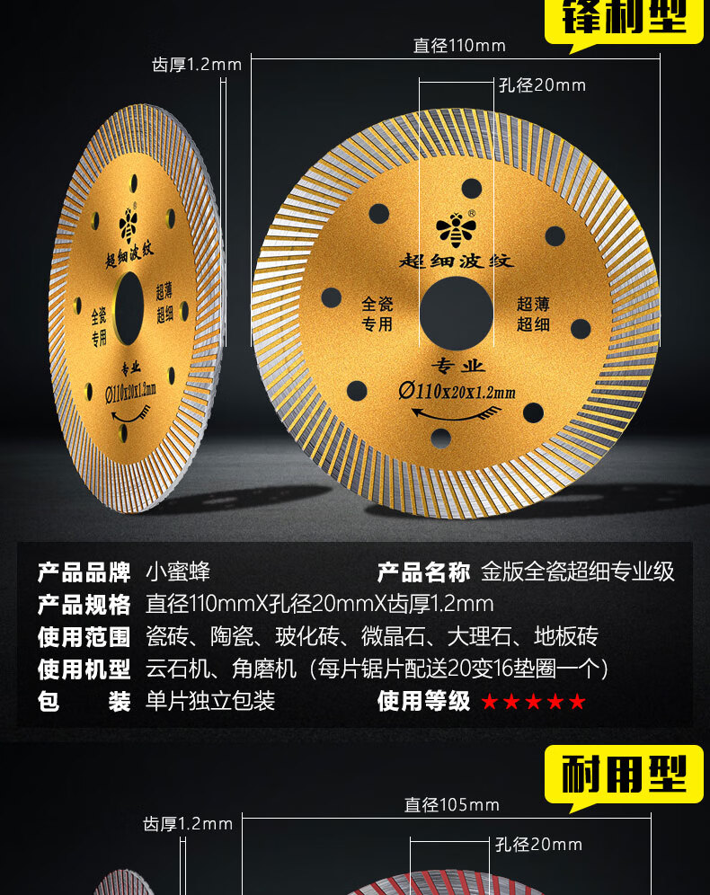Little Bee tile cutting blade ultra-thin diamond saw blade stone marble cutting machine dry cutting blade tile mesh corrugated silver level 110 dry cutting type