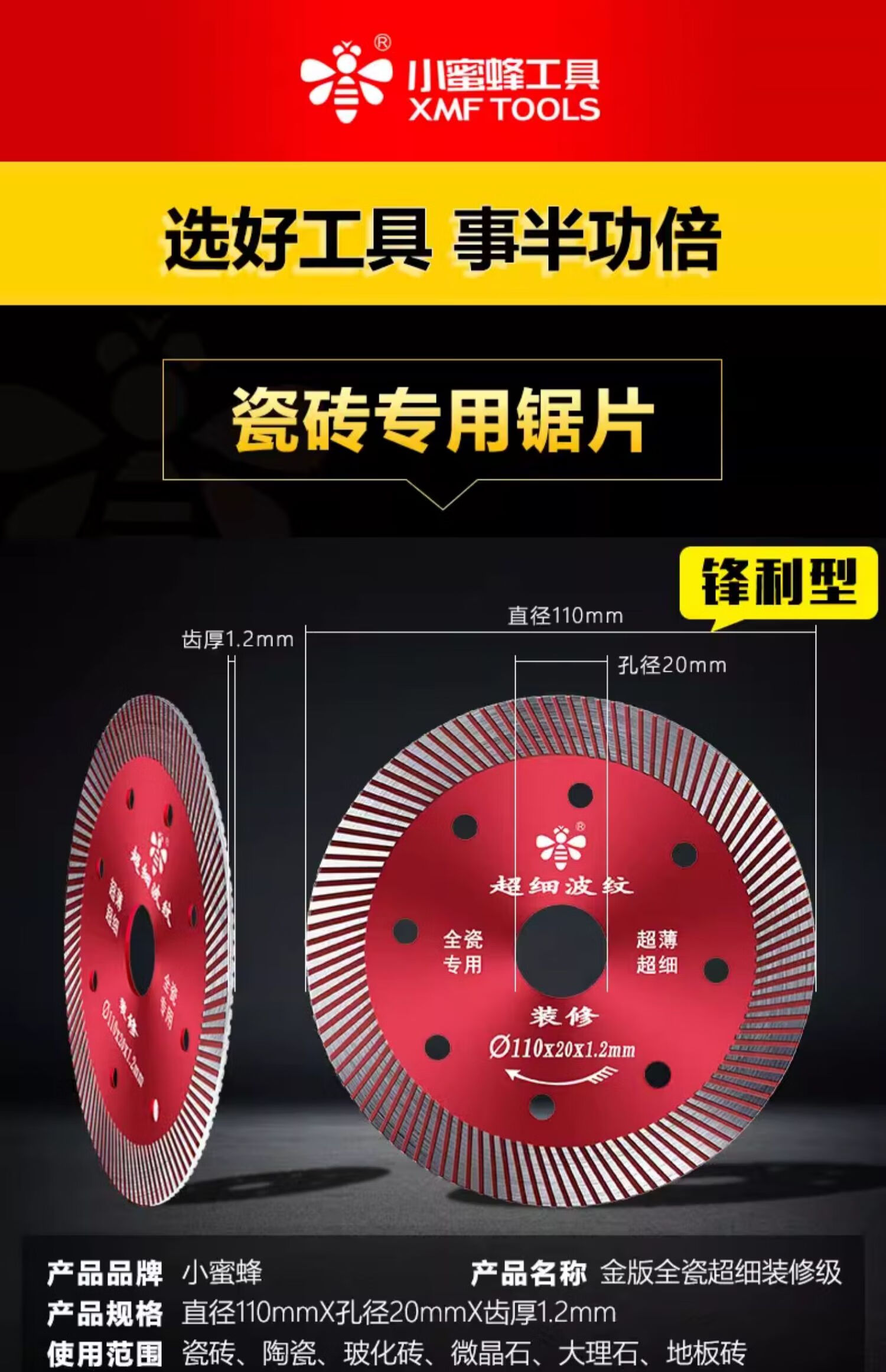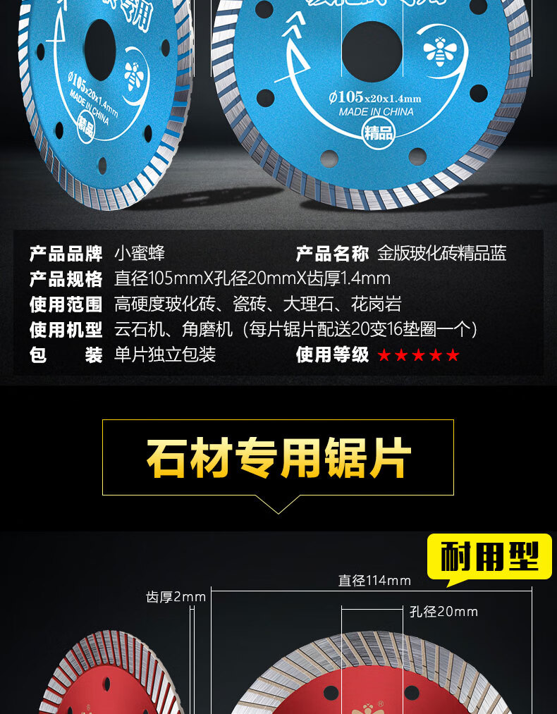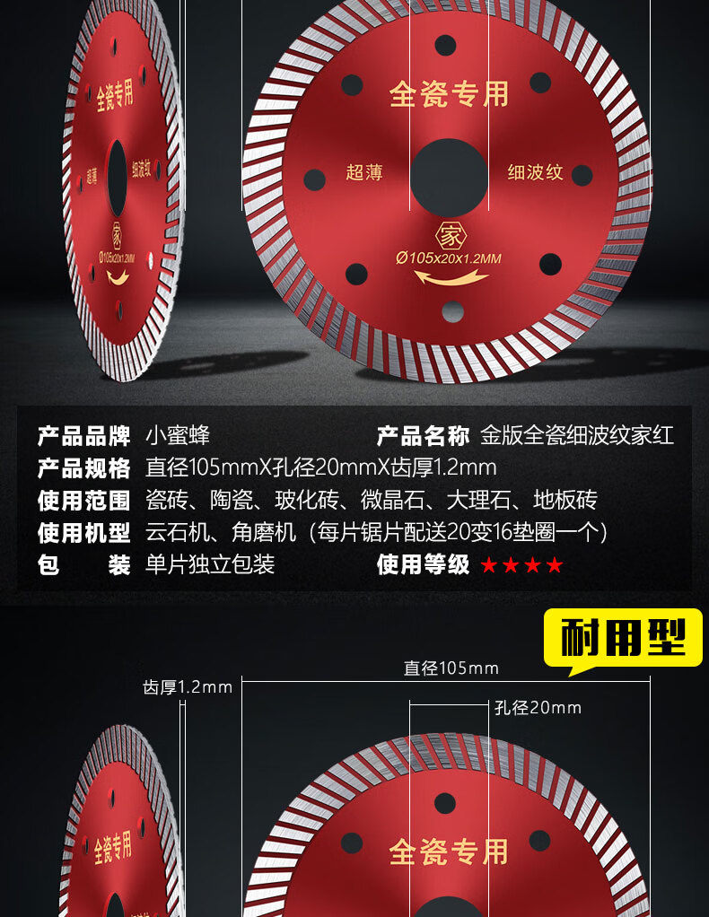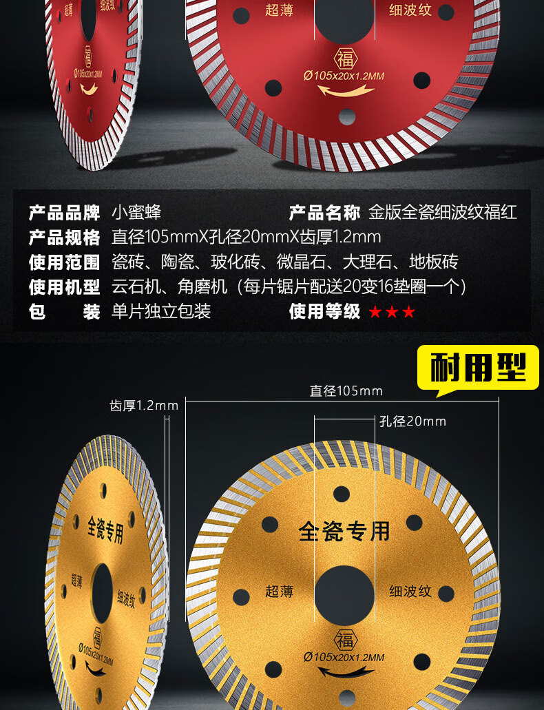 Little Bee tile cutting blade ultra-thin diamond saw blade stone marble cutting machine dry cutting blade tile mesh corrugated silver level 110 dry cutting type