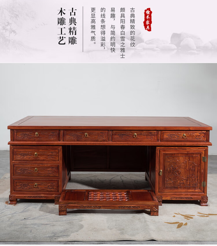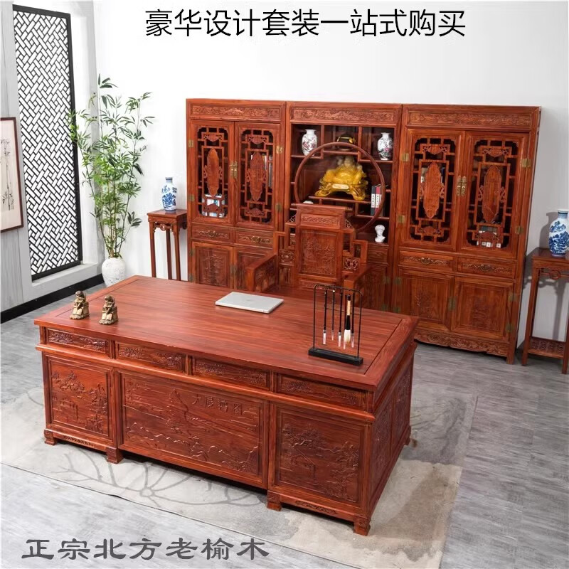 Northern old elm solid wood Chinese style desk desk bookcase executive desk boss desk computer desk writing desk desk tiger leg old desk 1.8 meters