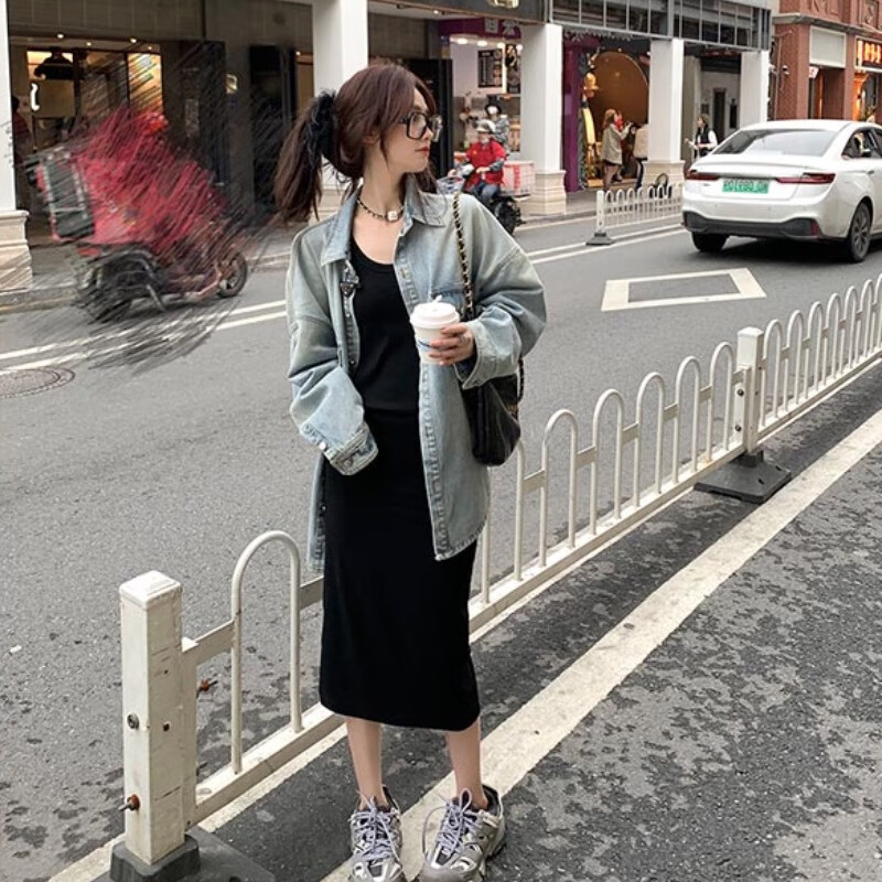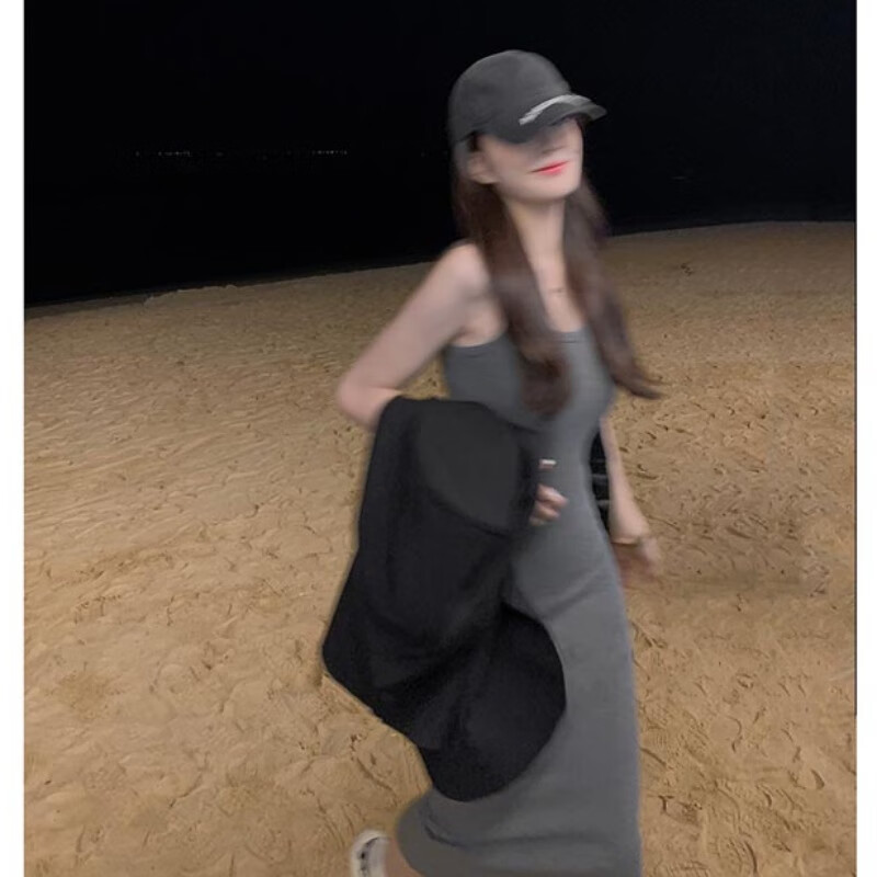 GUOCILRN Gray Vest Dress Women's Summer Knitted Suspender Skirt Small Long Skirt Design Niche Slim Fit Hip Skirt Gray S