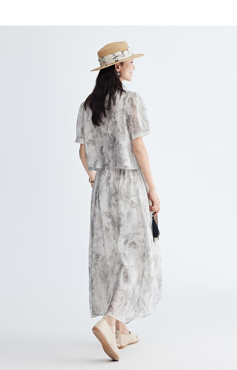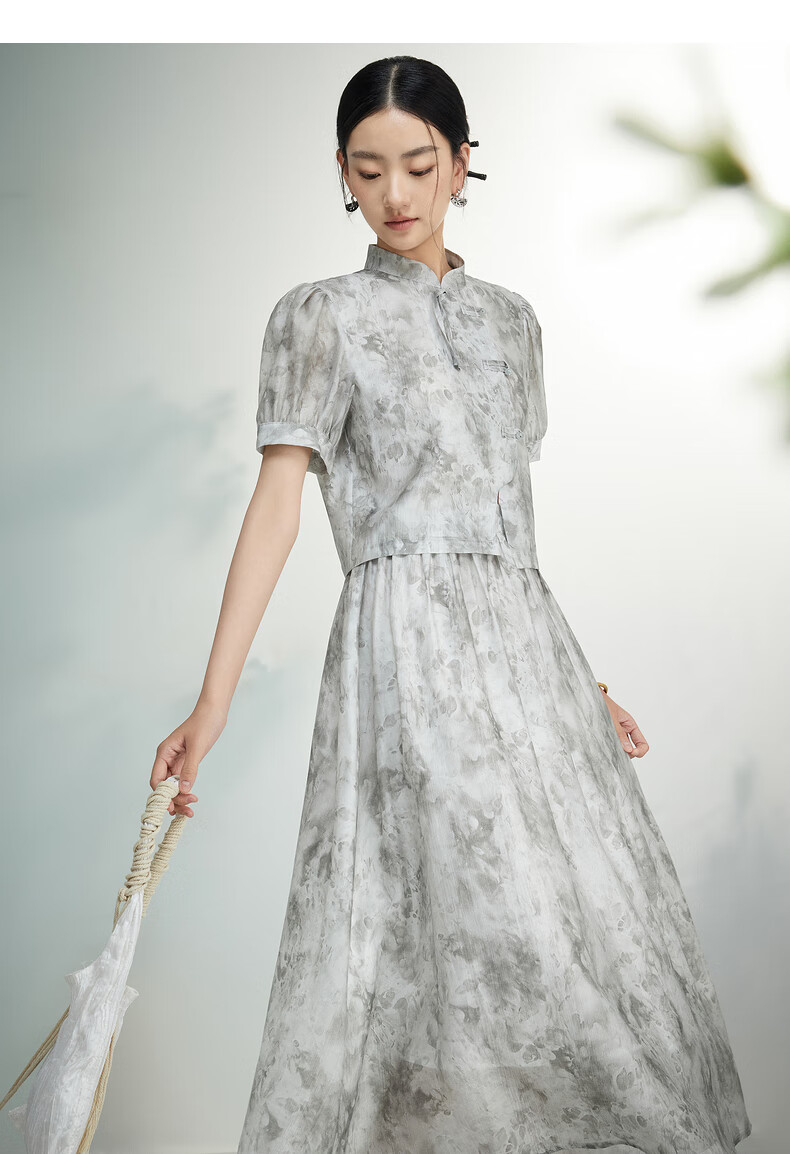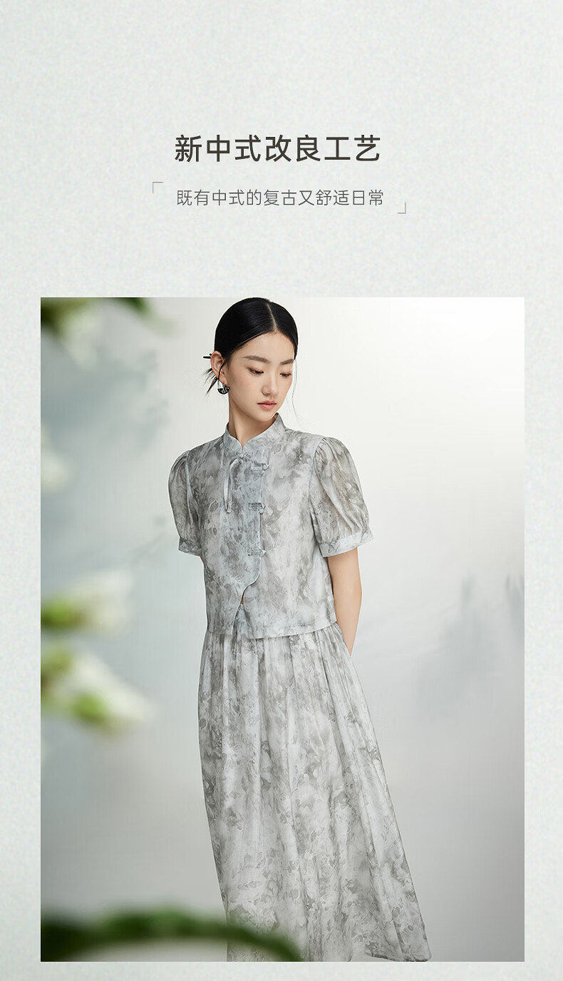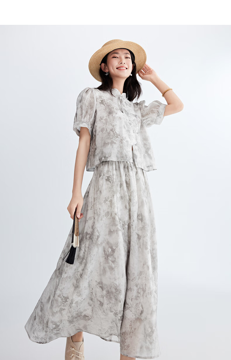 Birds and New Wine summer new floral fashion retro new Chinese style this year's popular beautiful suit skirt for women full pattern light gray HPC01 S