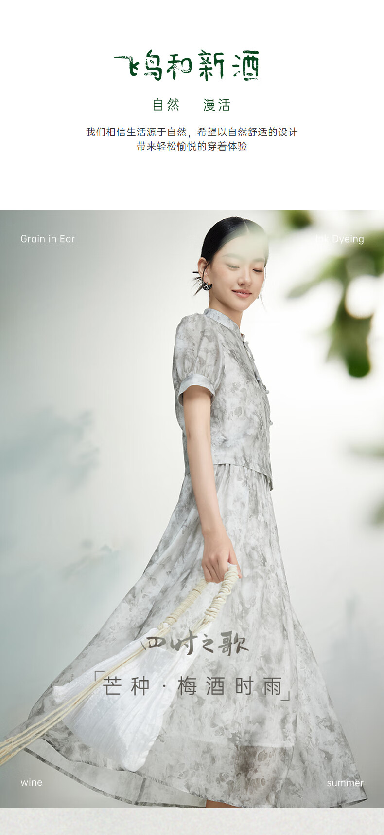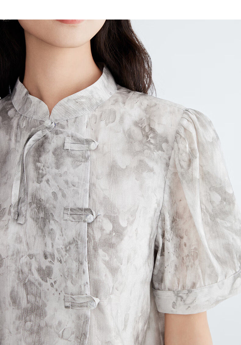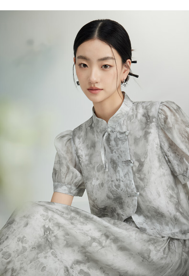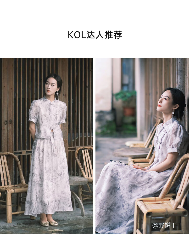 Birds and New Wine summer new floral fashion retro new Chinese style this year's popular beautiful suit skirt for women full pattern light gray HPC01 S