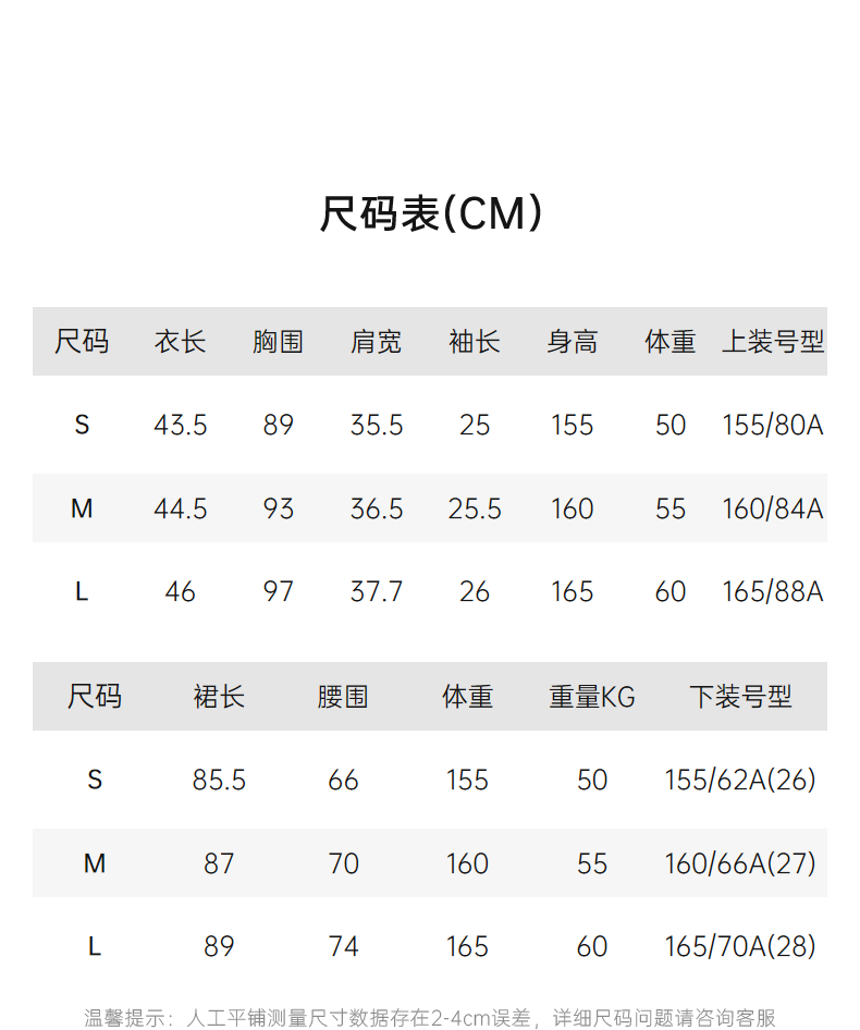 China (cm) 160-165/84-86 165-170 / 88-90 167-172 / 92-96 168-173 / 98-102 170-176 / 106-110