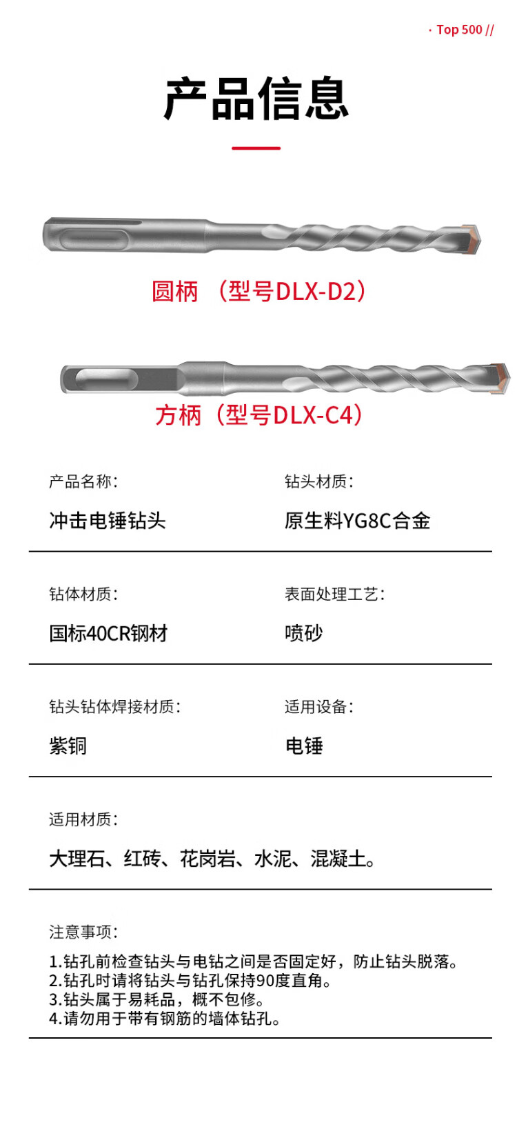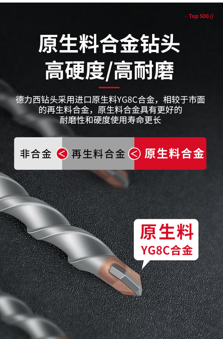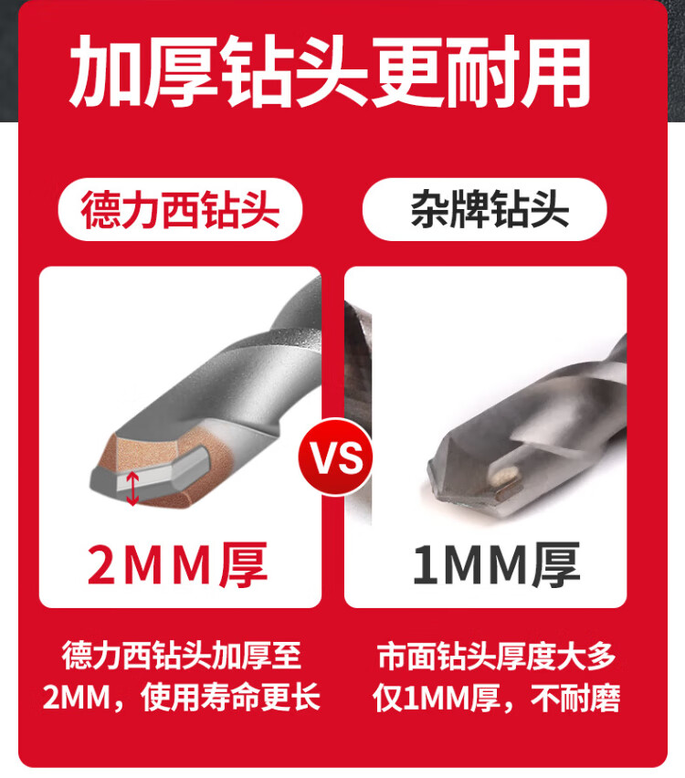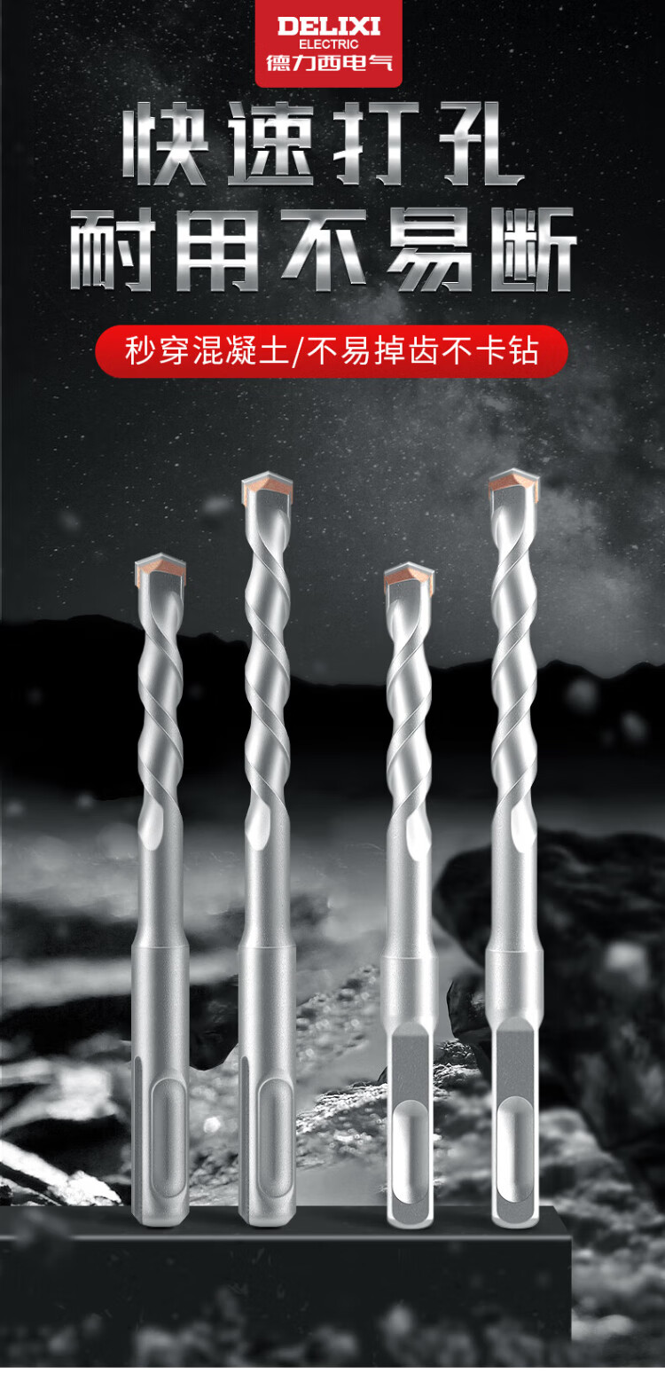 Delixi Electric Impact Drill Electric Hammer Concrete Wall Drill Tungsten Steel Alloy Wall Rotary Electric Hammer Drill Drill Bit Square Shank Marble/Granite/Concrete 6 150