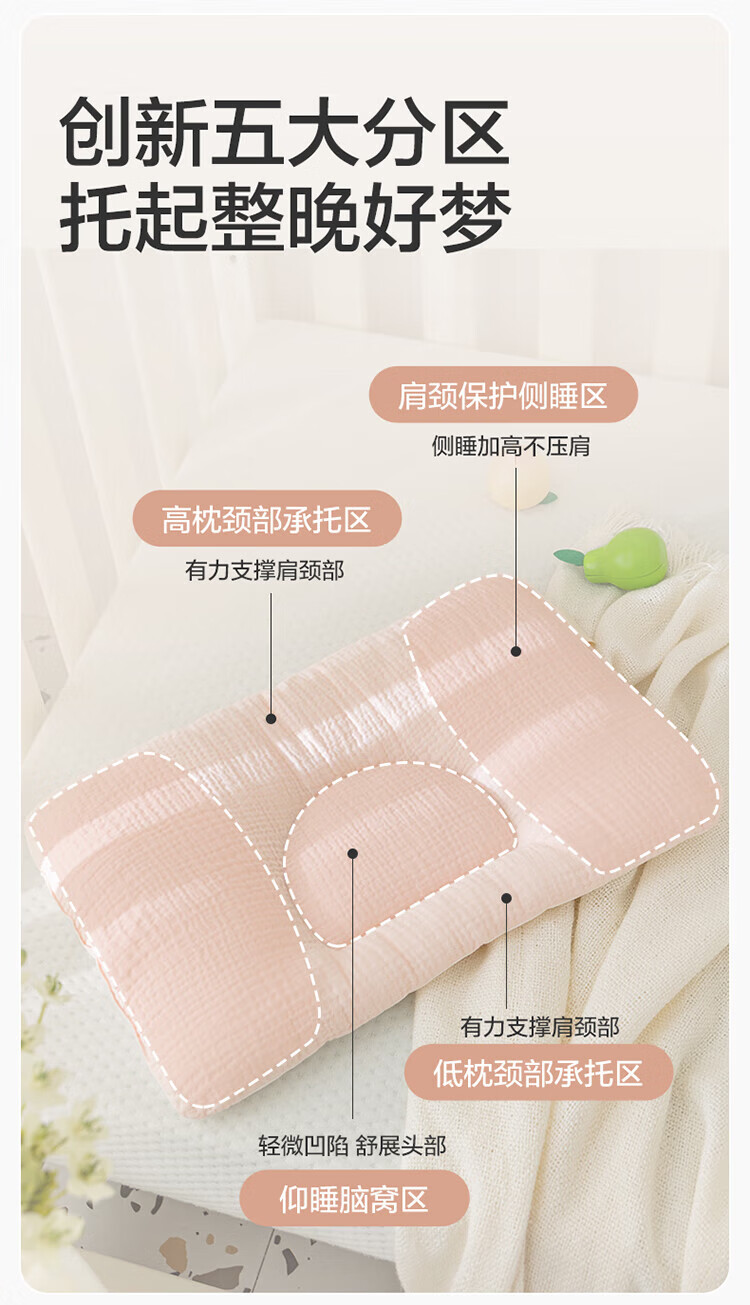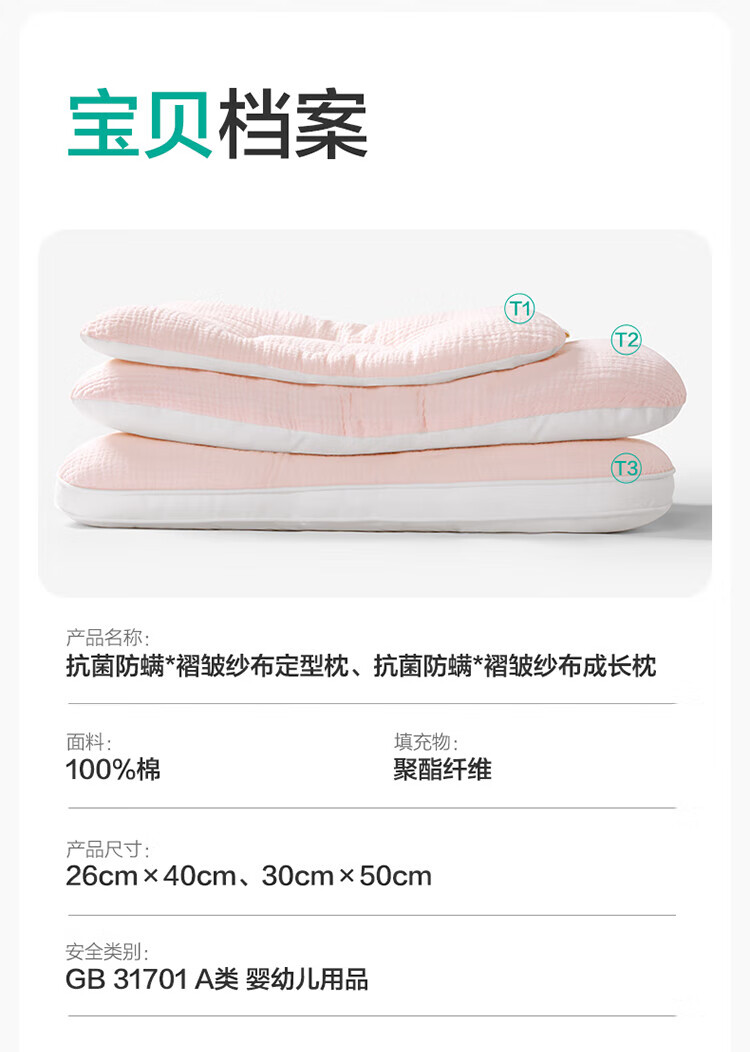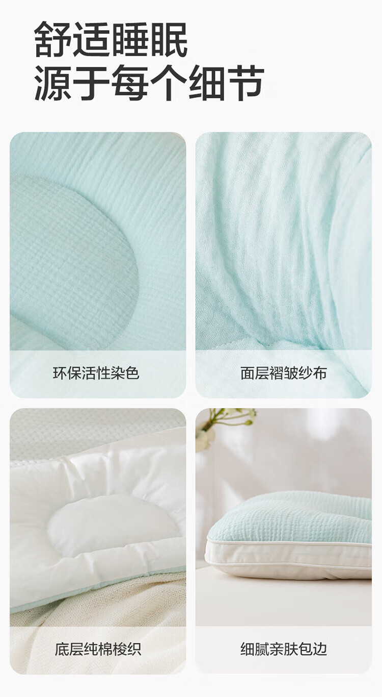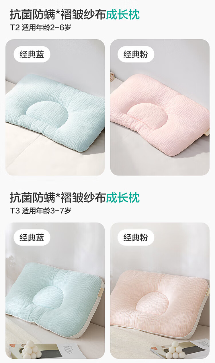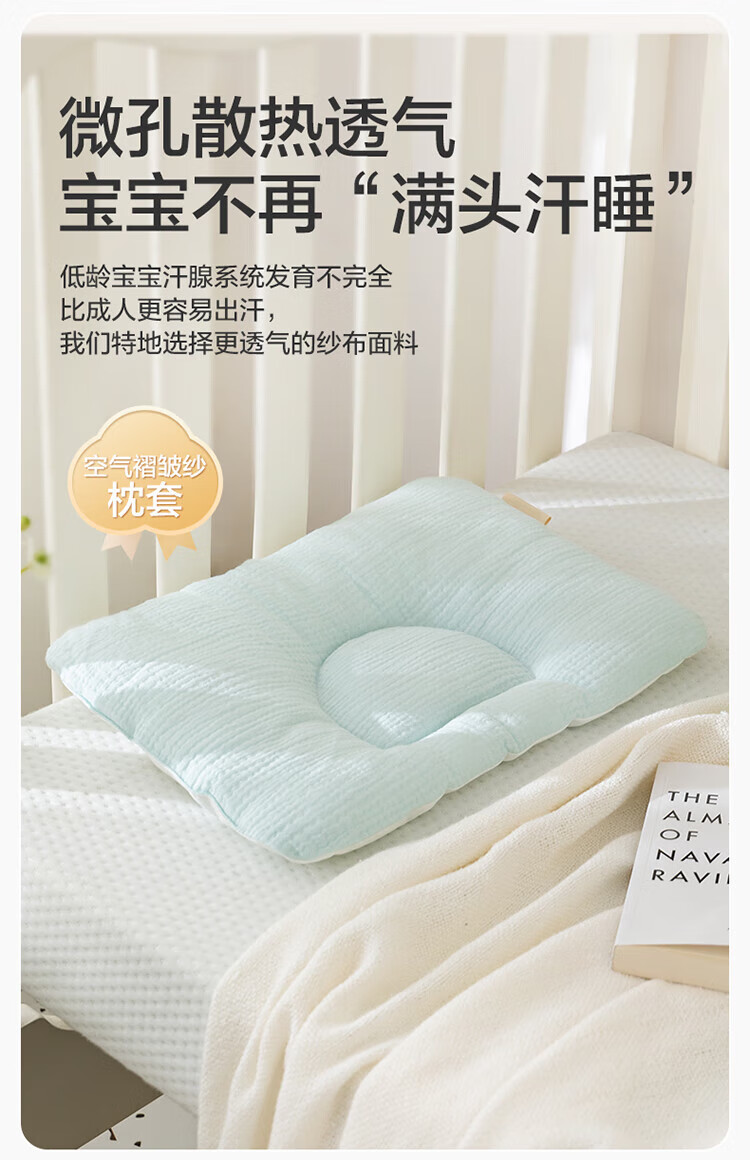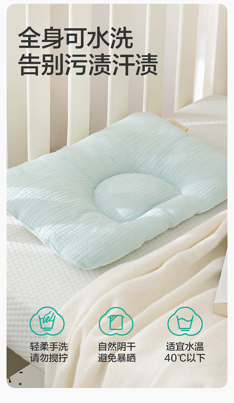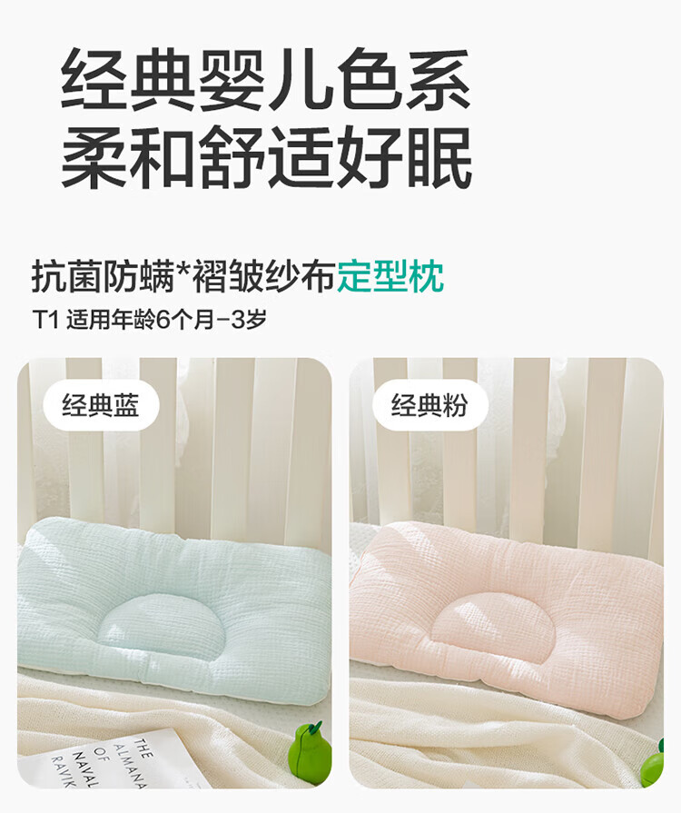 All-cotton era baby antibacterial pleated gauze shaped pillow baby pillow toddler growth pillow breathable sweat-absorbent four seasons antibacterial pleated pillow classic blue 26 40 2cm