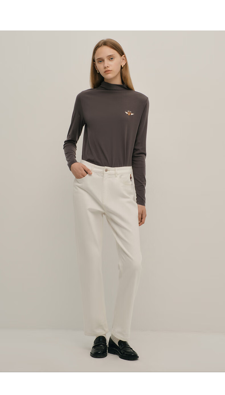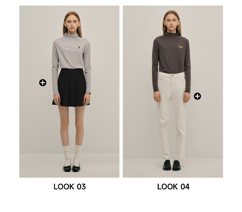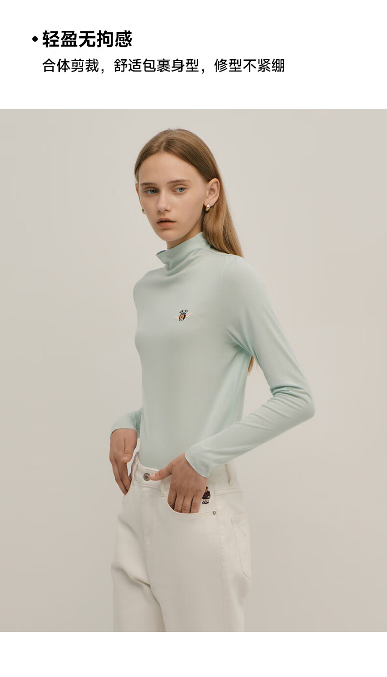 Teenie Weenie bear autumn and winter casually cut heating muscle base layer gray T-shirt white top base layer for women anthracite M (165)