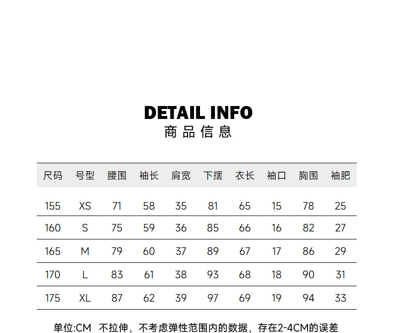 China (cm) 160-165/84-86 165-170 / 88-90 167-172 / 92-96 168-173 / 98-102 170-176 / 106-110