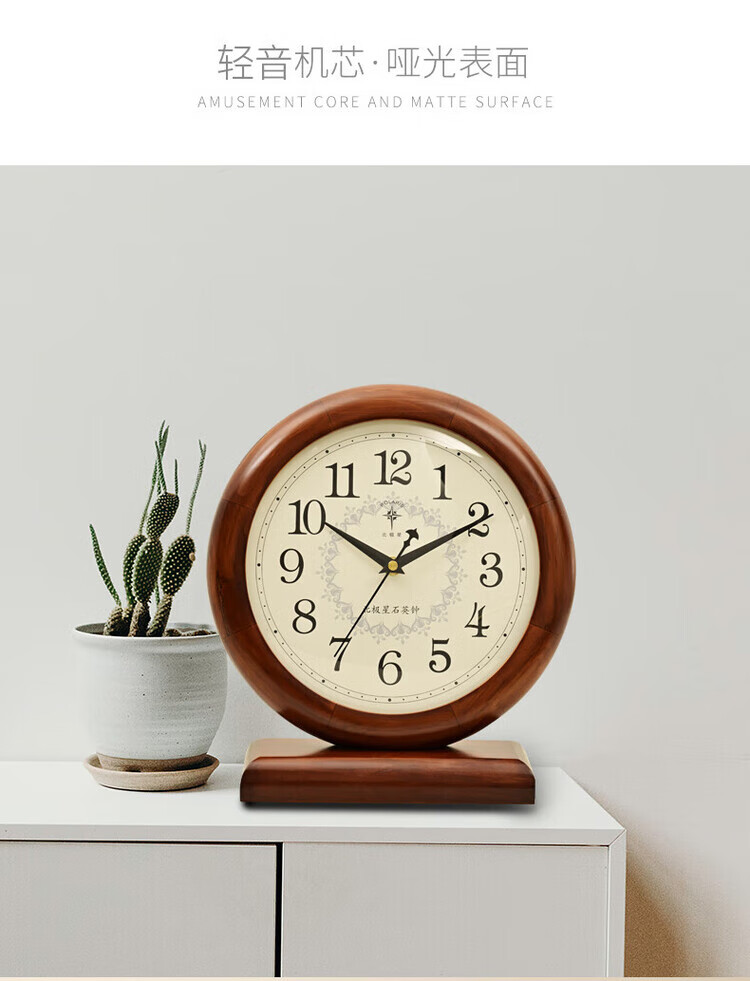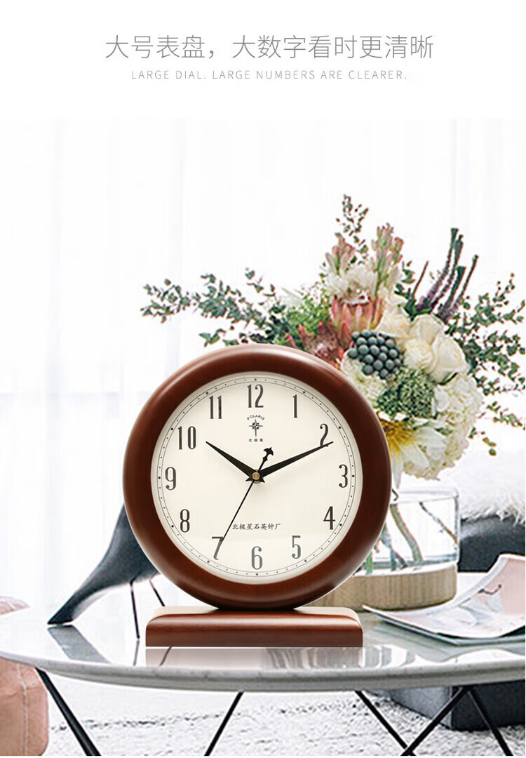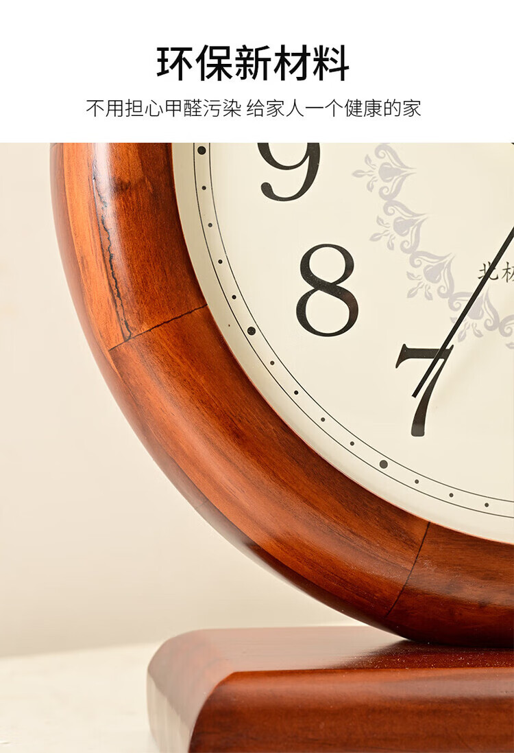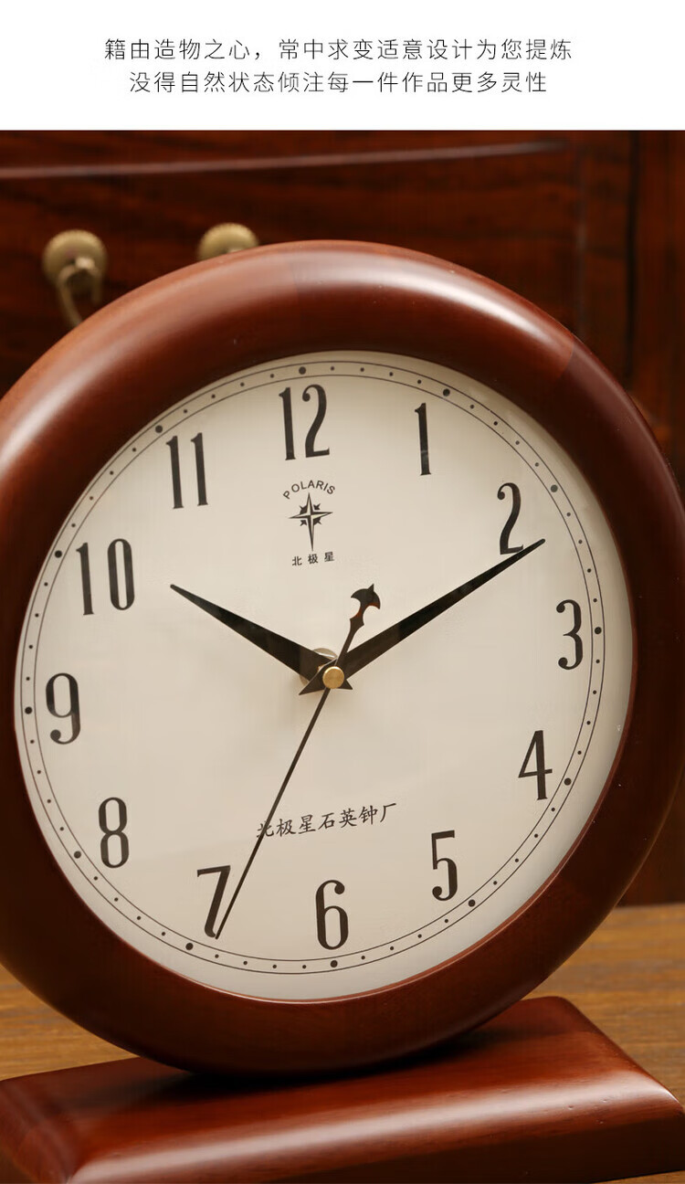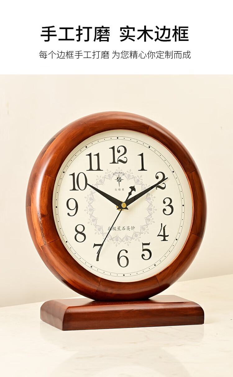 Polaris Solid Wood Table Clock Living Room Retro Desk Clock Home Clock New Chinese Large Font Quartz Clock for the Elderly T801 (Height 22.5cm Width 21.5cm)