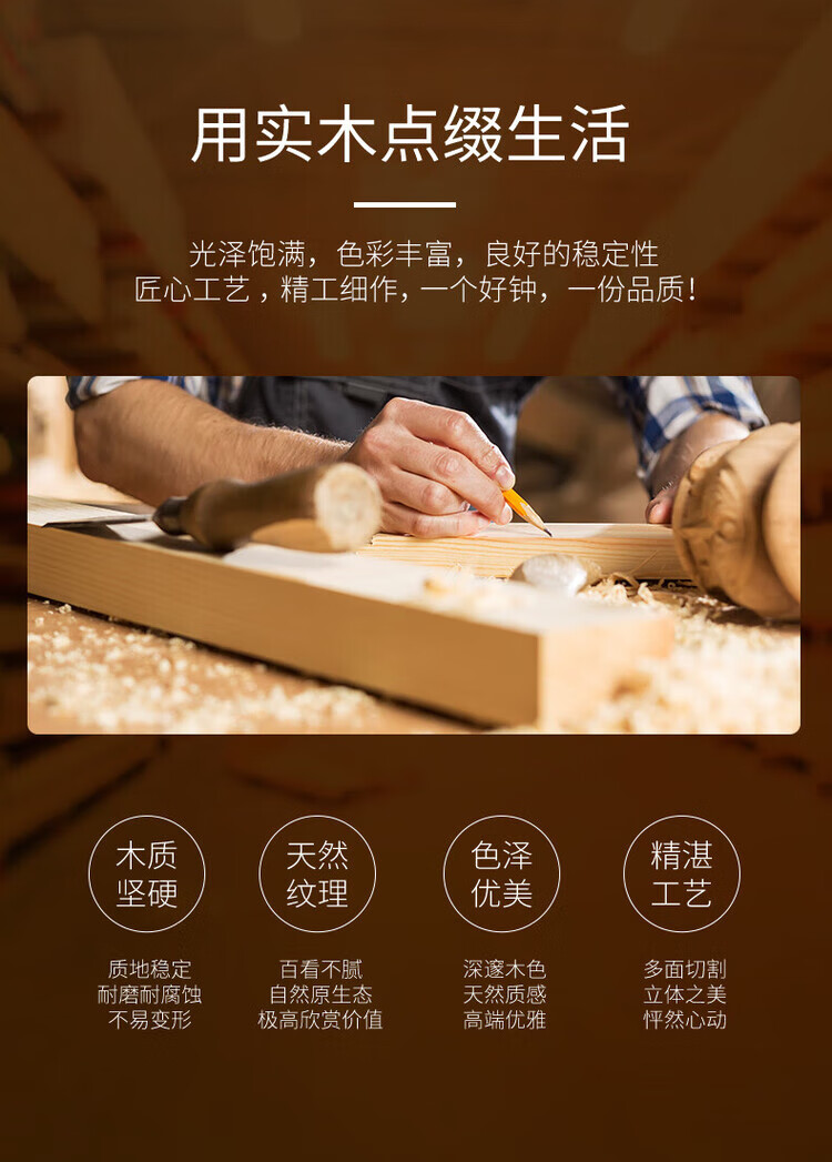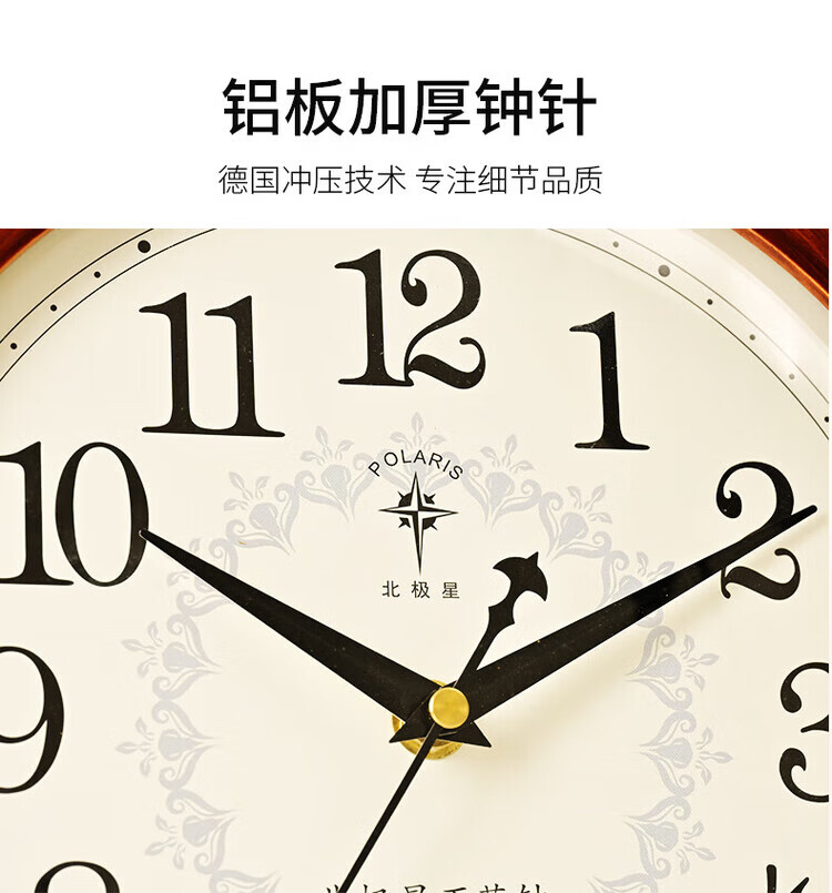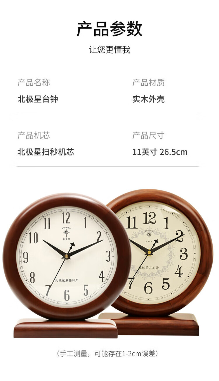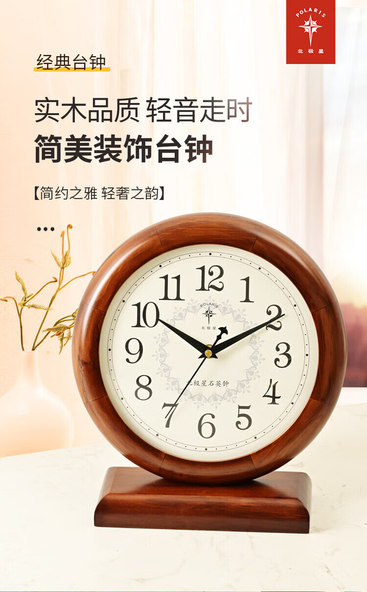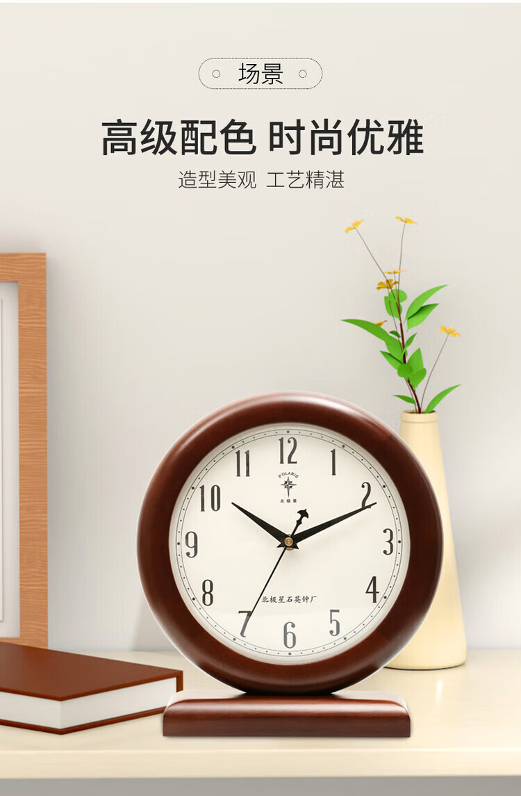 Polaris Solid Wood Table Clock Living Room Retro Desk Clock Home Clock New Chinese Large Font Quartz Clock for the Elderly T801 (Height 22.5cm Width 21.5cm)