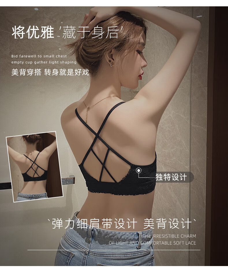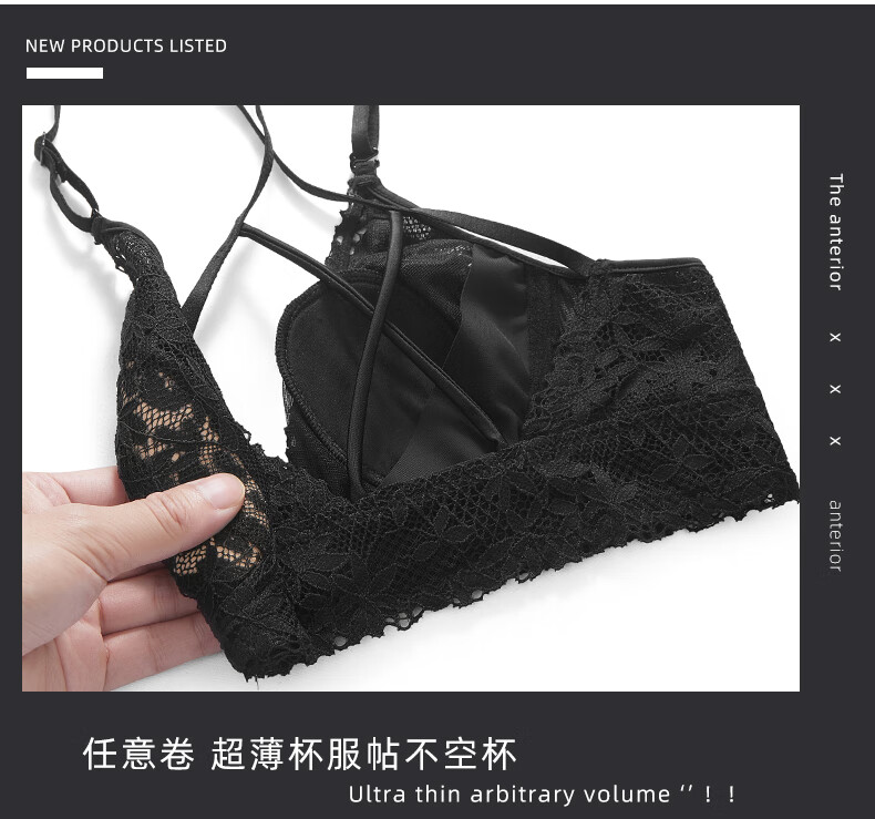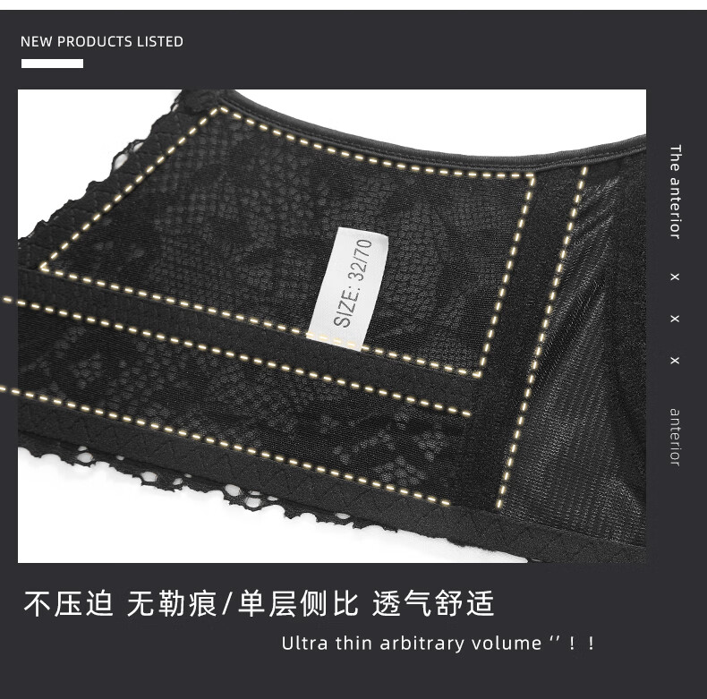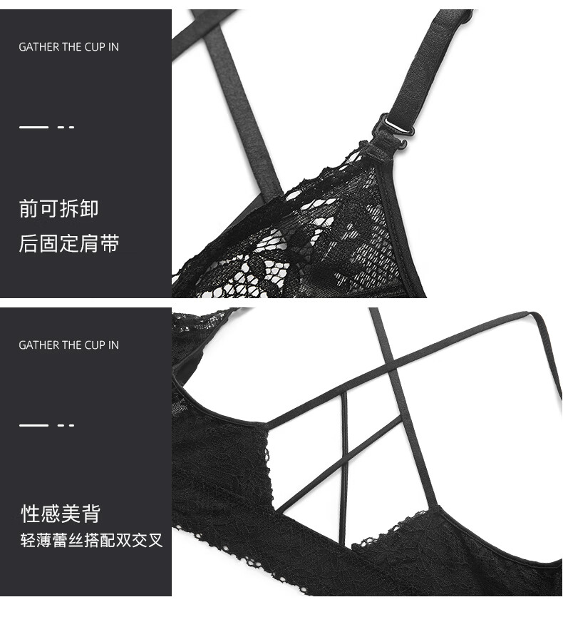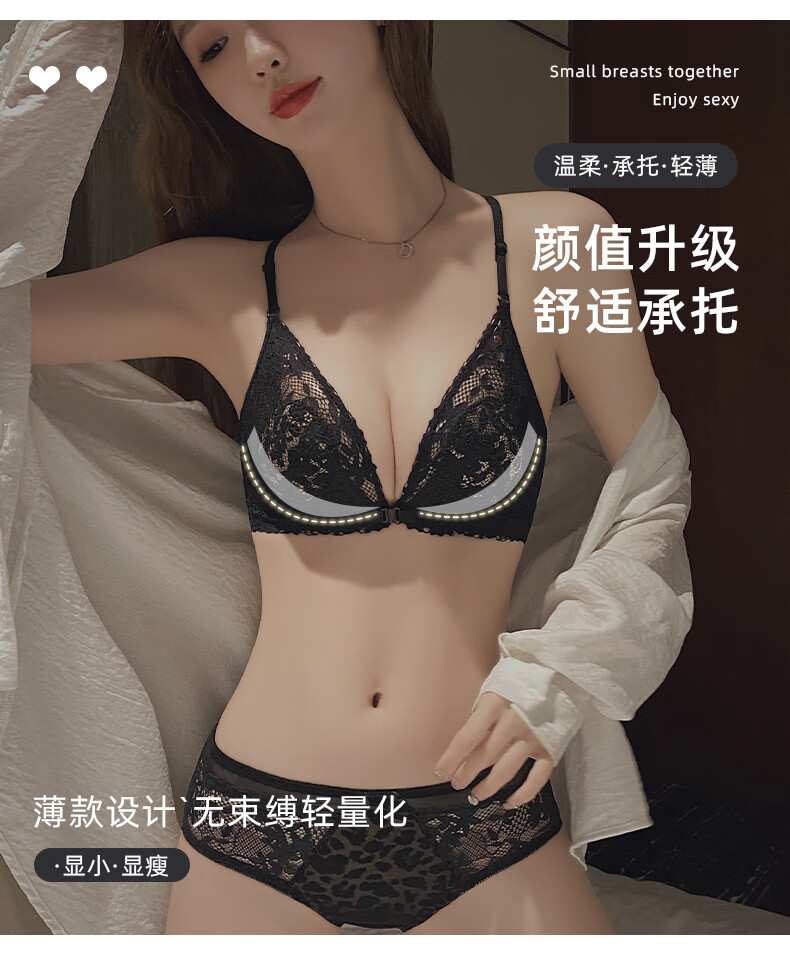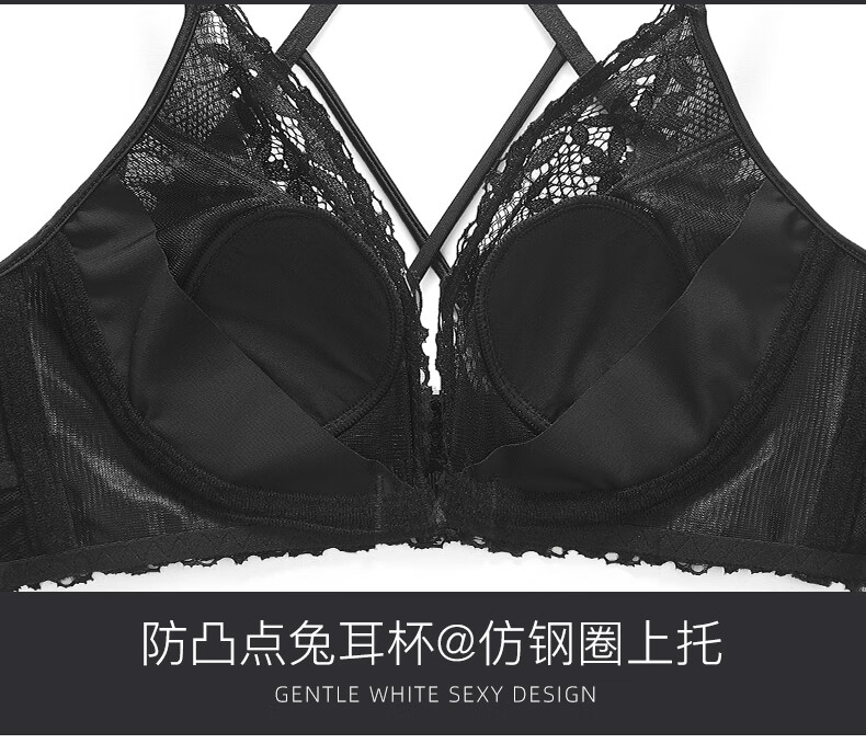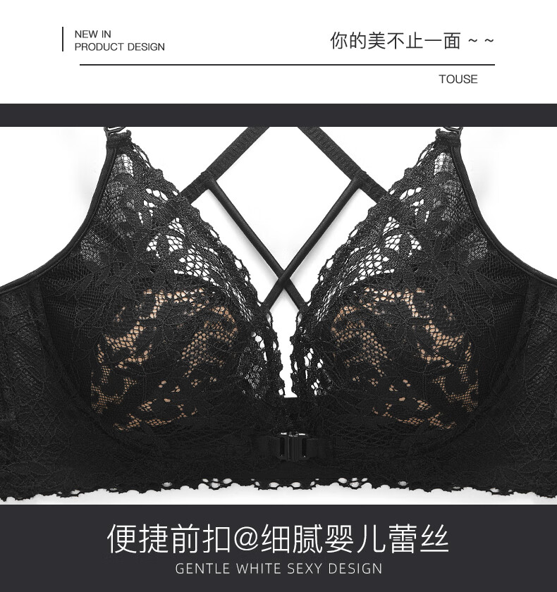 Aimu Autumn and Summer Brand Underwear Feminine Front Button Big Breast Revealing Small Push Up Side Breast Beautiful Back Lace Bra Set Black Single Underwear 40/90A (Push Up to Prevent Sagging)