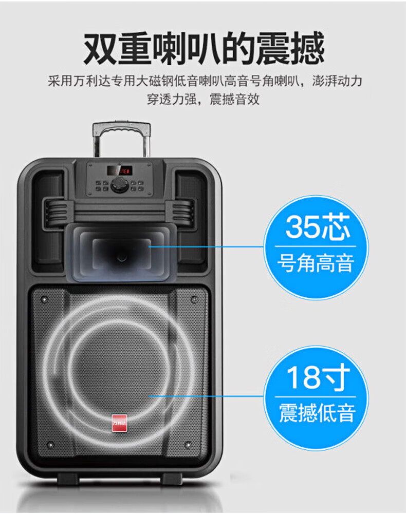 Malida 9050E Master Series Outdoor Mobile Trolley Bluetooth Speaker K-Singing Sound Card All-in-One High-Power Subwoofer Stage Audio Home Singing Square Dance Special Audio 15-inch M+9052E Dual Microphone/Flagship Edition