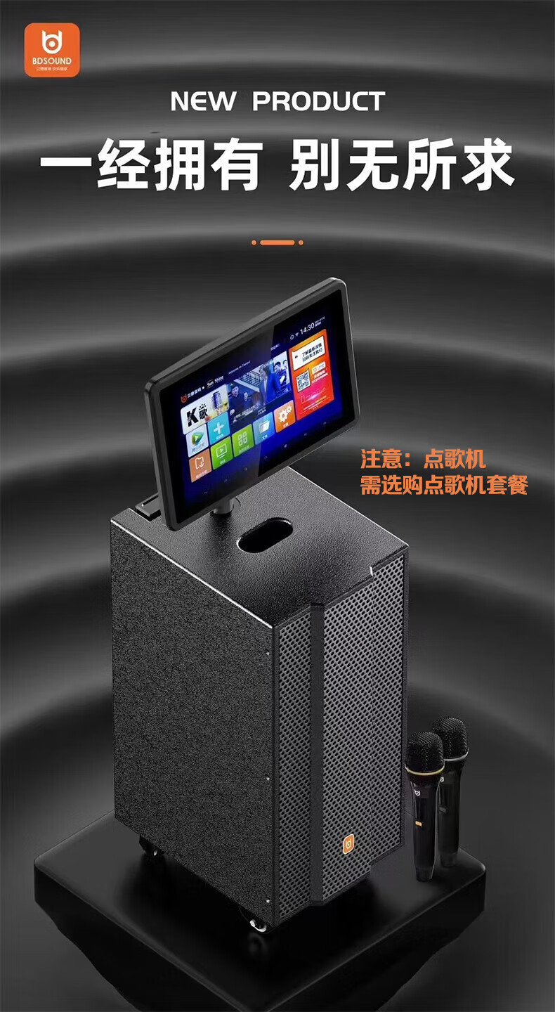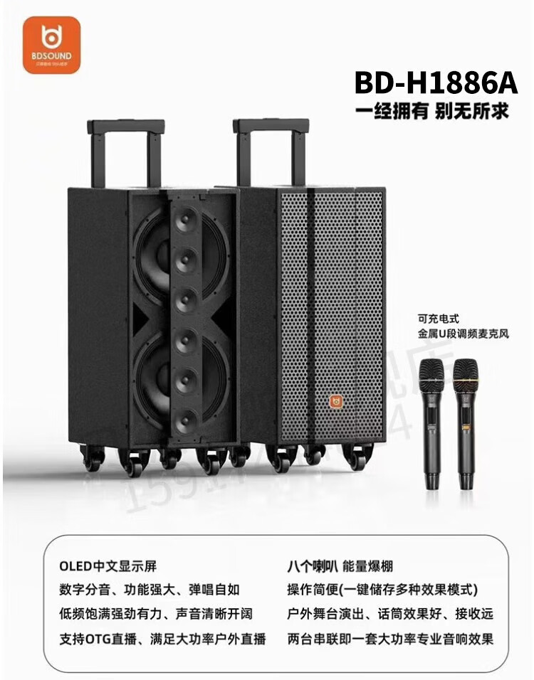 Bader H1886A outdoor karaoke audio professional Internet celebrity live broadcast sound card outdoor portable mobile trolley Bluetooth speaker equipment singing instrument playing square dance high power H1886A dual microphone + 21-inch karaoke machine