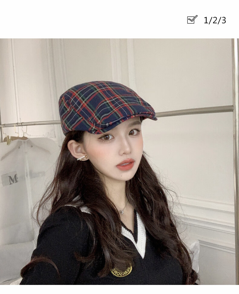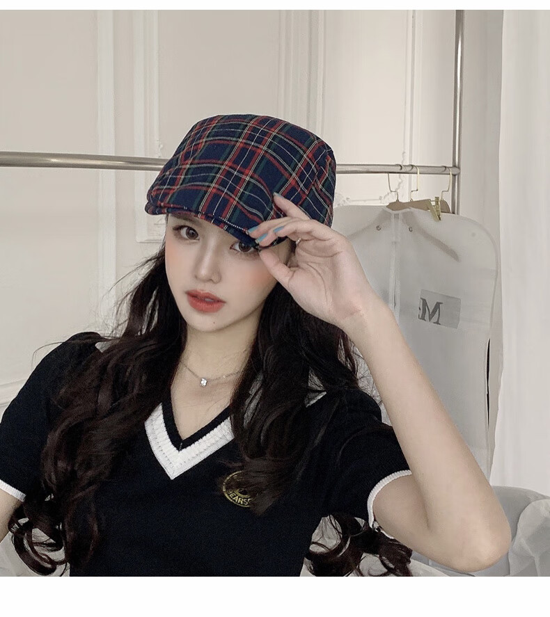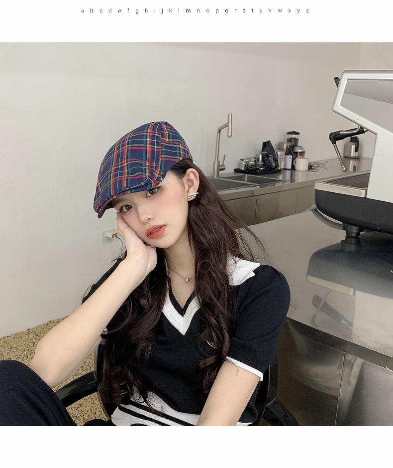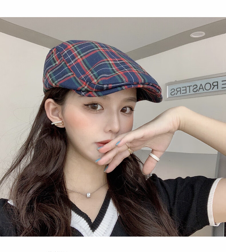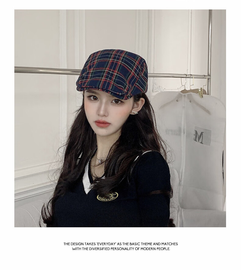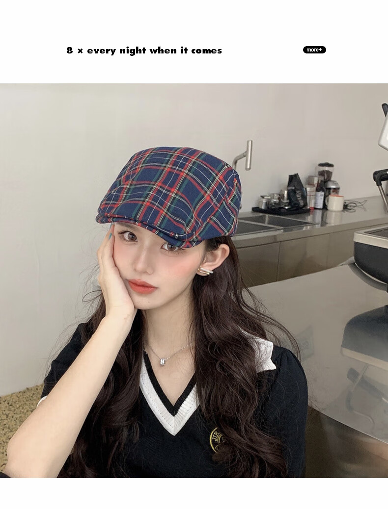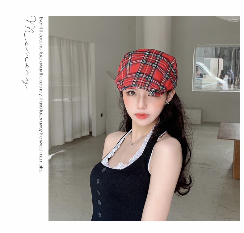 Lin Zhongxun Red Beret Summer Women's Plaid Hat 2024 New Thin British Retro Progressive Hat Red One Size (55-58cm)