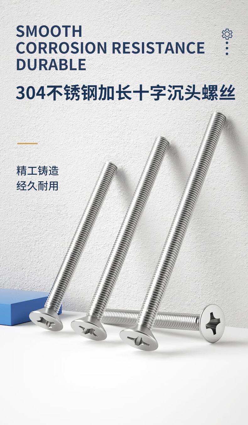Guwanji 304 stainless steel extended extra long screw cross flat head screw extra long countersunk head screw machine wire bolt screw M5x80 (5 pieces)