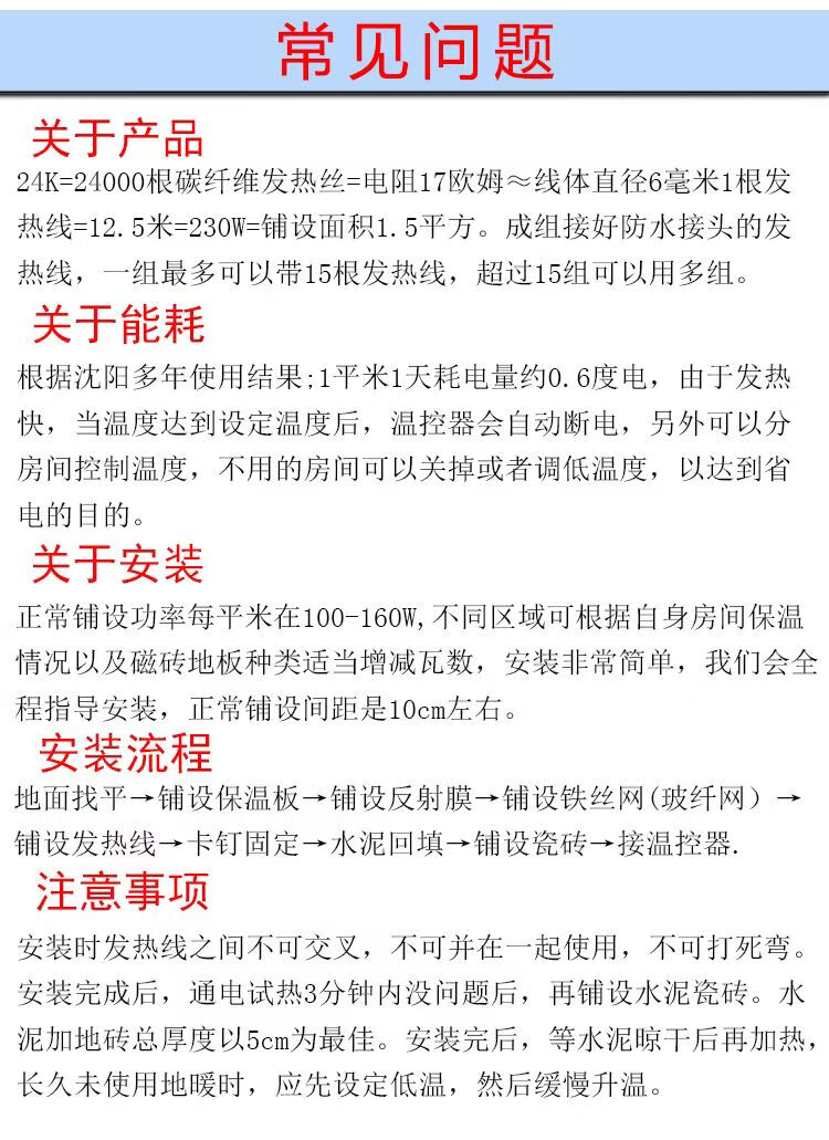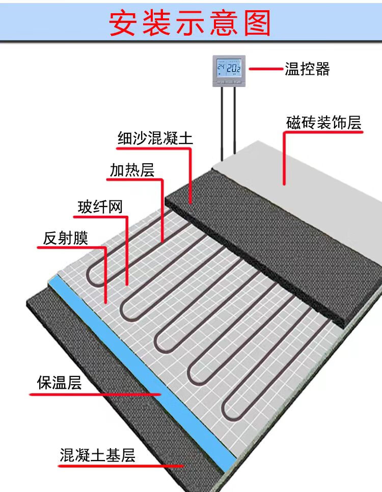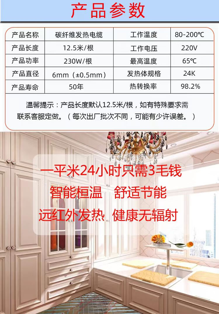 Kohlefaser-Heizkabel, elektrische Fußbodenheizung für den Haushalt, elektrische Fußbodenheizung, Graphen-Heizkabel, Trocknen, Zucht, Schweiß, Dampfen, Heizung, verdeckter Thermostat