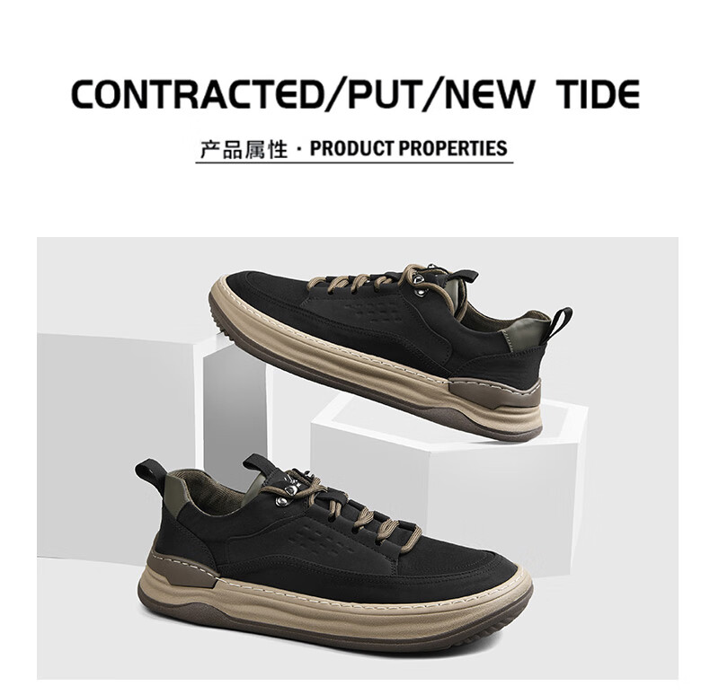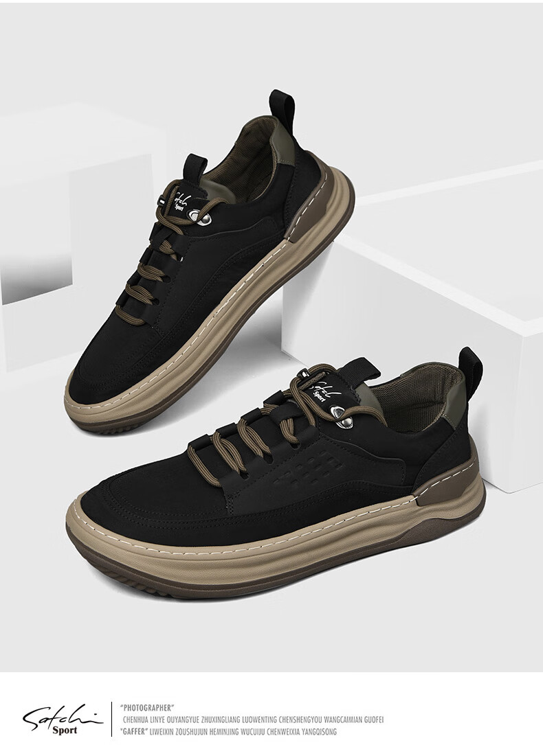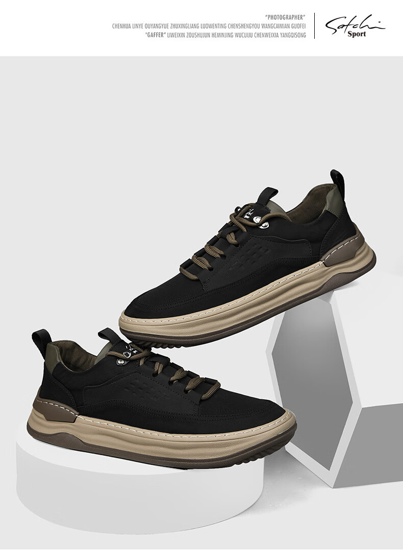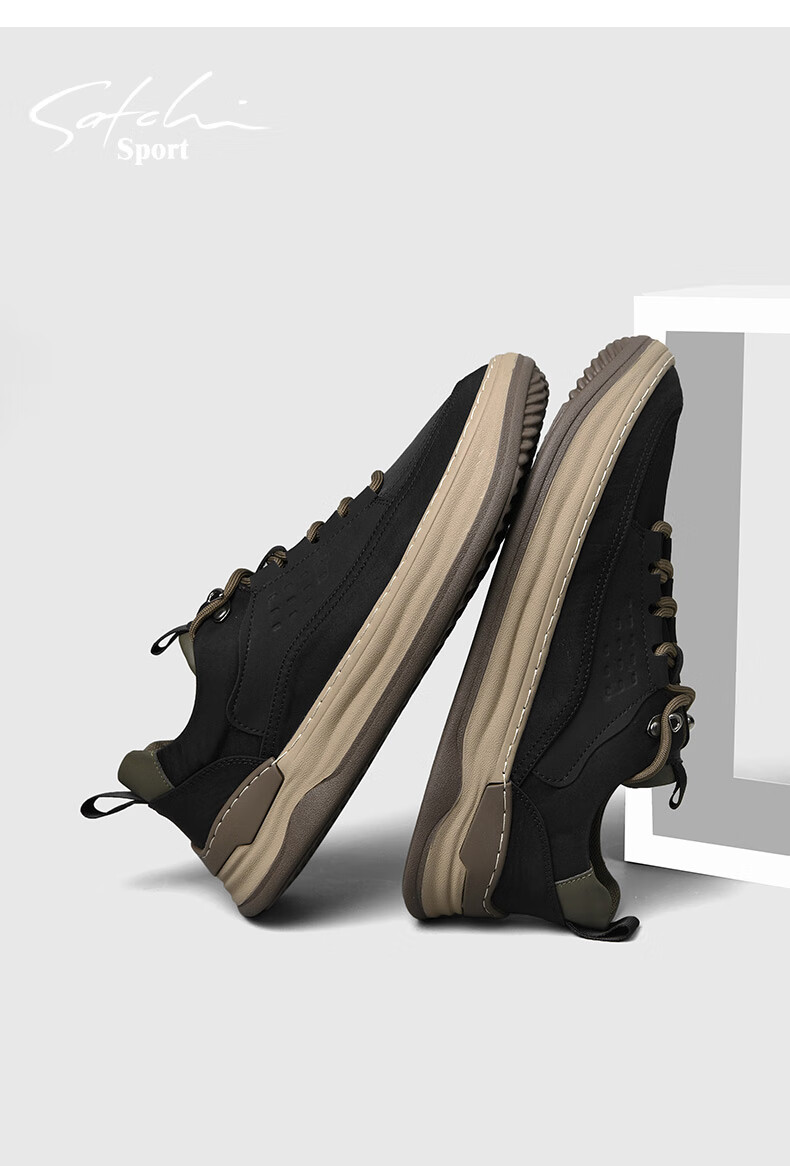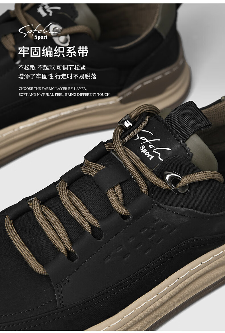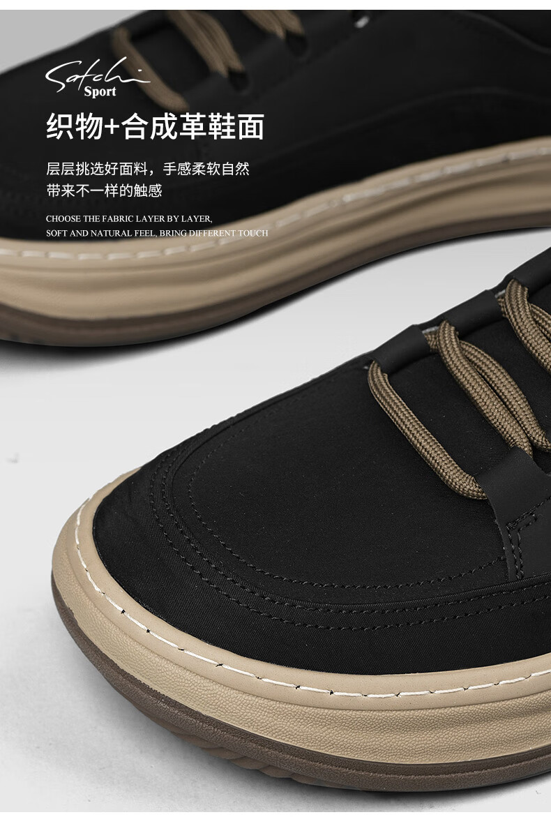 SATCHI men's shoes spring and autumn new breathable fashion business casual shoes soft sole sports men's sneakers trendy cloth shoes black 40 leather shoe size