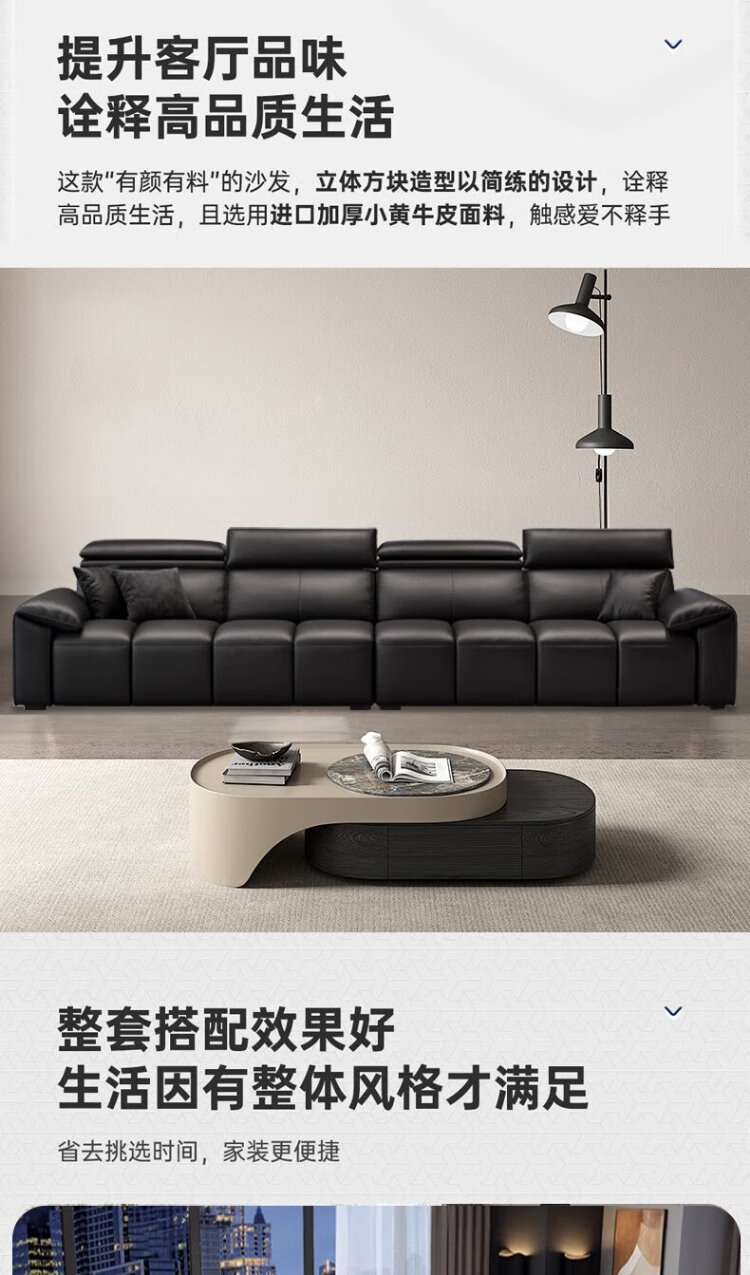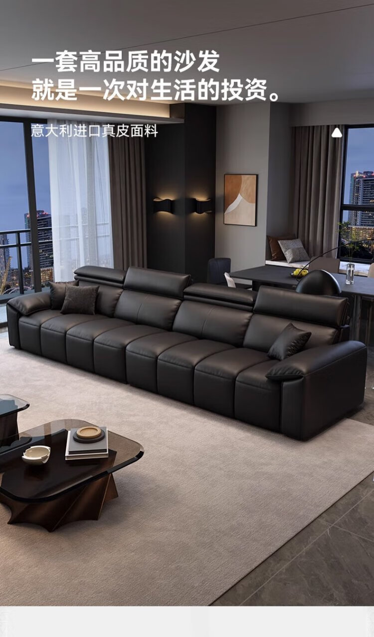 YouMingJia Sofa Living Room Italian Minimalist Style Leather Sofa Small Apartment Modern Simple Straight Row Sofa Living Room 2026 New 3.2m Five-seater Pine Wood Visible Frame Deluxe Edition Thickened 2.8mm First-layer Cowhide + Latex Cushions