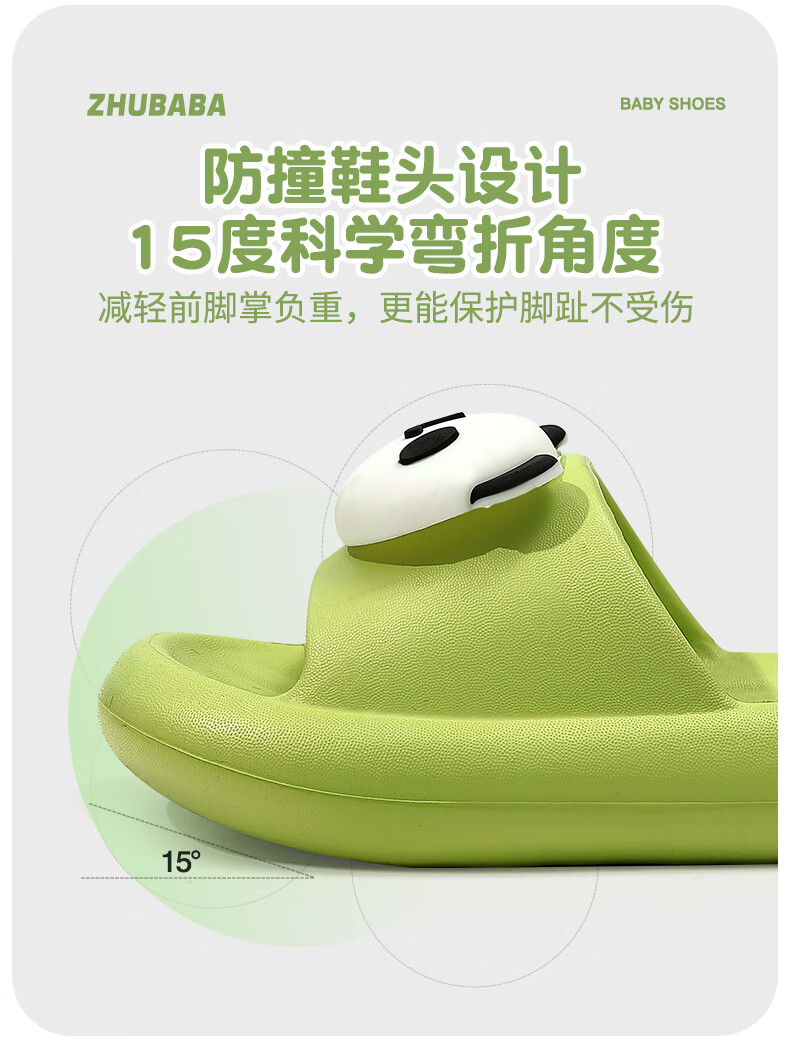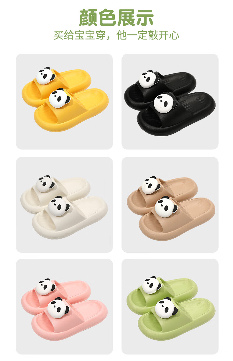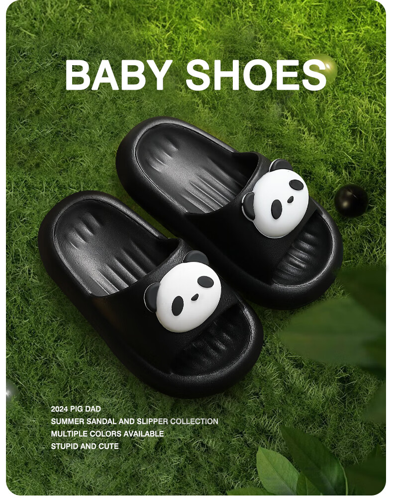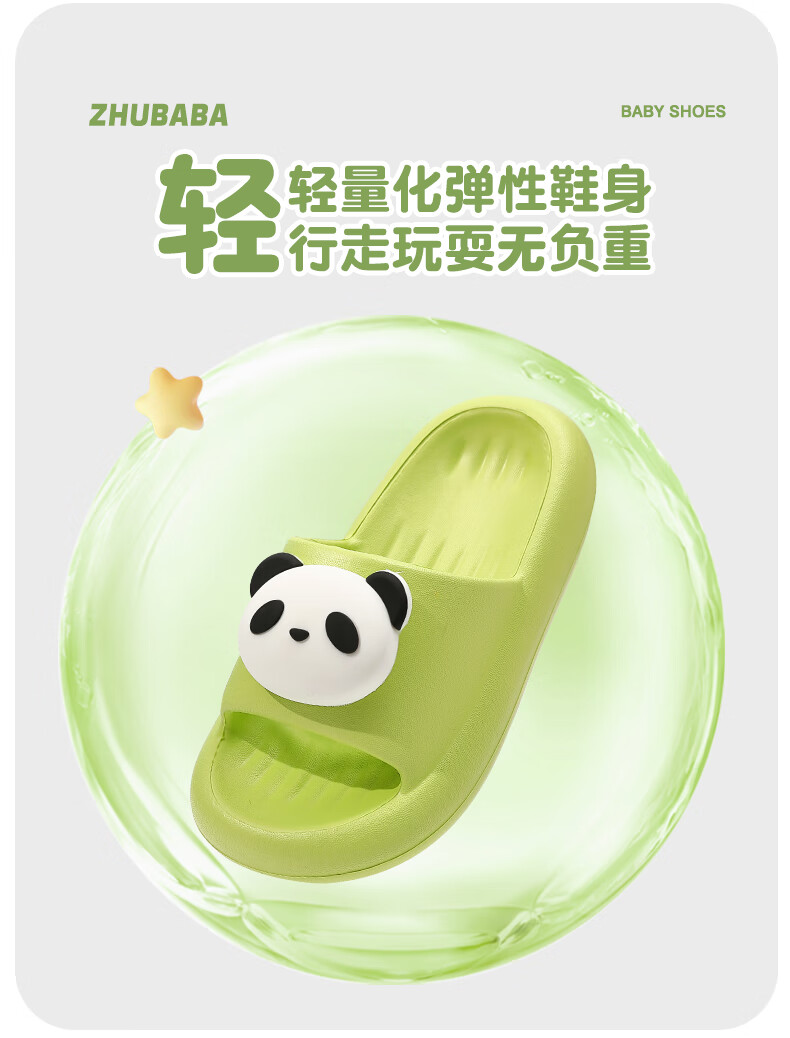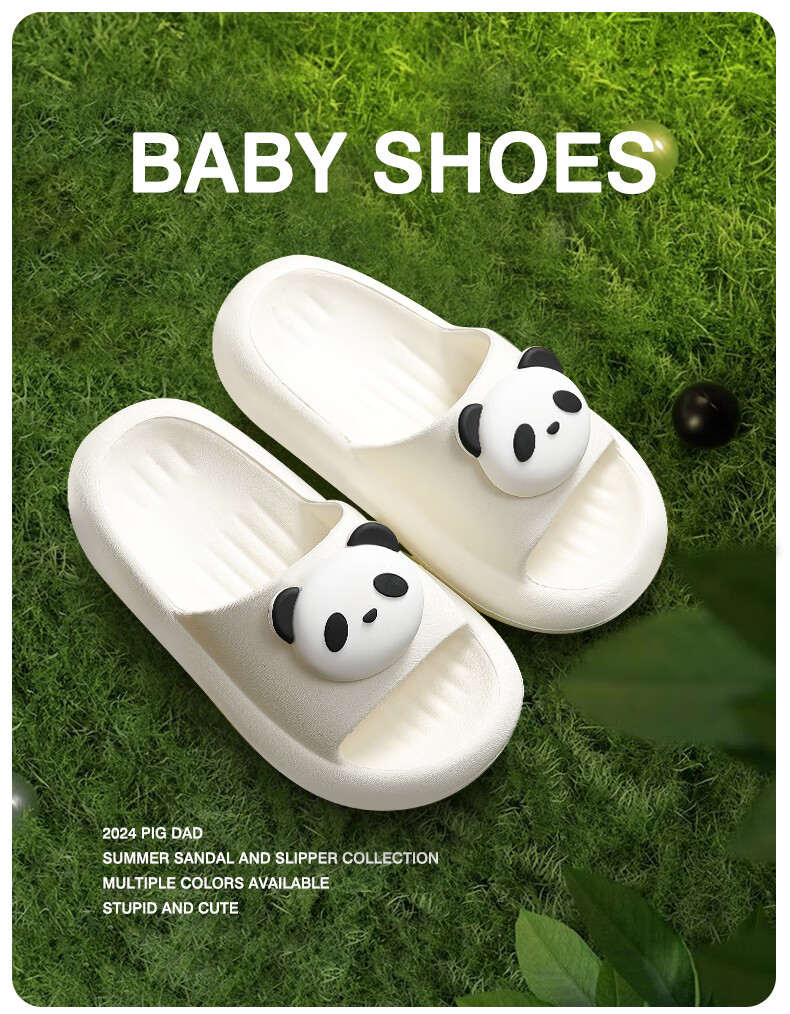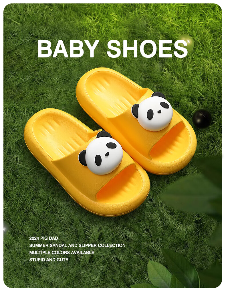 Pig Daddy Children's Slippers Summer 2025 New Boys Indoor Home Bath Non-Slip Girls Baby Parent-Child Slippers Green Panda 16 Inner Length 16cm Foot Length 15cm