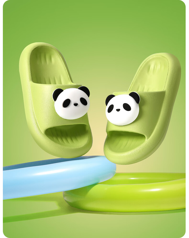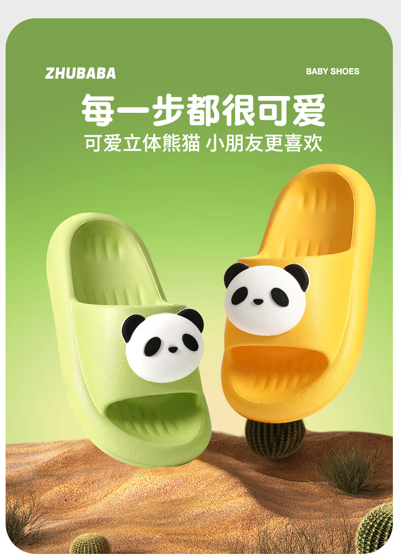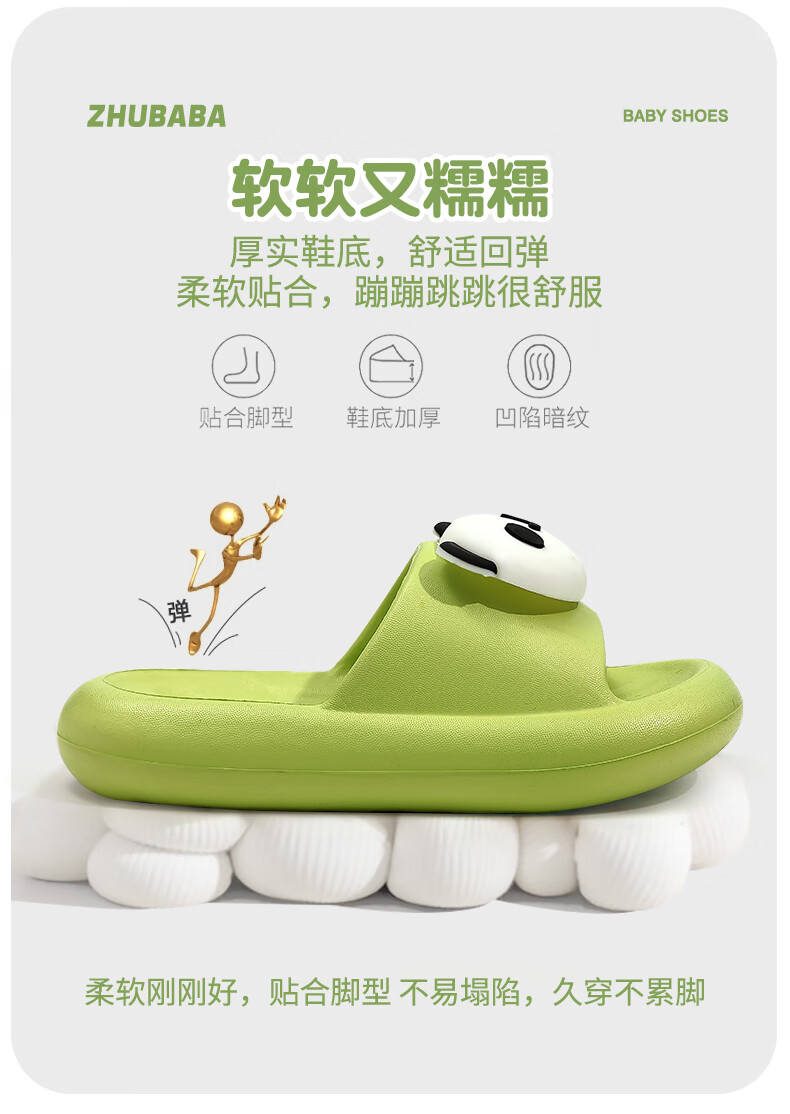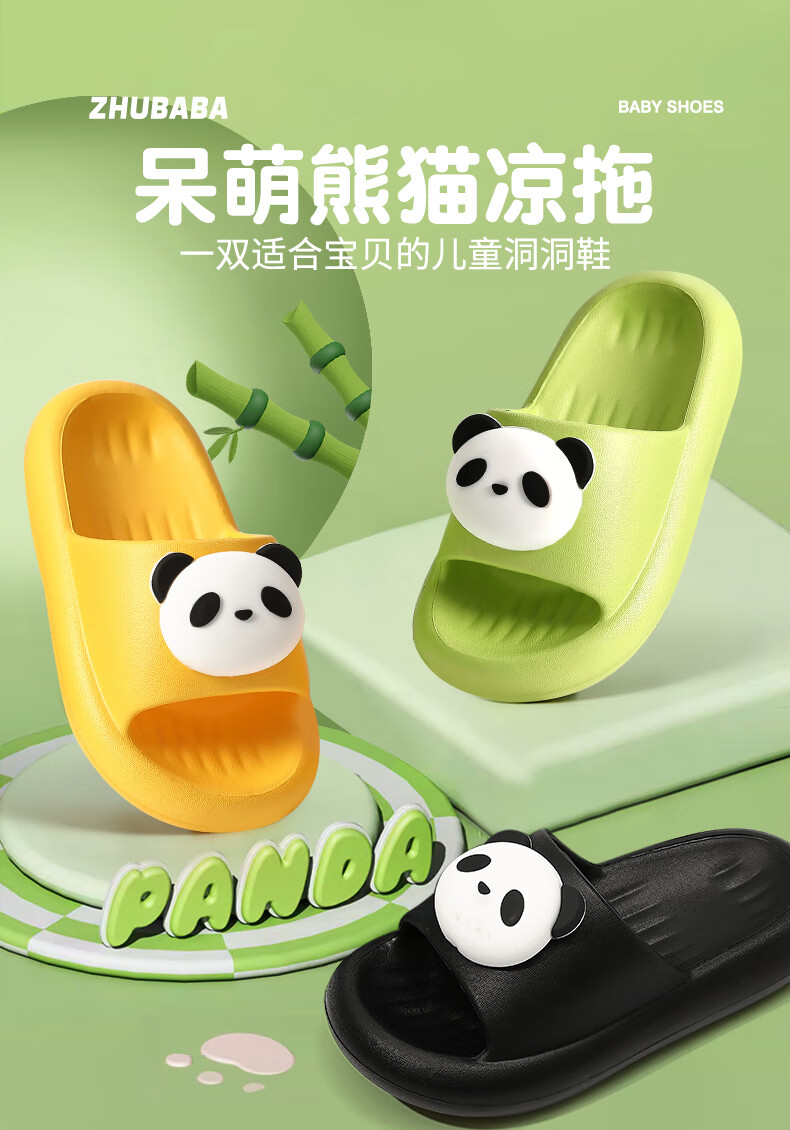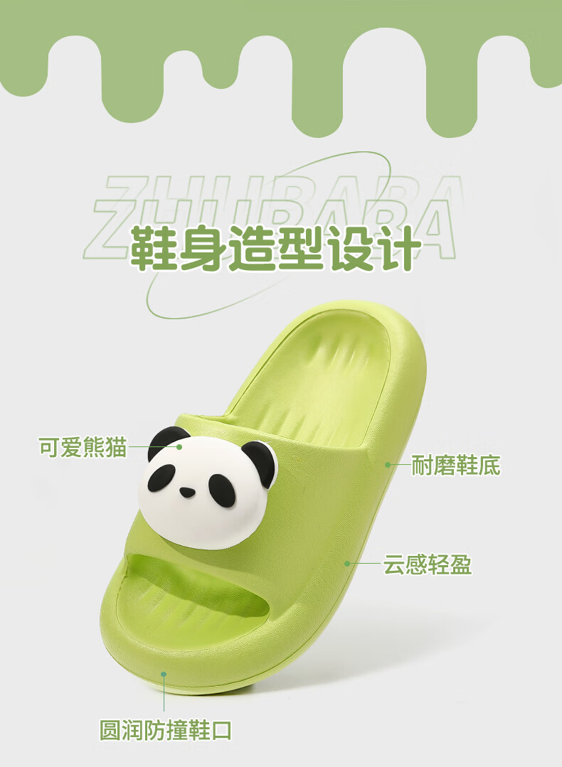 Pig Daddy Children's Slippers Summer 2025 New Boys Indoor Home Bath Non-Slip Girls Baby Parent-Child Slippers Green Panda 16 Inner Length 16cm Foot Length 15cm