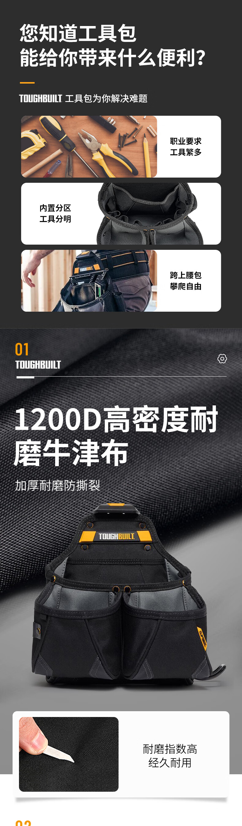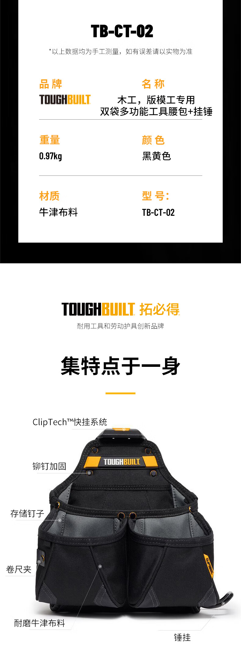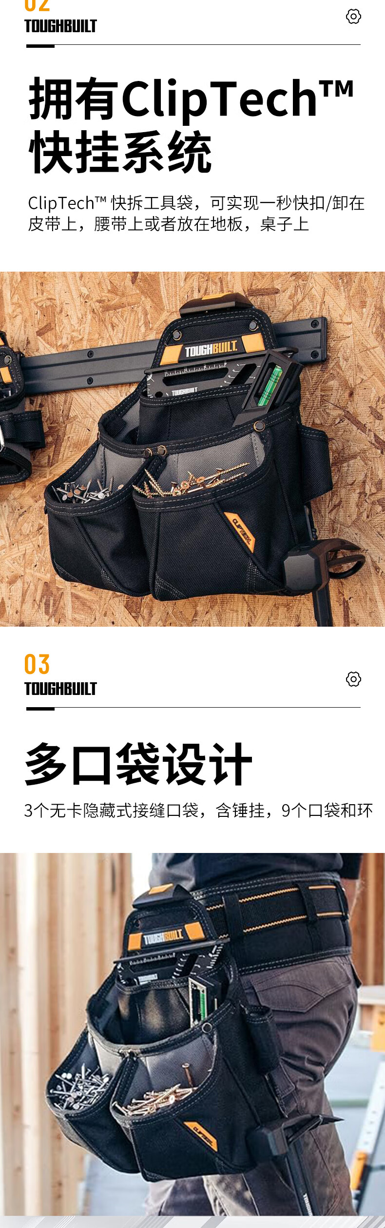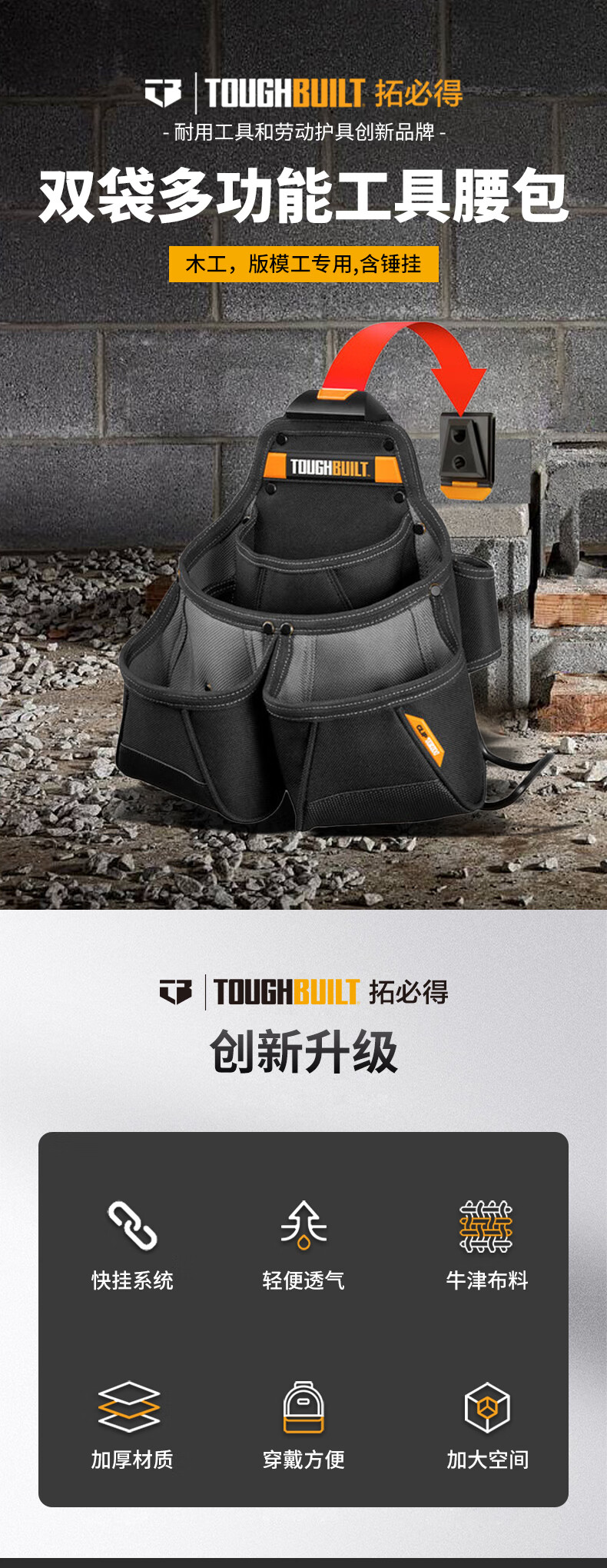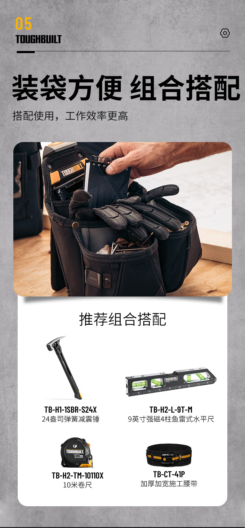 TOUGHBUILT woodworking nail pocket waist hanging tool bag multi-functional decoration installation large pocket storage weak current tool waist bag TB-CT-02/including hammer hanging ring