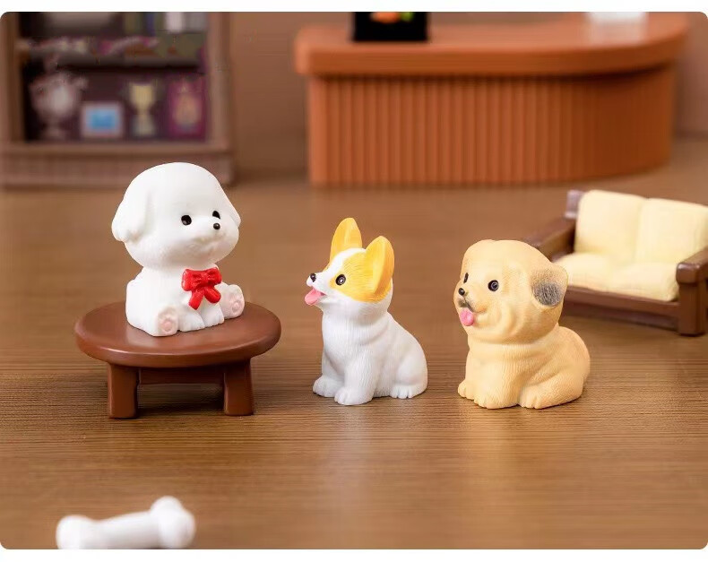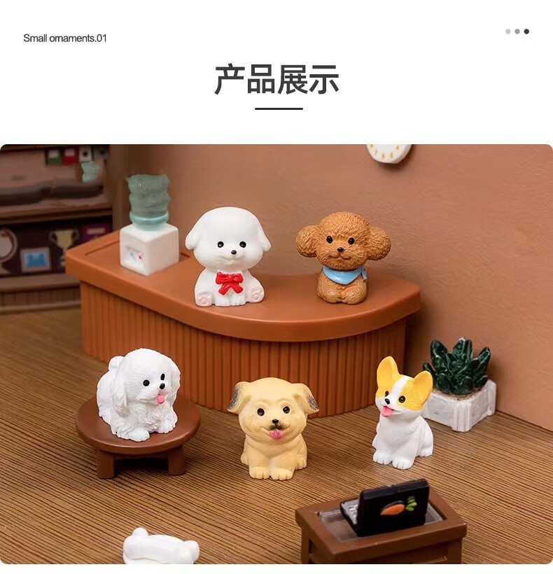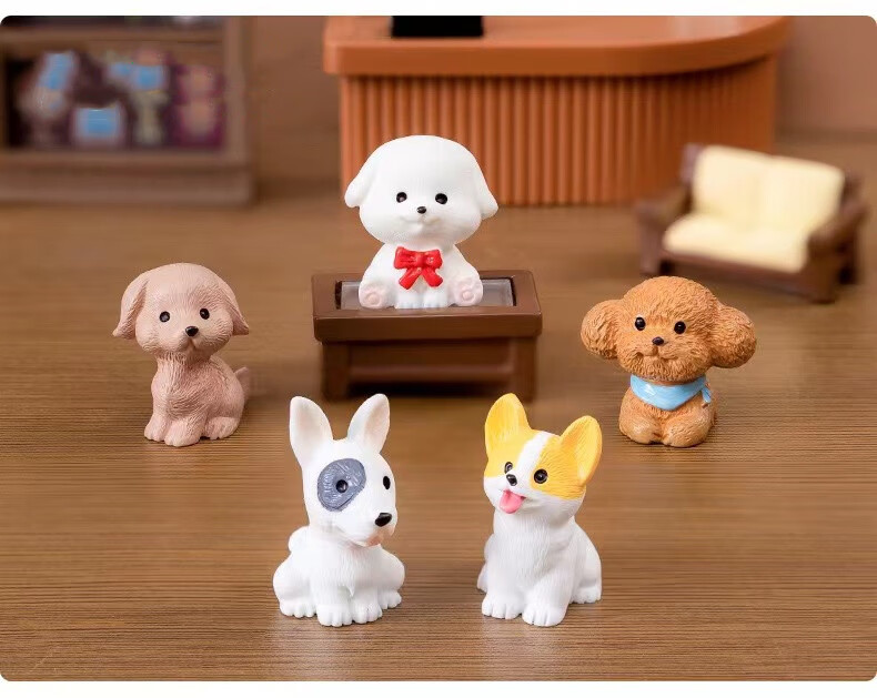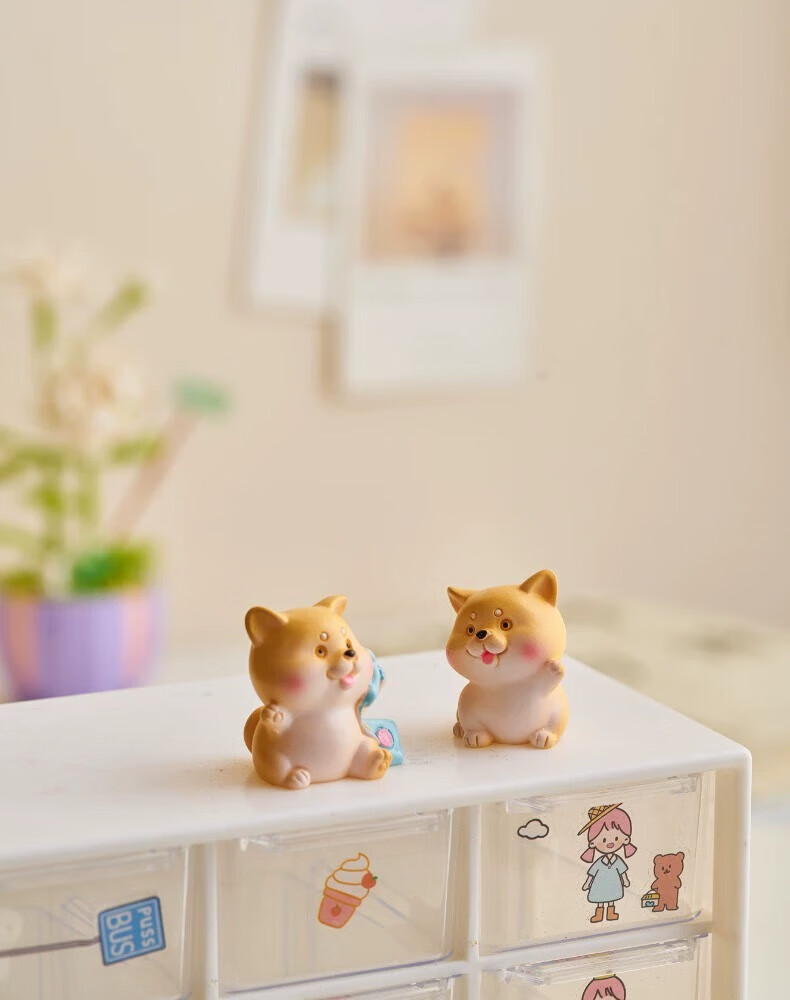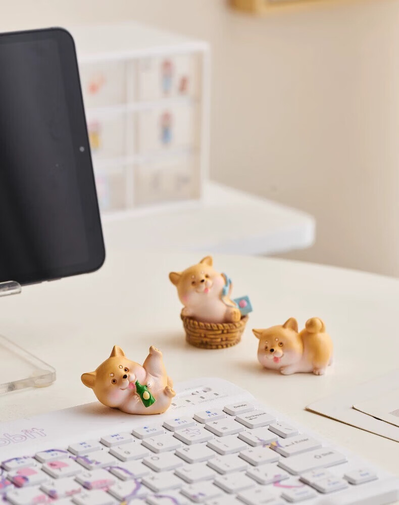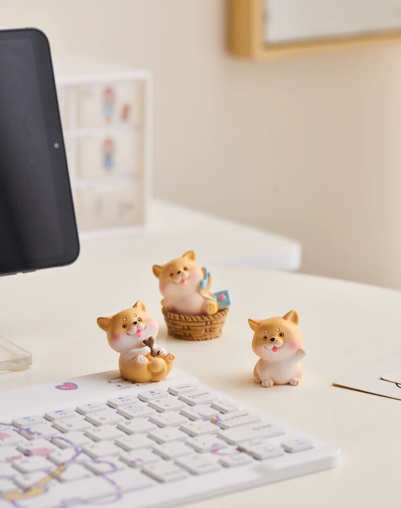 Cute cartoon Shiba Inu desktop ornaments mini puppies and kittens simulated animal model toys micro landscape decorations 5 Shiba Inu combination + small basket