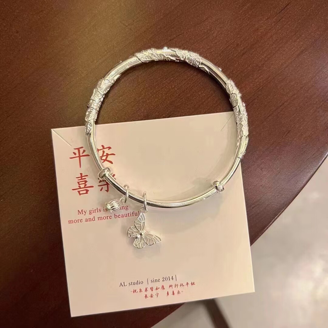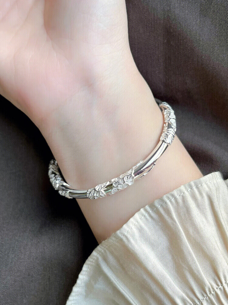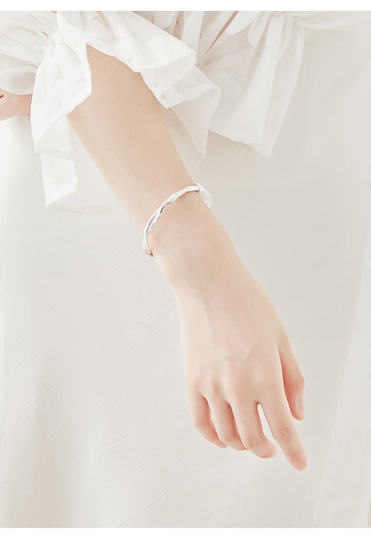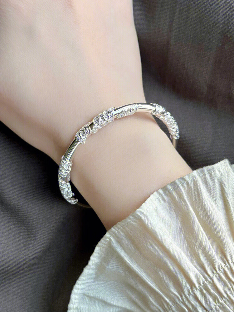 Laohuangxiang Pure Silver 999 Blossom Silver Bracelet Women's Solid Bracelet Women's Bracelet Silver Jewelry for Birthday Gifts Möbius Band Gift Box + Certificate