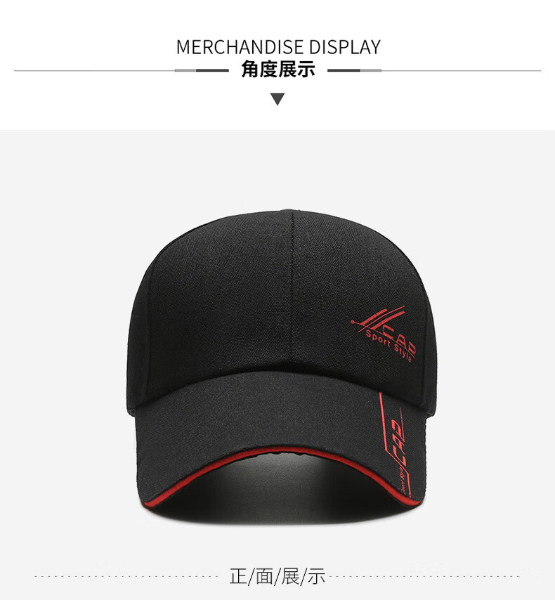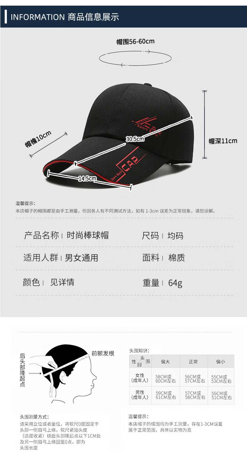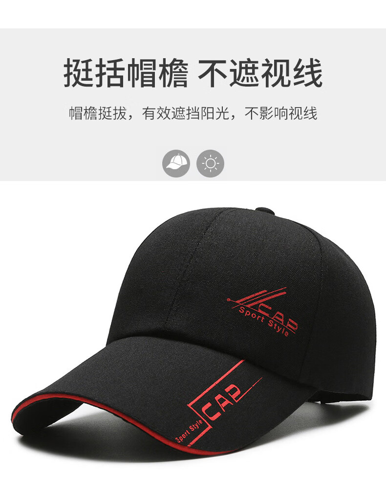 Baseball cap outdoor sun protection sun casual fishing hat sunshade summer men's peaked cap black 56
