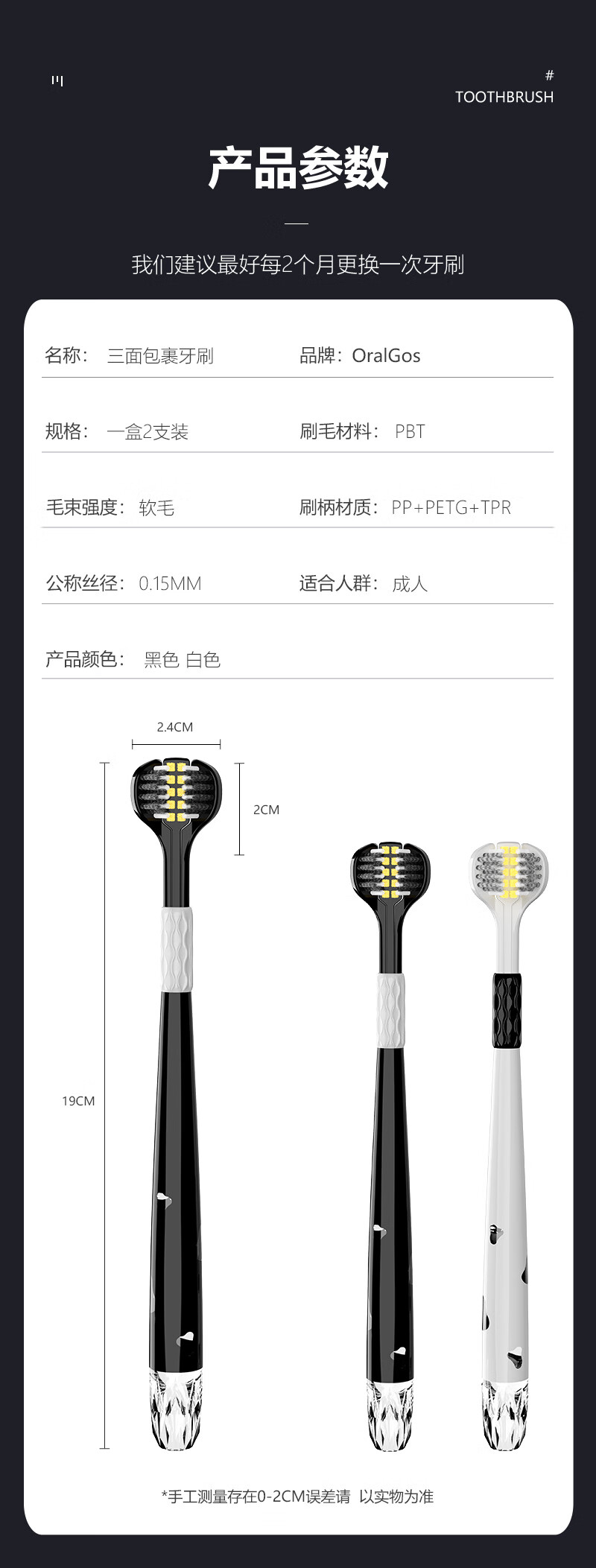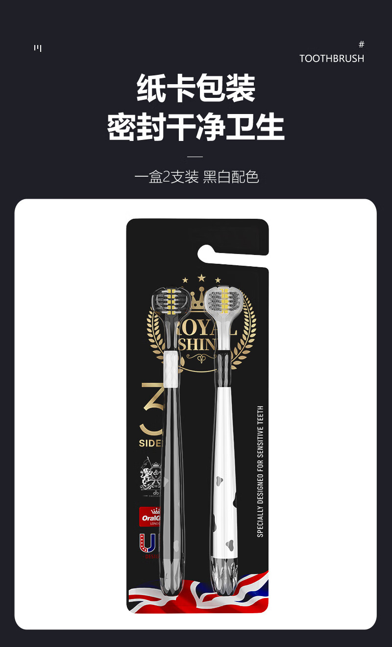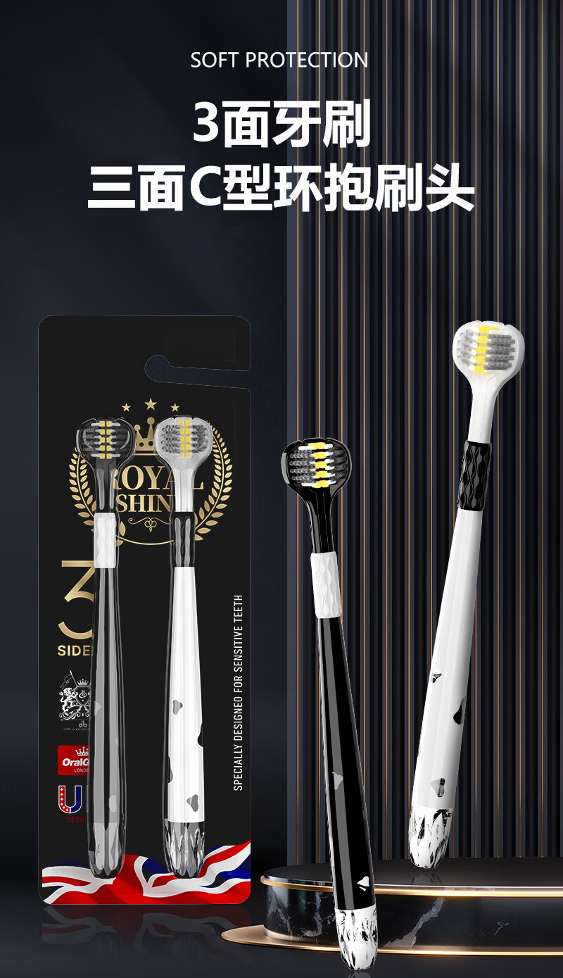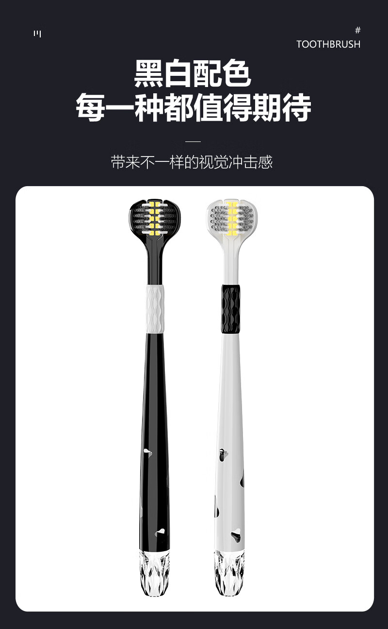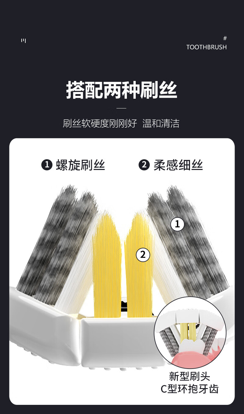 INNOCCY adult medium hair three-sided toothbrush three-sided brush head cleaning oral spiral hair men and women universal wrapped curved brush three-sided toothbrush 1 box 2 pieces
