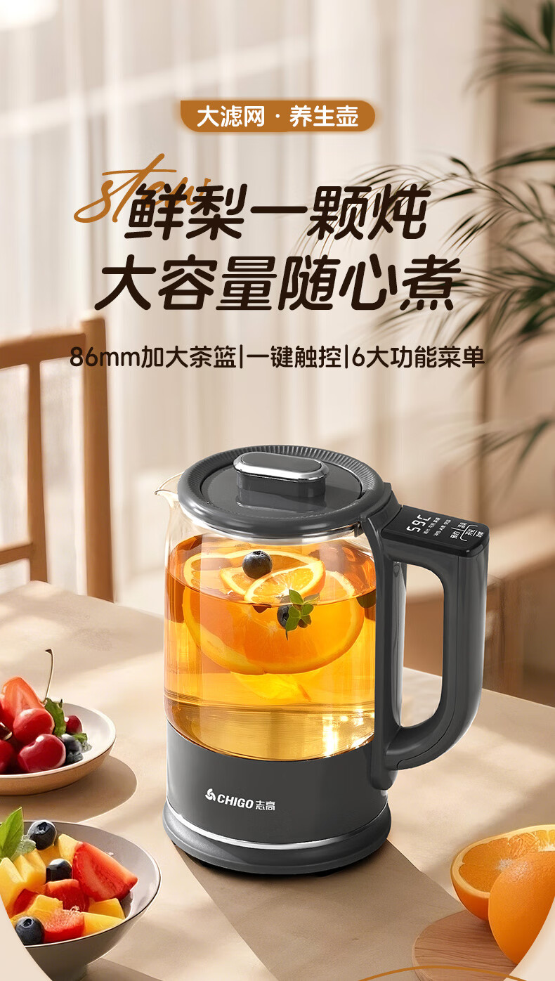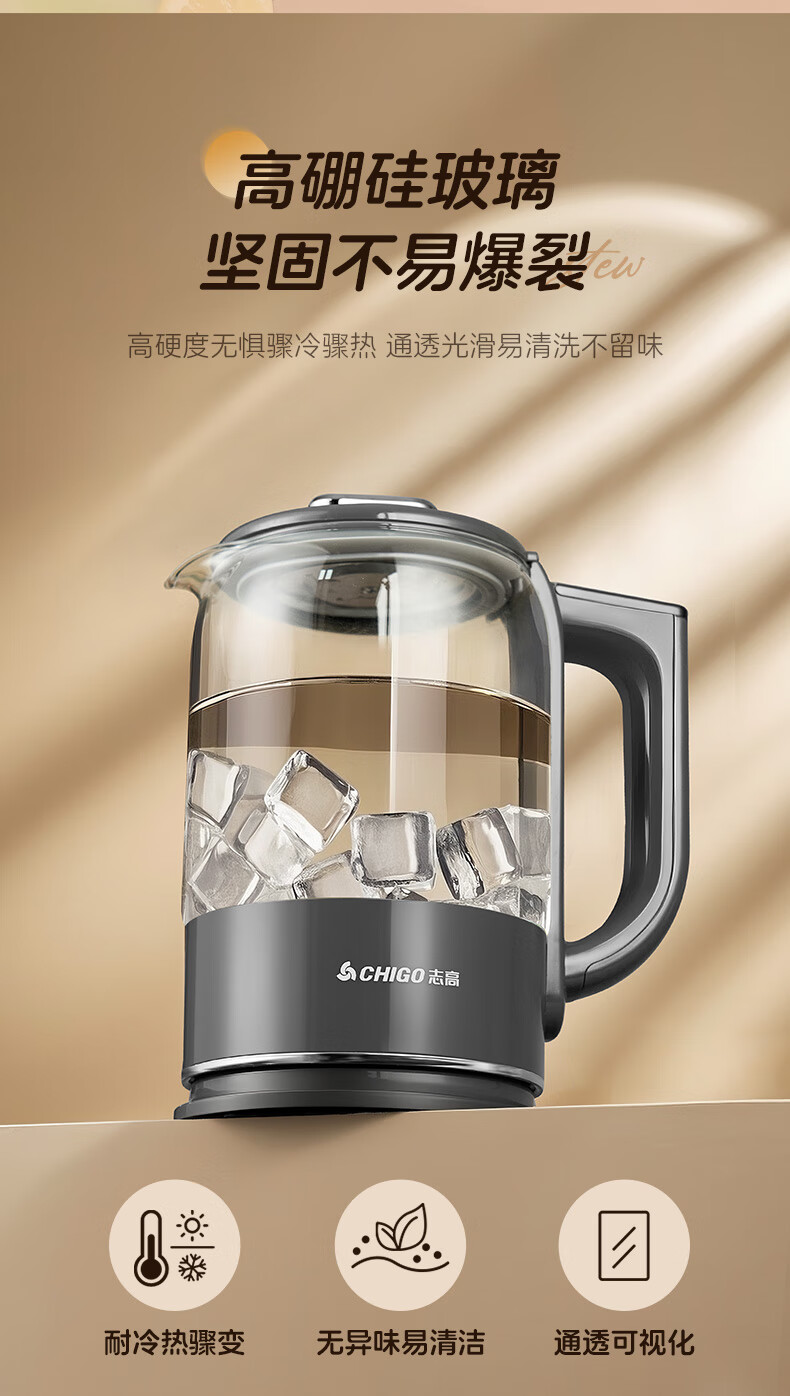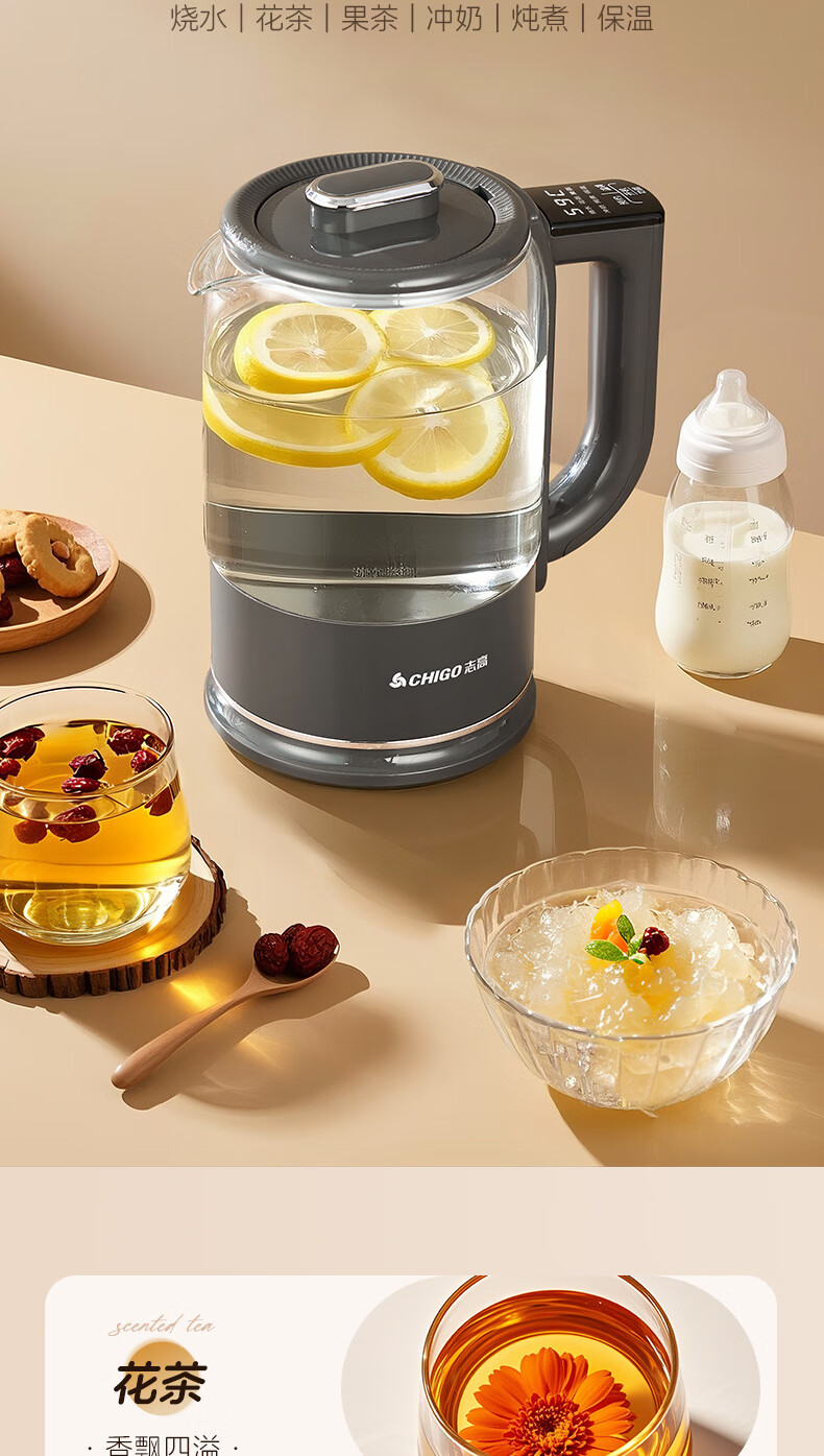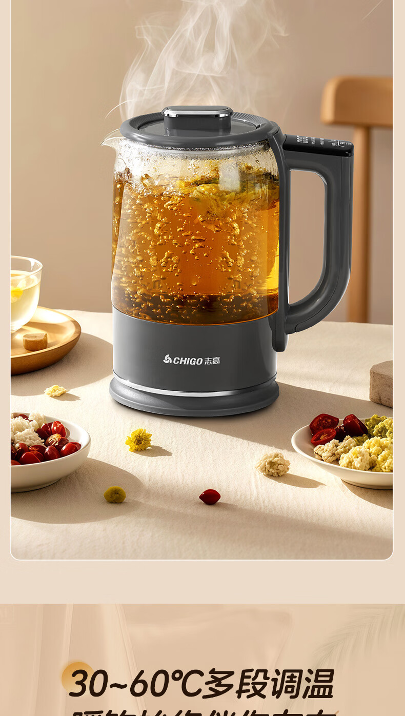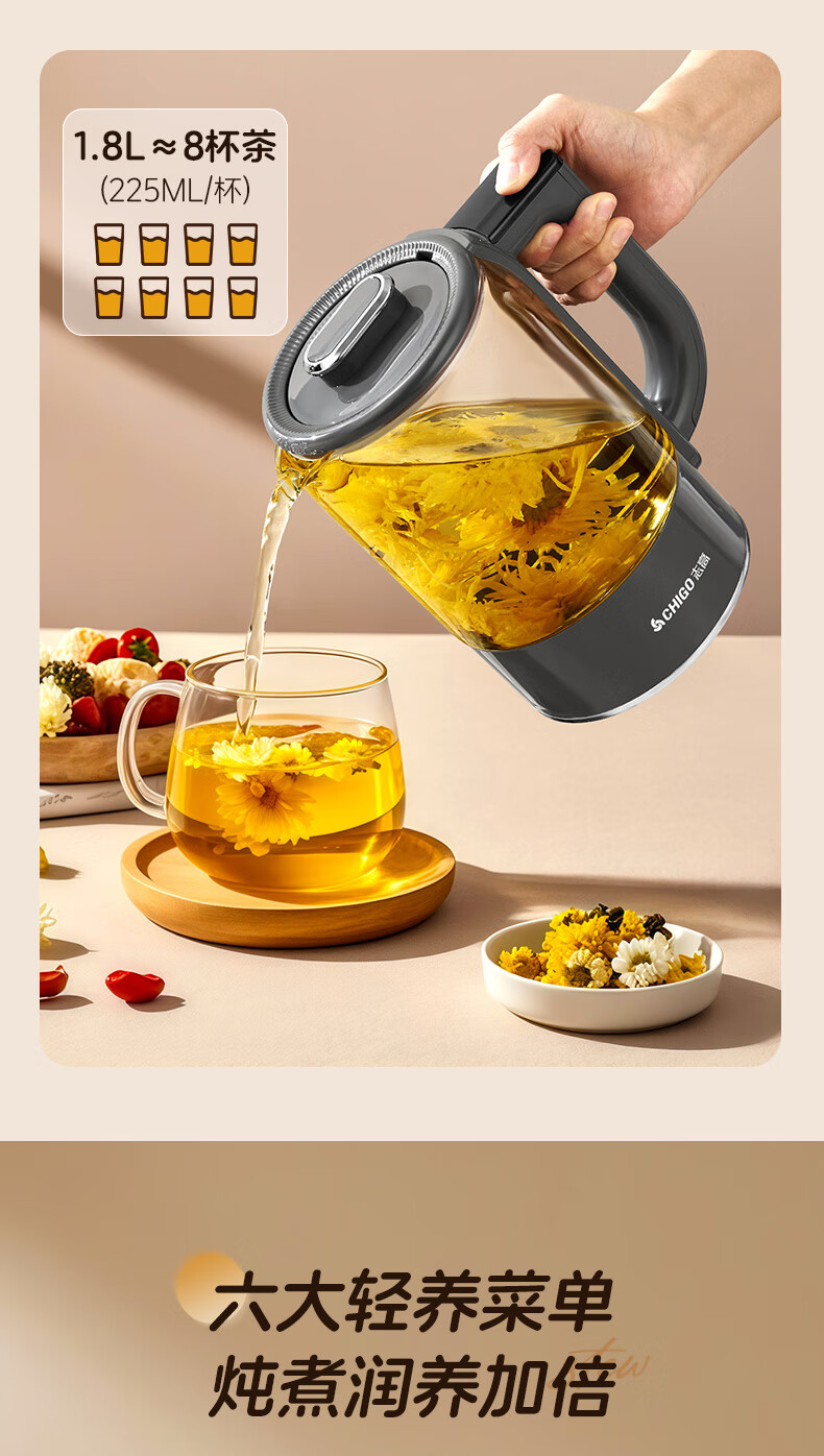 Chigo tea boiler health pot thermal insulation all-in-one spray black tea steaming teapot steam electric boiling water boiling water scented tea health care glass fully automatic multi-function teapot without filter 1.3L