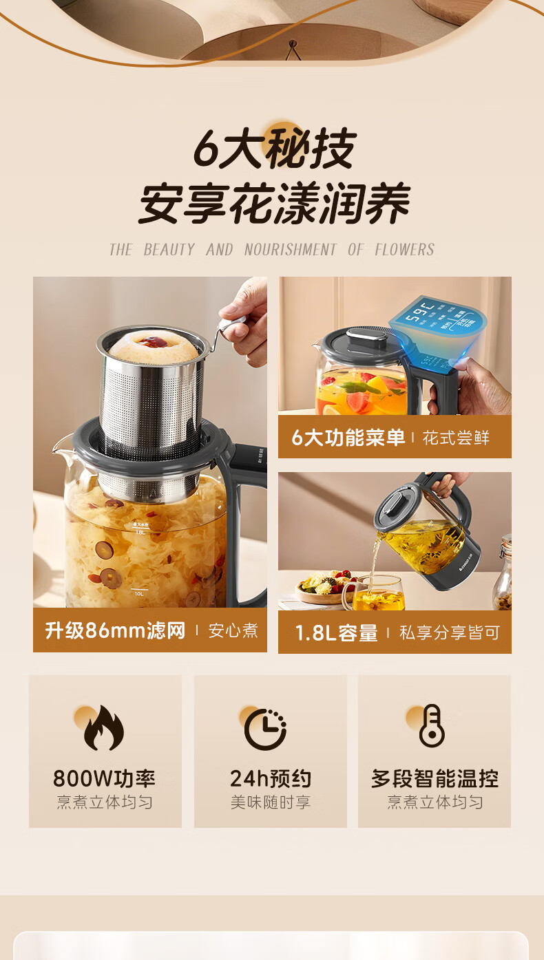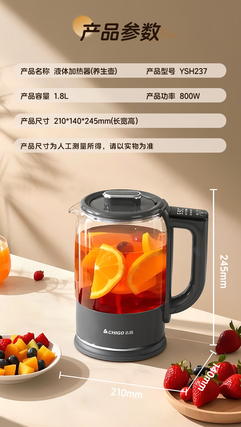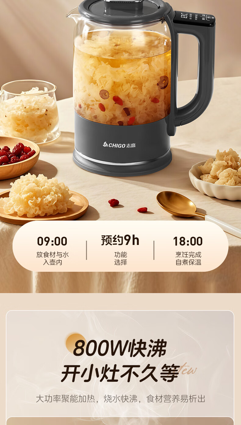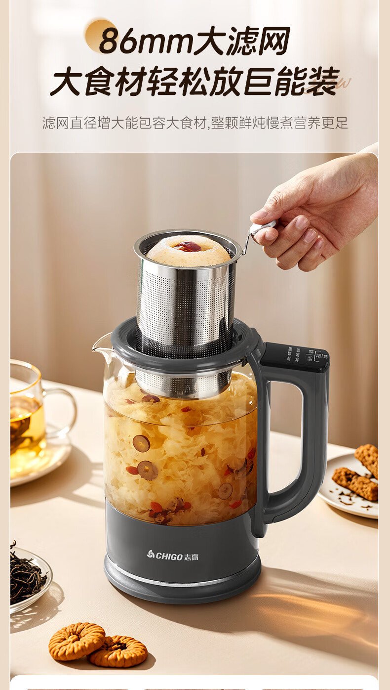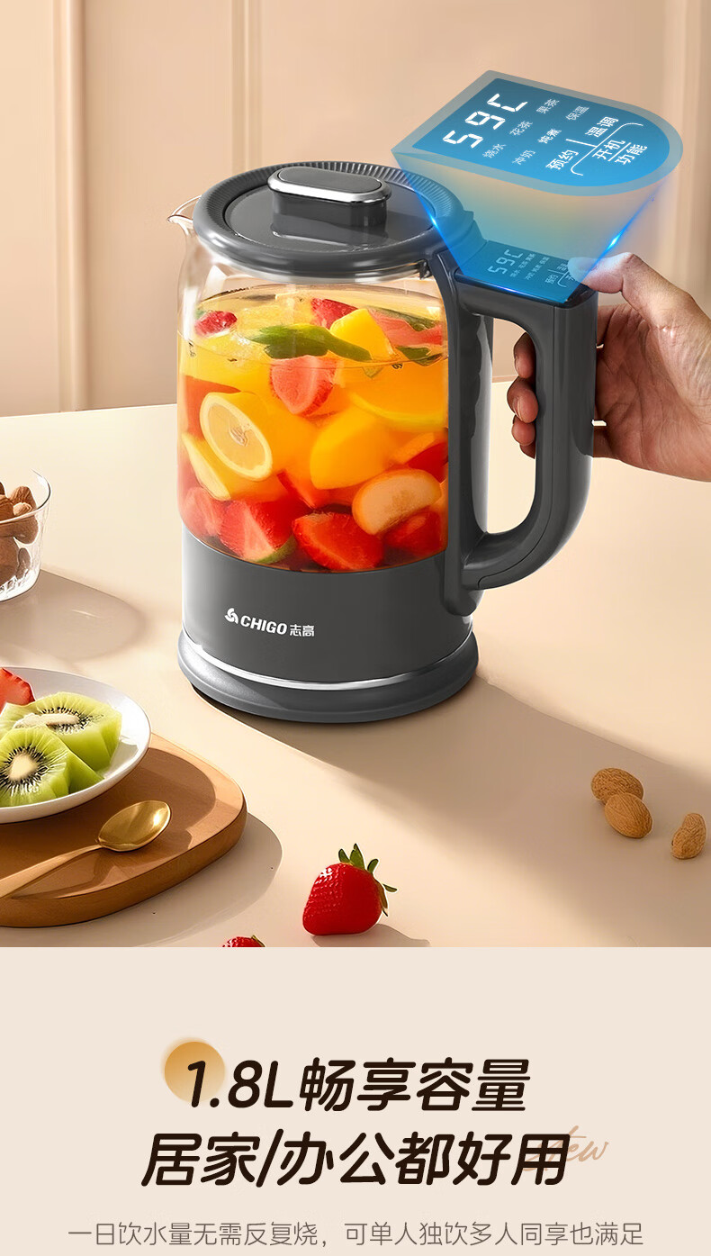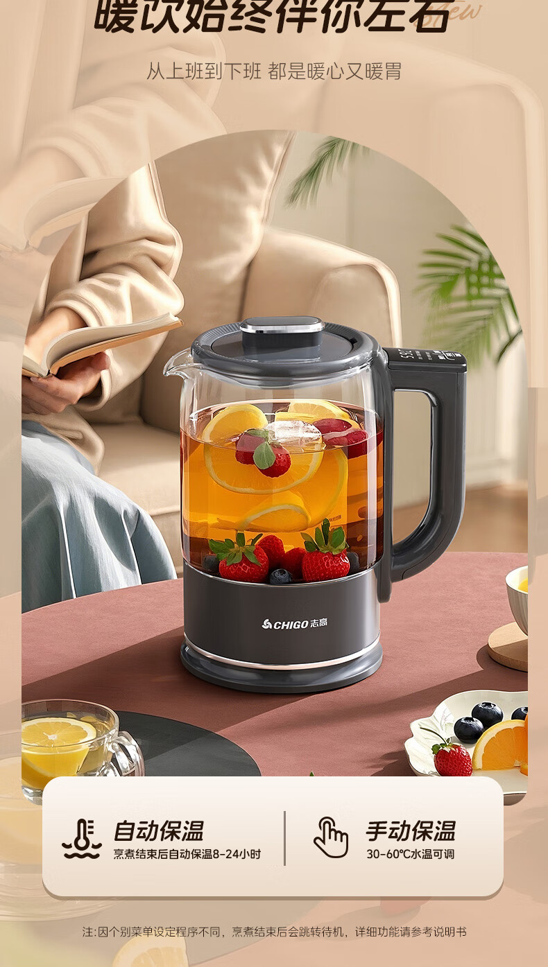 Chigo tea boiler health pot thermal insulation all-in-one spray black tea steaming teapot steam electric boiling water boiling water scented tea health care glass fully automatic multi-function teapot without filter 1.3L