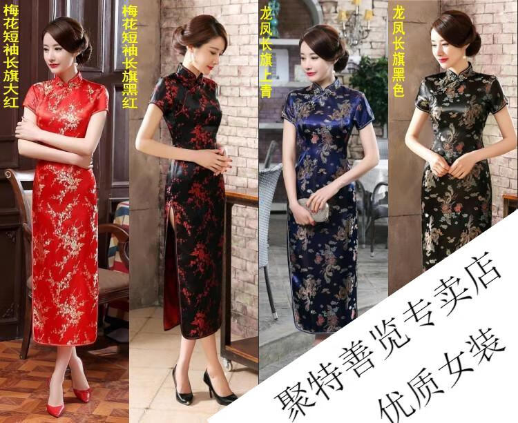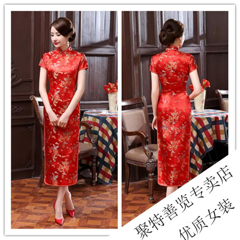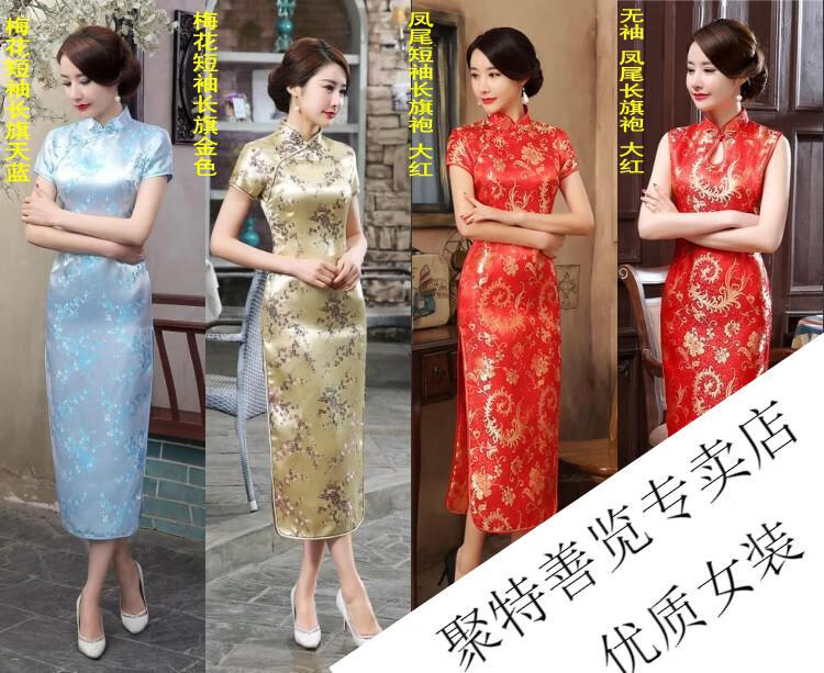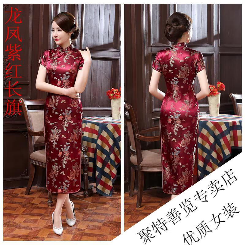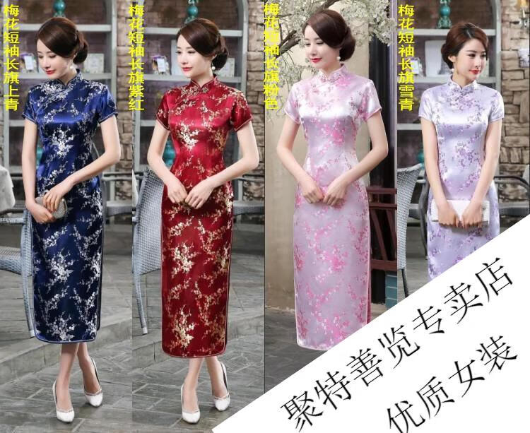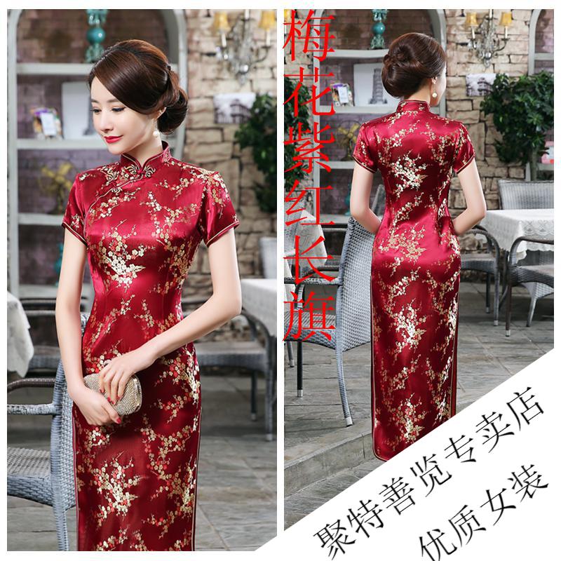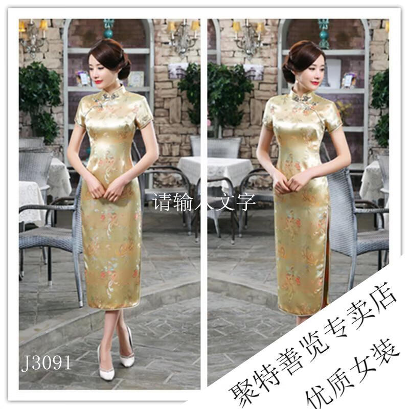 Woodpecker (TUCANO) retro cheongsam for women 2025 summer new short-sleeved women's belly-covering long Chinese style cheongsam skirt plum blossom short-sleeved long flag gold 3XL (reference weight 130-140Jin Jin is equal to 0.5 kg)