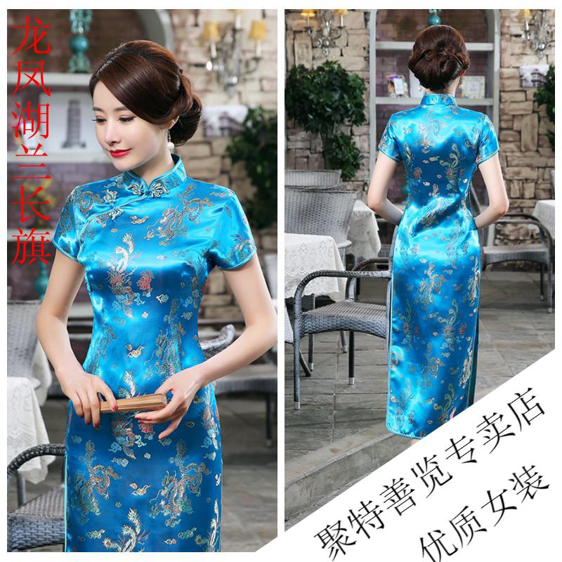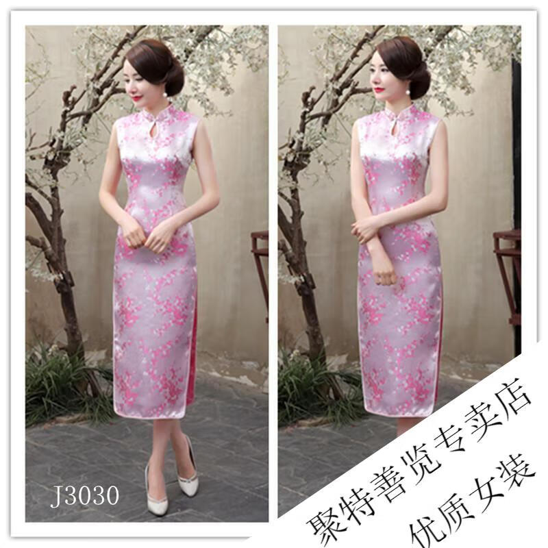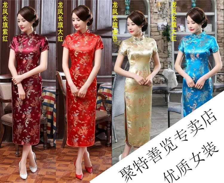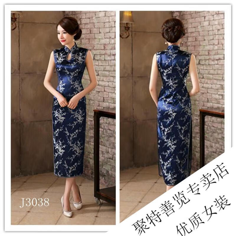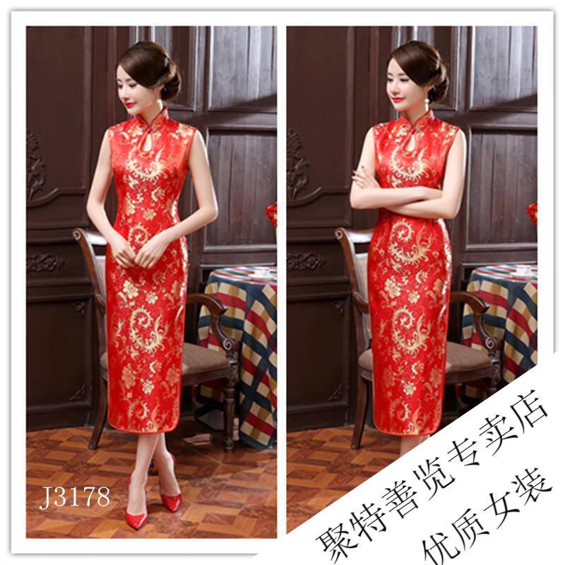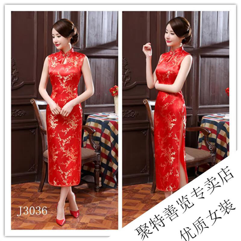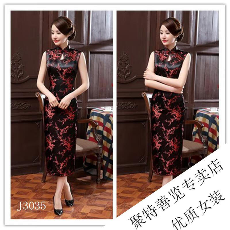 Woodpecker (TUCANO) retro cheongsam for women 2025 summer new short-sleeved women's belly-covering long Chinese style cheongsam skirt plum blossom short-sleeved long flag gold 3XL (reference weight 130-140Jin Jin is equal to 0.5 kg)